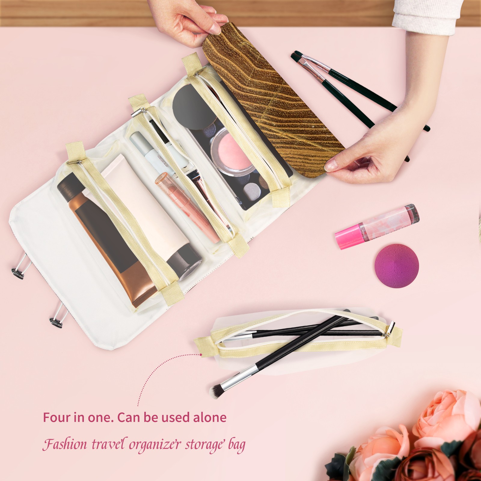 Makeup Bag Organizer Toiletry Bags for Traveling Travel Makeup Organizer Make Up Case Roll Up Toiletry Bag Makeup Bag Growth Rings Travel Cosmetic Bag
