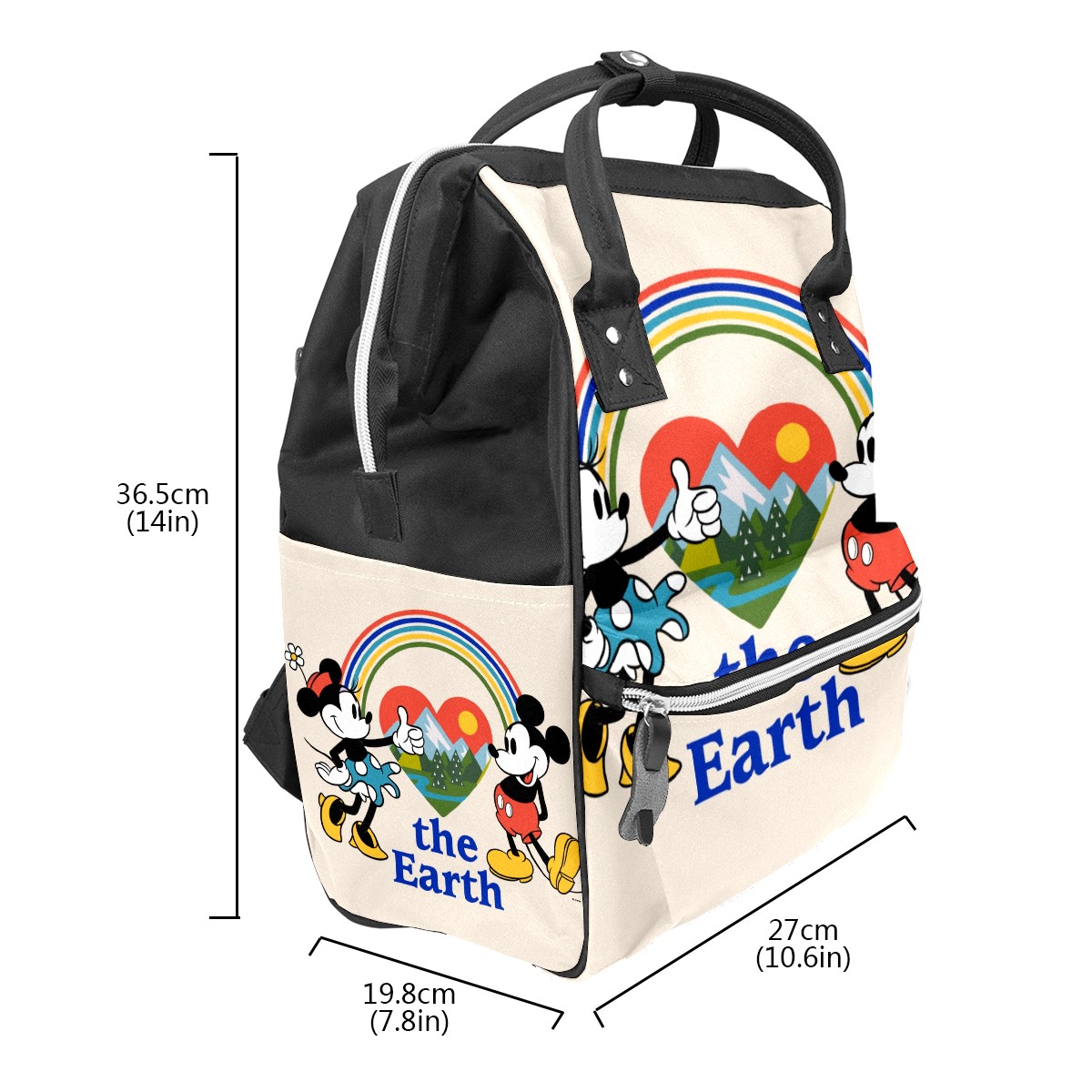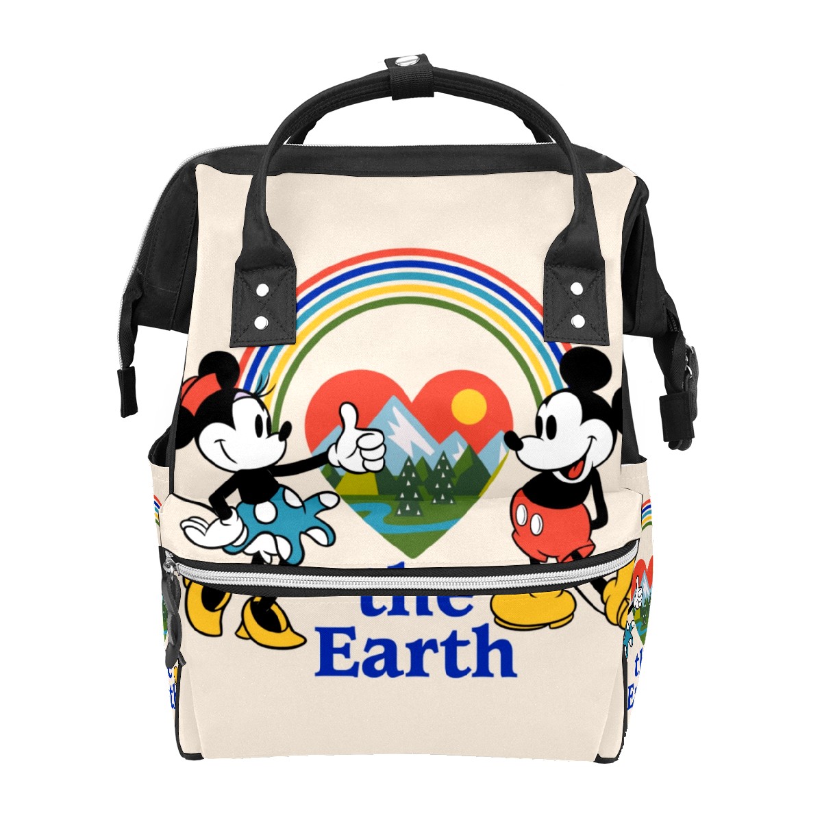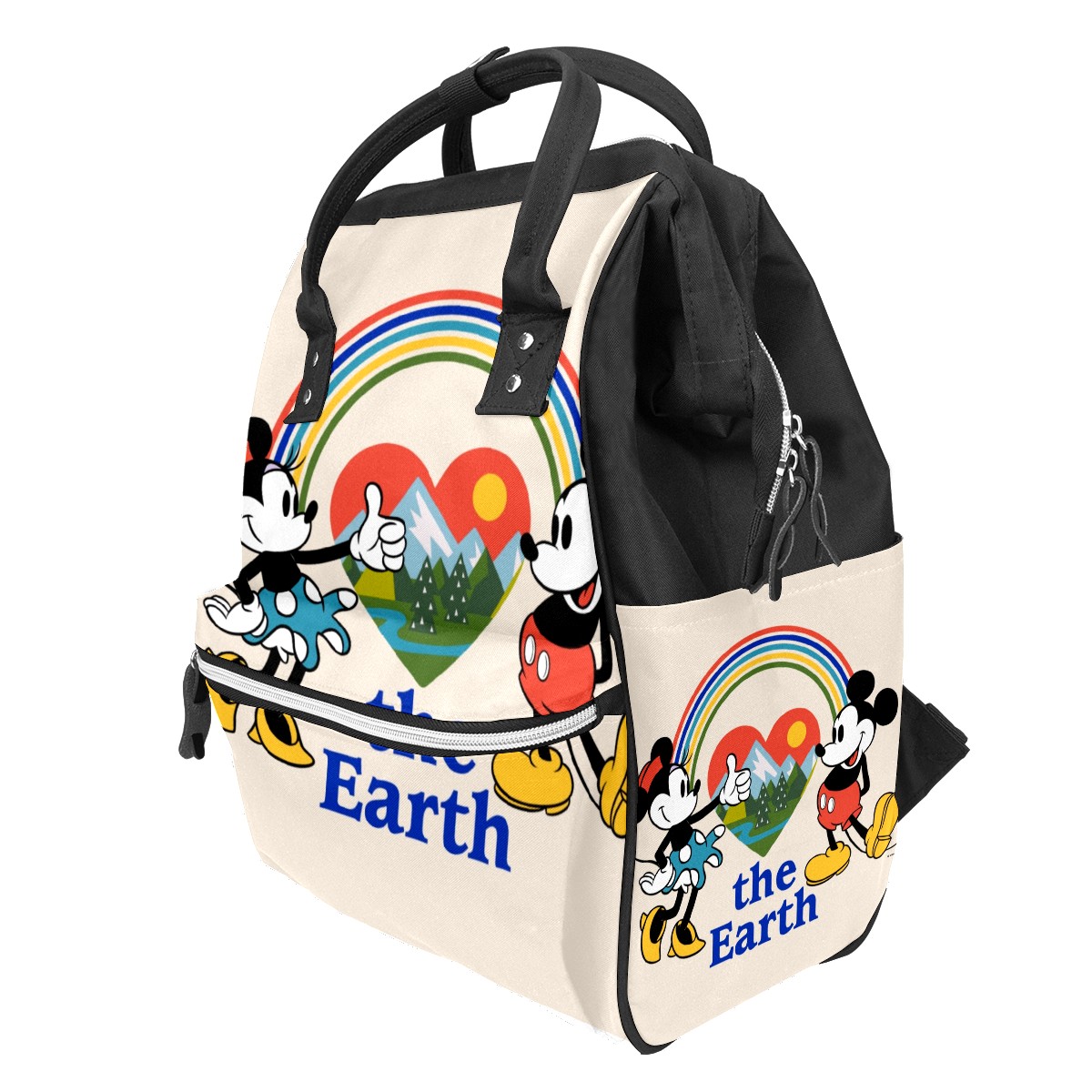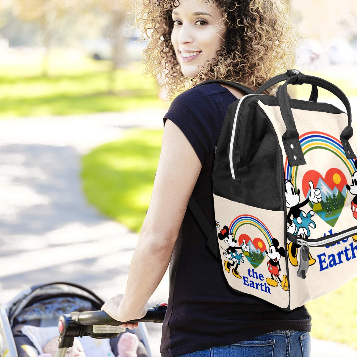 Backpack Diaper Bag Mickey And Minnie Love The Earth Waterproof Baby Bag Mom and Dad's Diaper Backpack Lightweight Large Capacity Diaper Bag Travel Daypack