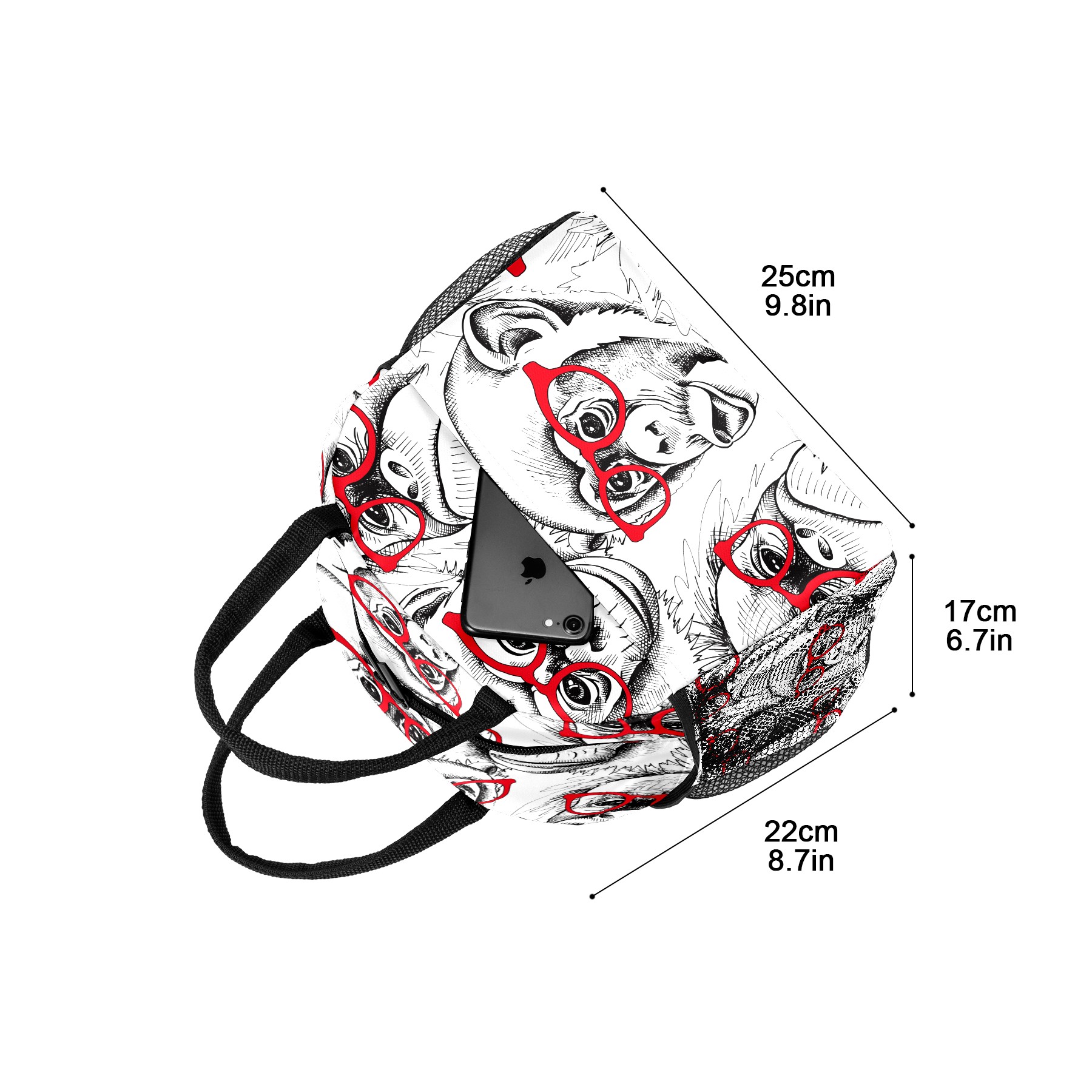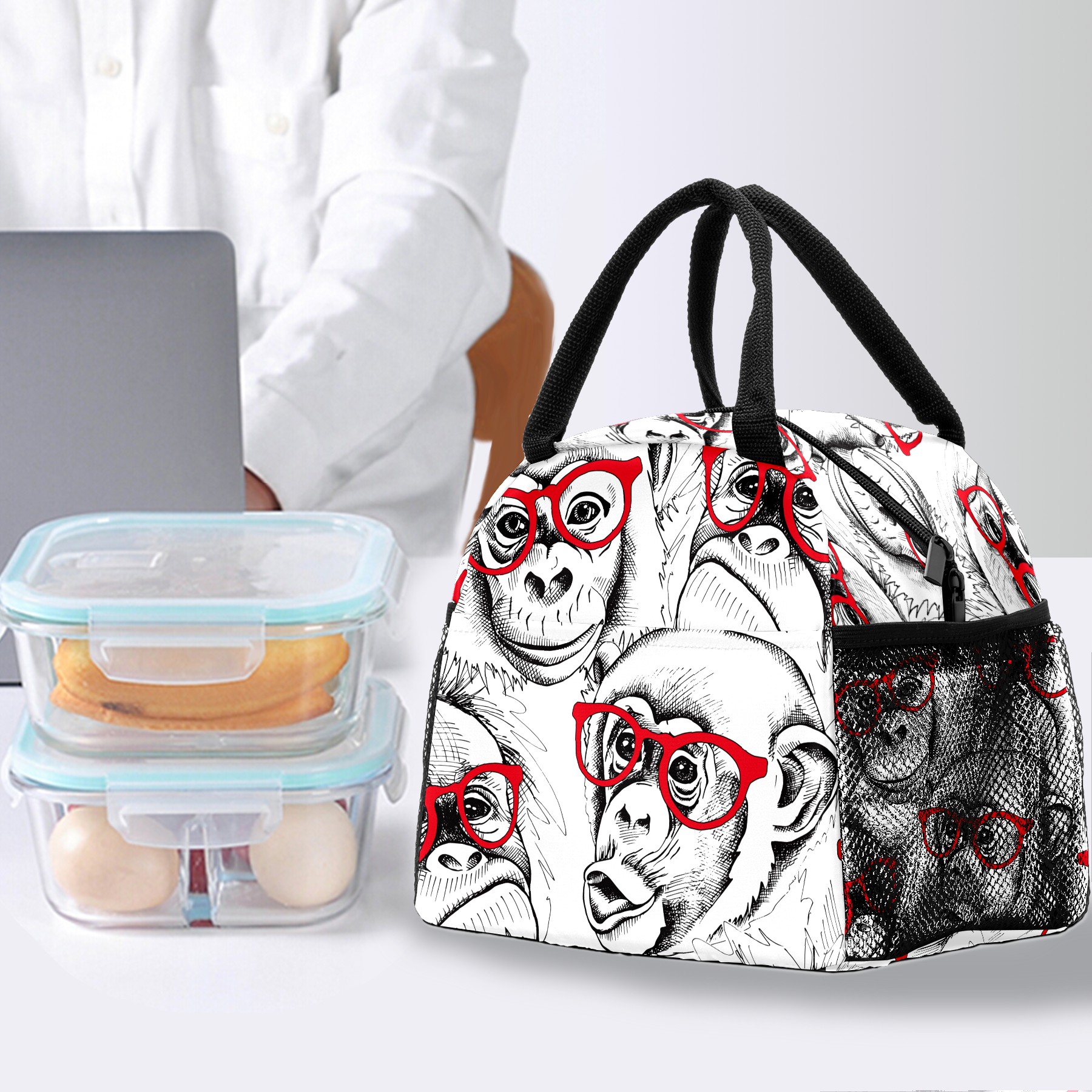 Lunch Bag for Women Men, Funny Monkey Gorila Glasses Patern Insulated Reusable Lunch Box Thermal Cooler Tote Bag for Work Picnic Hiking Travel Beach