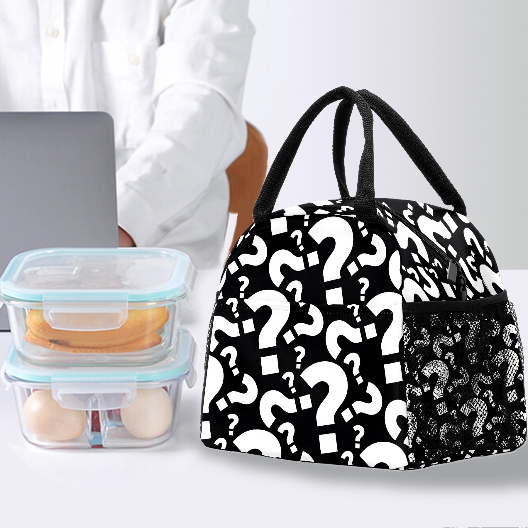 Lunch Bag for Women Men, Funny Question Mark Pattern Insulated Reusable Lunch Box Thermal Cooler Tote Bag for Work Picnic Hiking Travel Beach