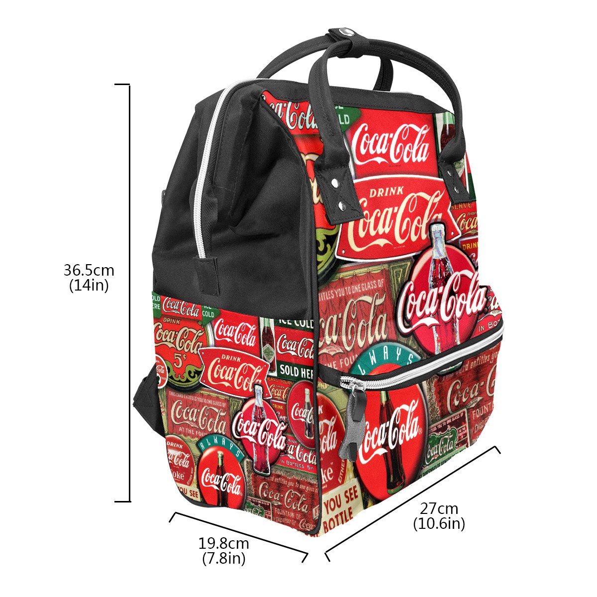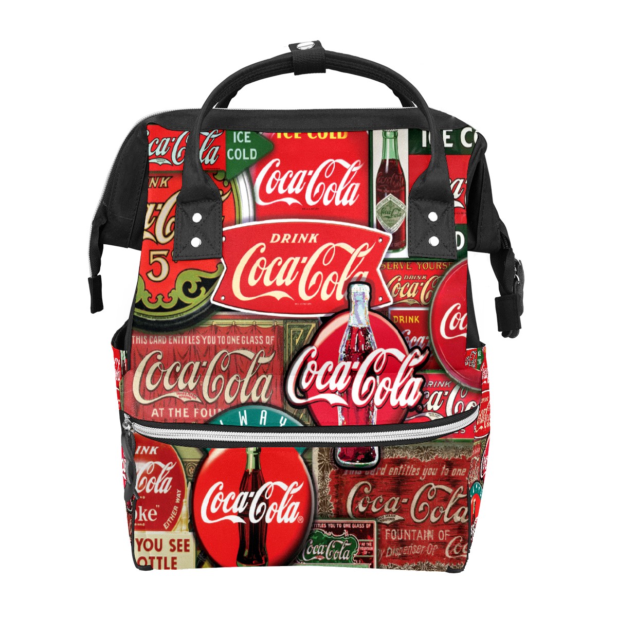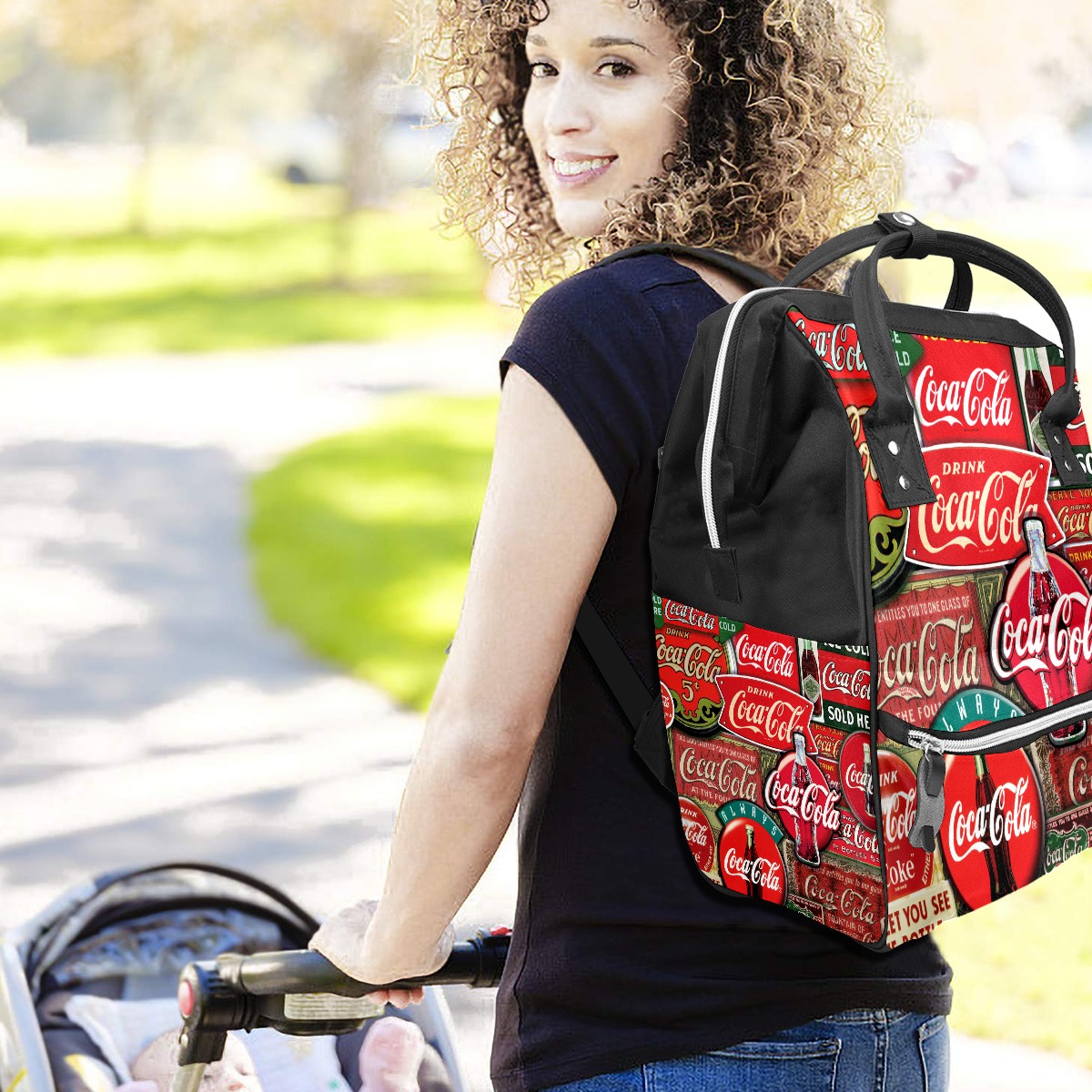 Backpack Diaper Bag Classic Coca Cola Poster Retro Style Waterproof Baby Bag Mom and Dad's Diaper Backpack Lightweight Large Capacity Diaper Bag Travel Daypack