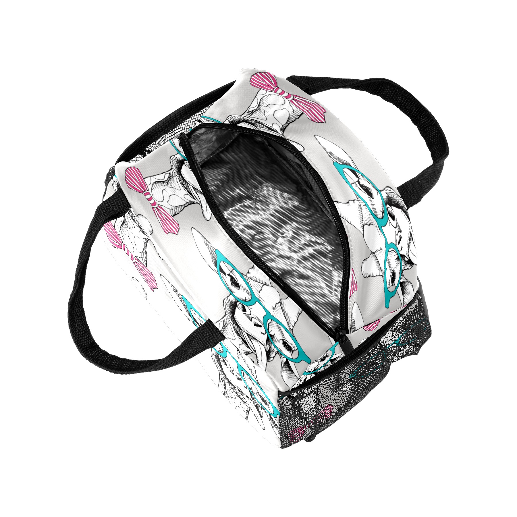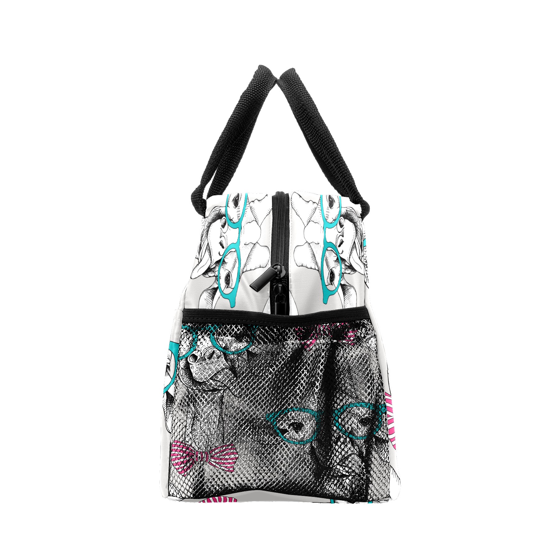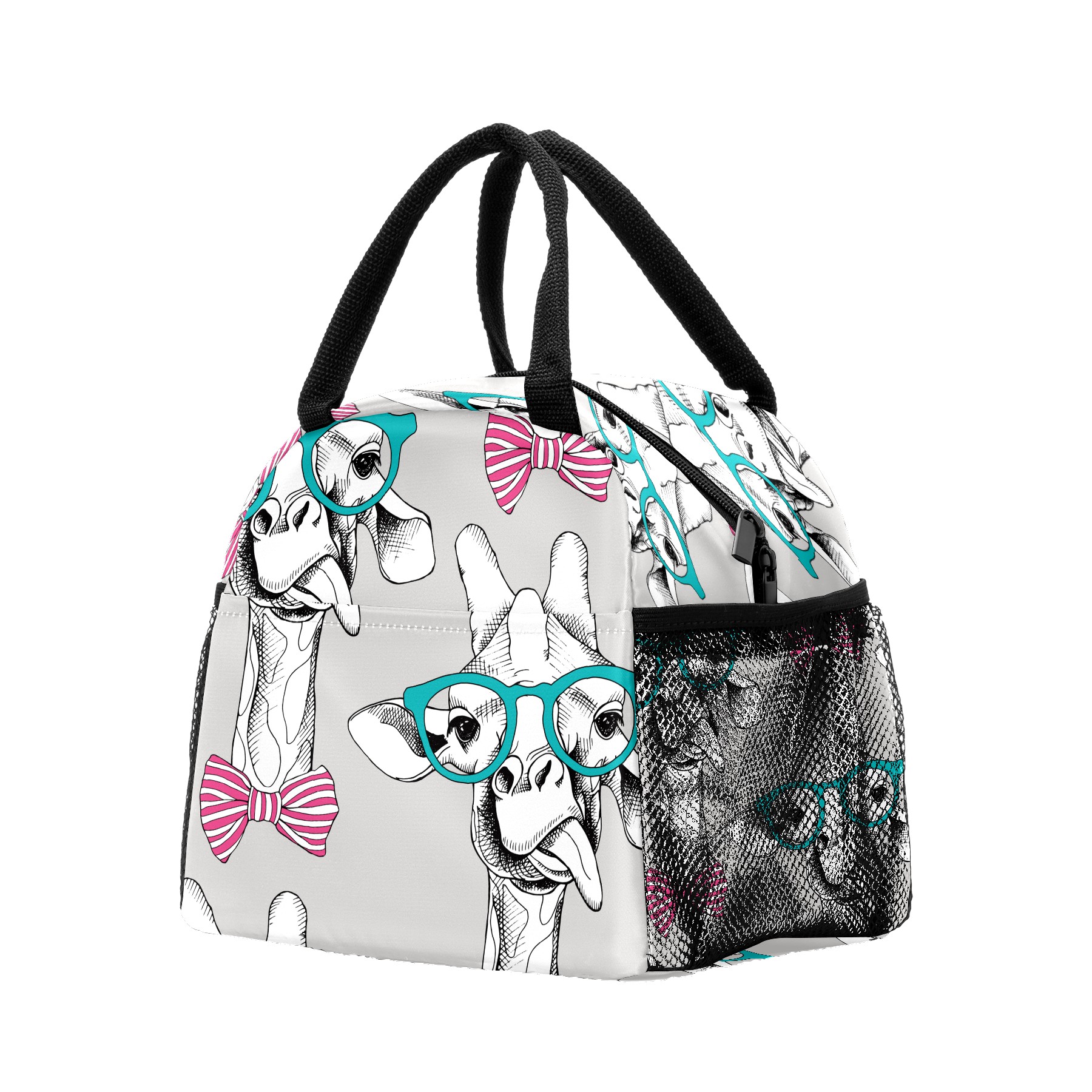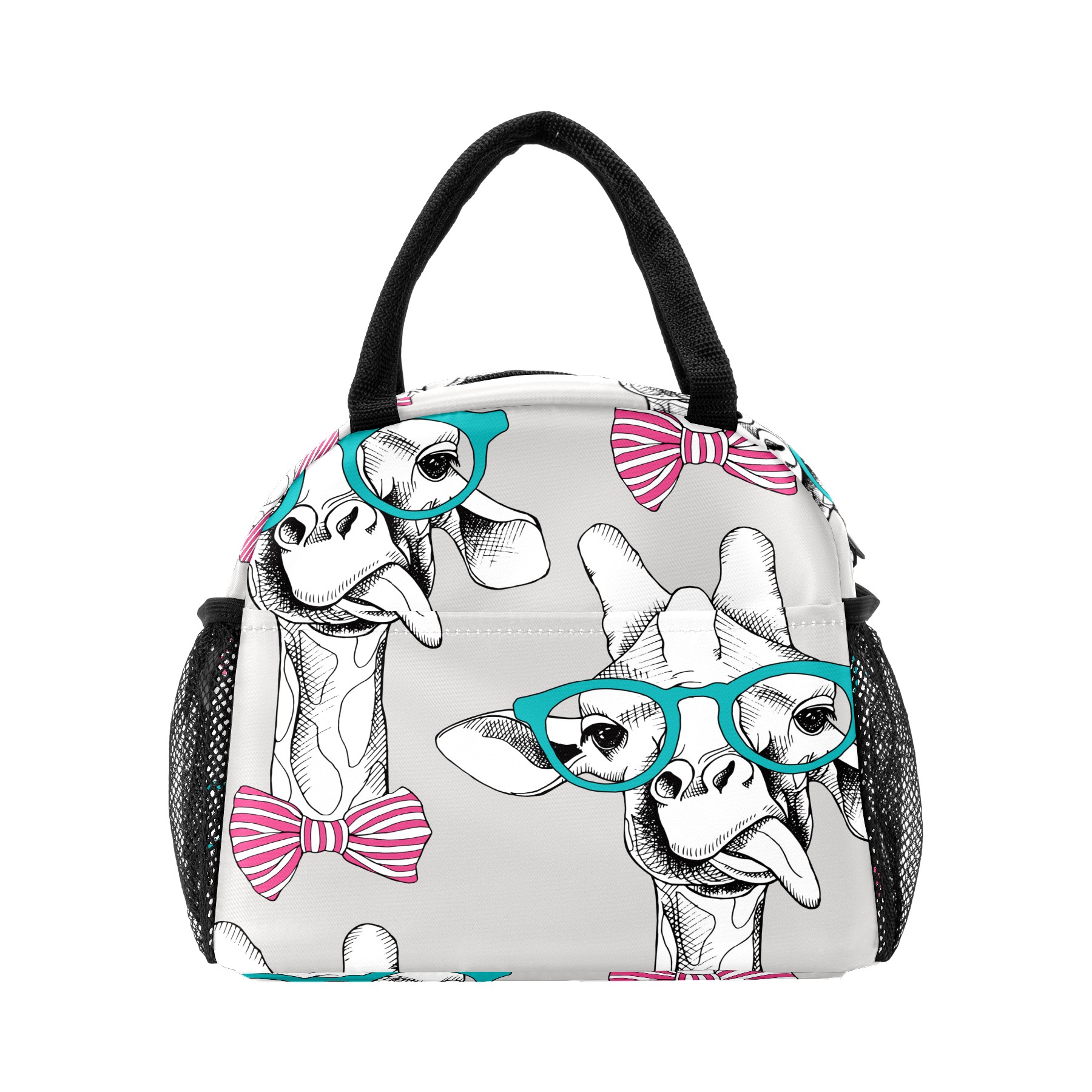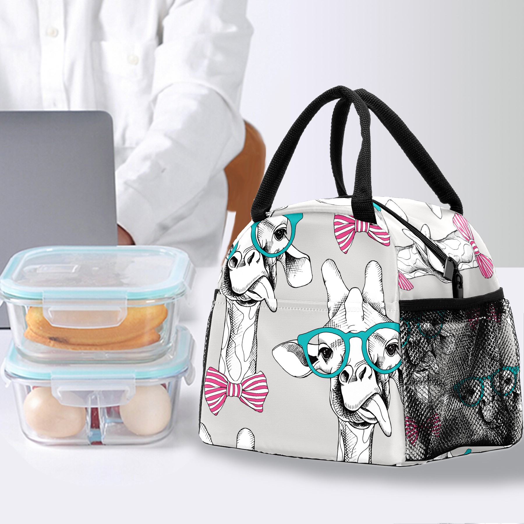 Lunch Bag for Women Men, Funny Giraffe Glasses Pink Bow Insulated Reusable Lunch Box Thermal Cooler Tote Bag for Work Picnic Hiking Travel Beach