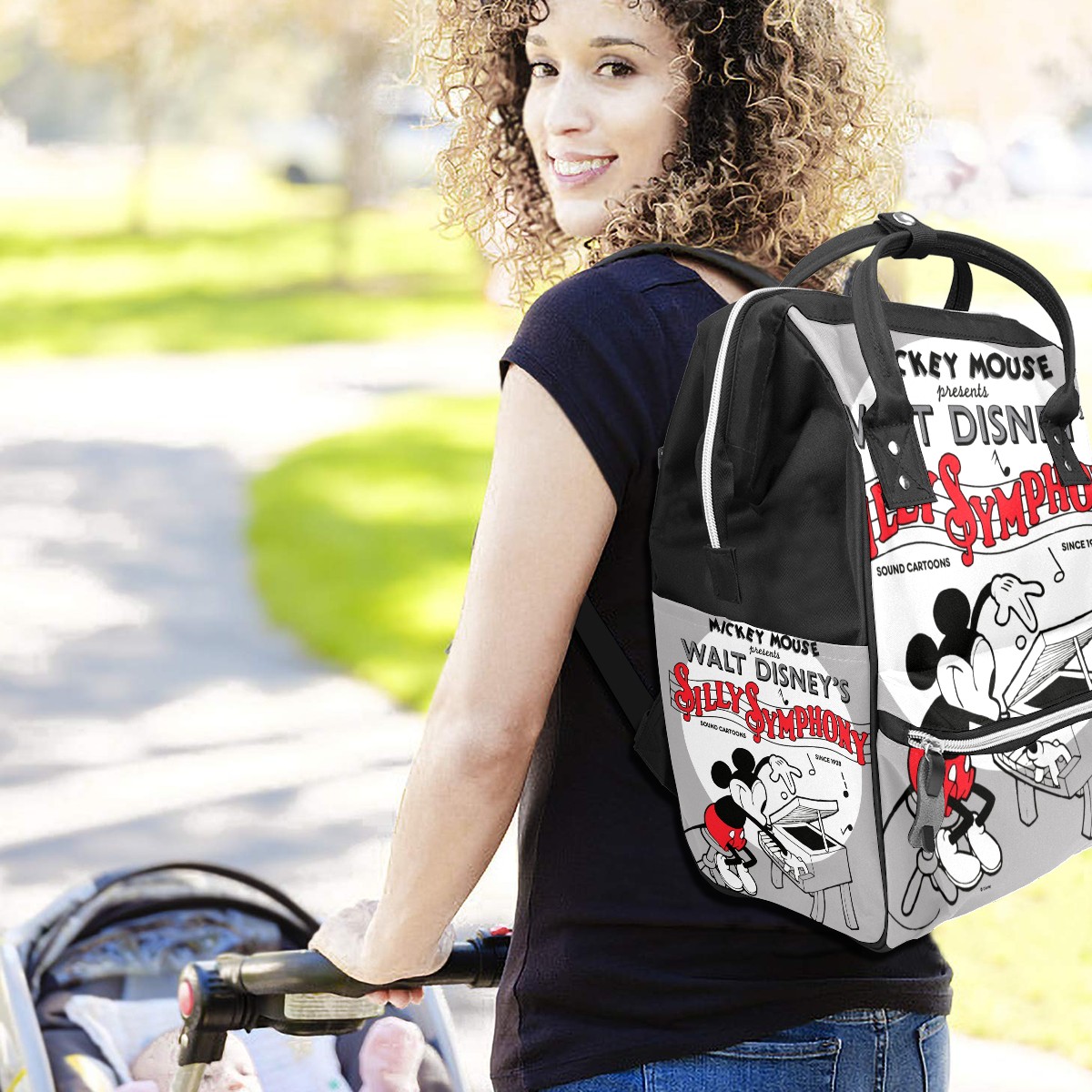 Backpack Diaper Bag Vintage Mickey Silly Symphony Waterproof Baby Bag Mom and Dad's Diaper Backpack Lightweight Large Capacity Diaper Bag Travel Daypack