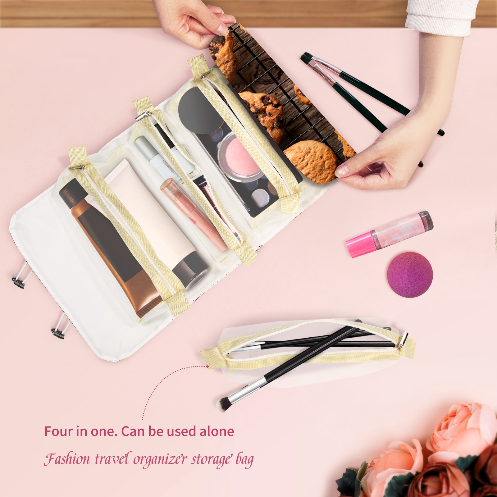 Makeup Bag Organizer Toiletry Bags for Traveling Travel Makeup Organizer Make Up Case Roll Up Toiletry Bag Makeup Bag Cute Chocolate Cookies Travel Cosmetic Bag