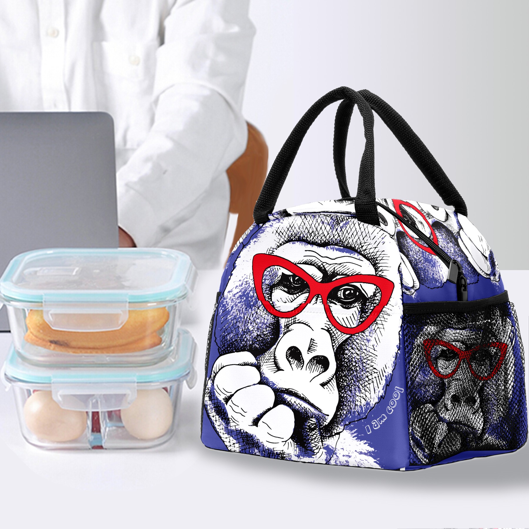 Lunch Bag for Women Men, Funny Gorila Monkey I Am Cool Insulated Reusable Lunch Box Thermal Cooler Tote Bag for Work Picnic Hiking Travel Beach