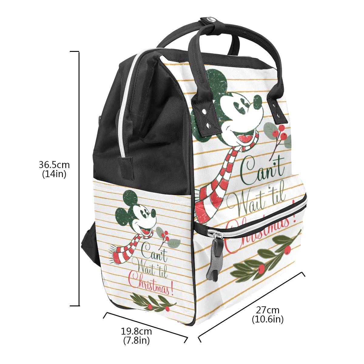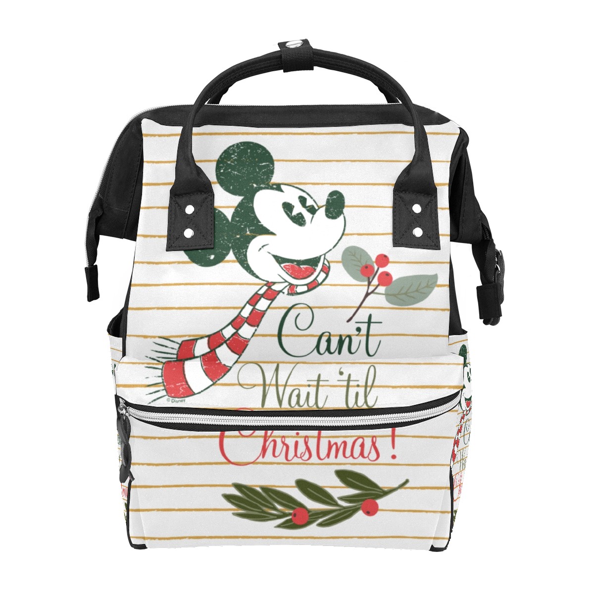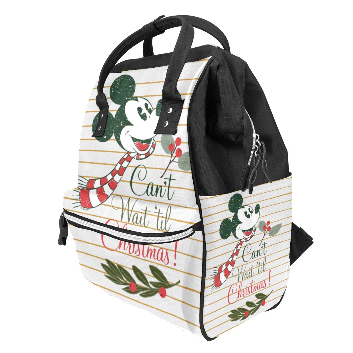 Backpack Diaper Bag Mickey Mouse Can't Wait 'til Christmas Waterproof Baby Bag Mom and Dad's Diaper Backpack Lightweight Large Capacity Diaper Bag Travel Daypack