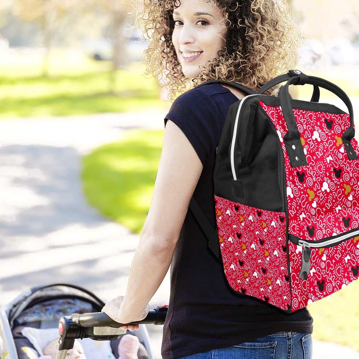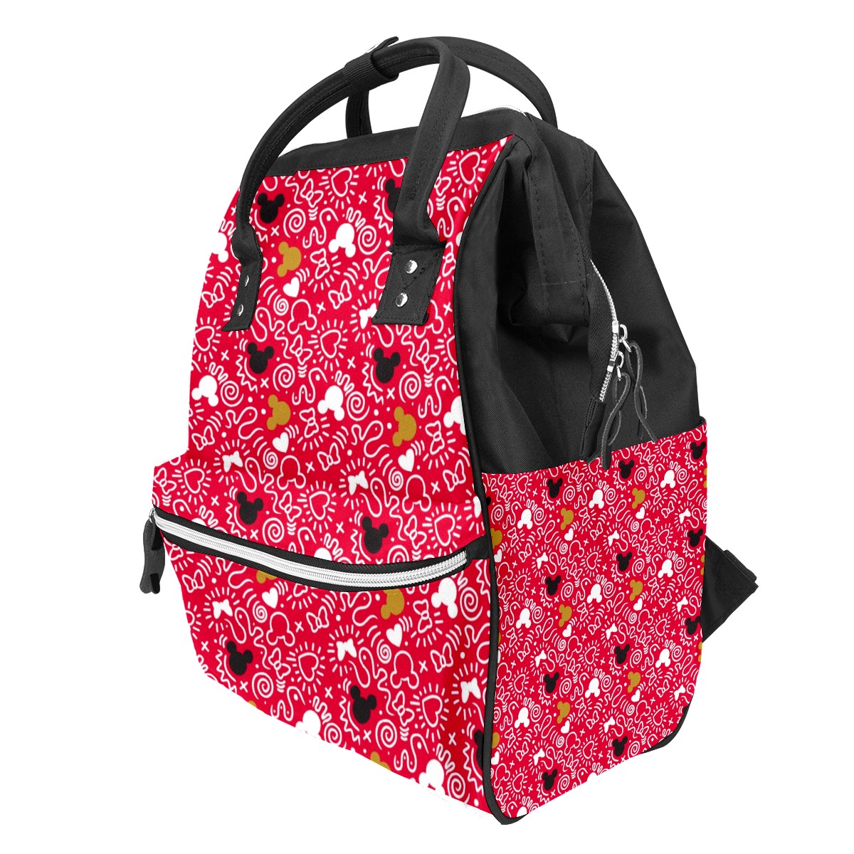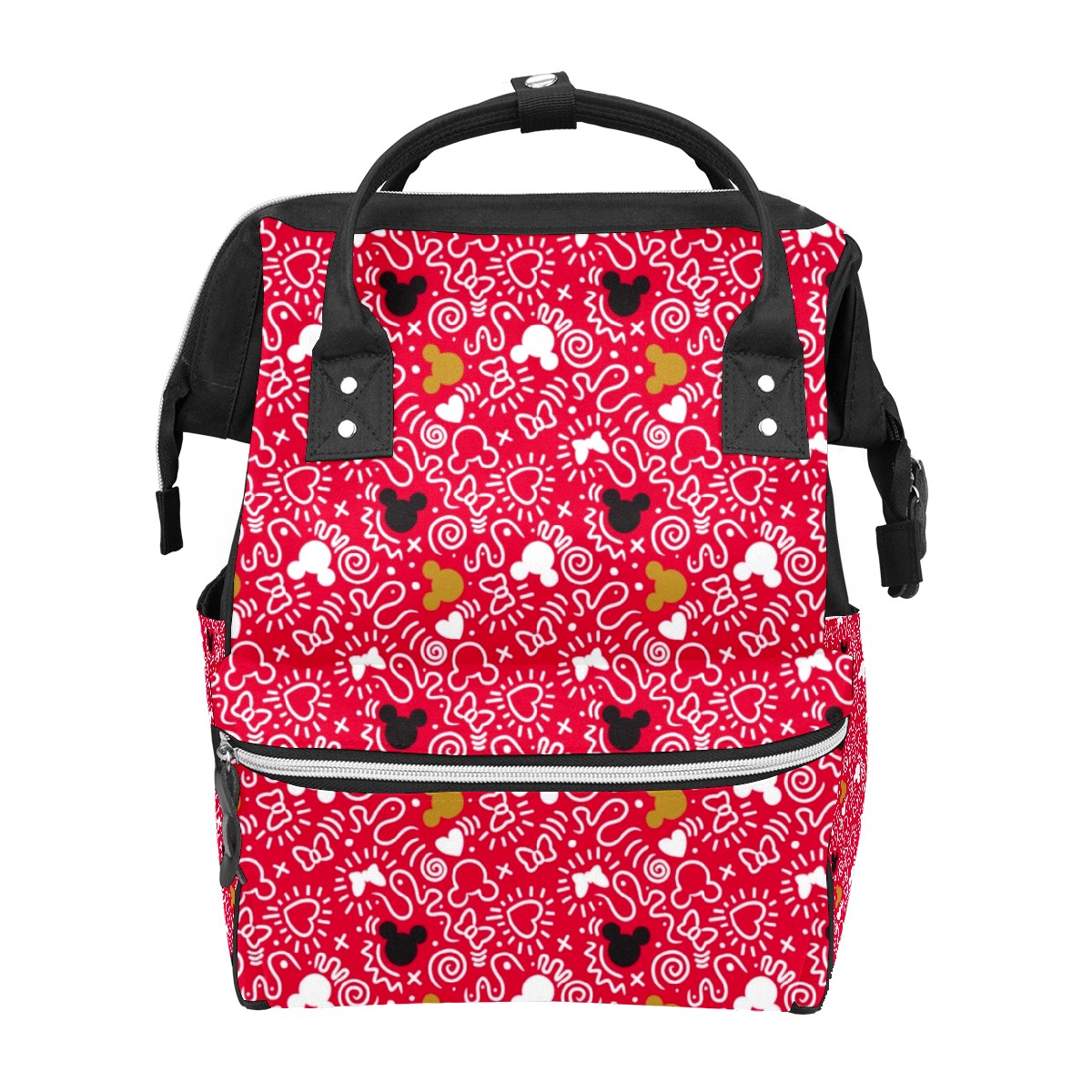 Backpack Diaper Bag Mickey Minnie Mouse Doodle Pattern Waterproof Baby Bag Mom and Dad's Diaper Backpack Lightweight Large Capacity Diaper Bag Travel Daypack