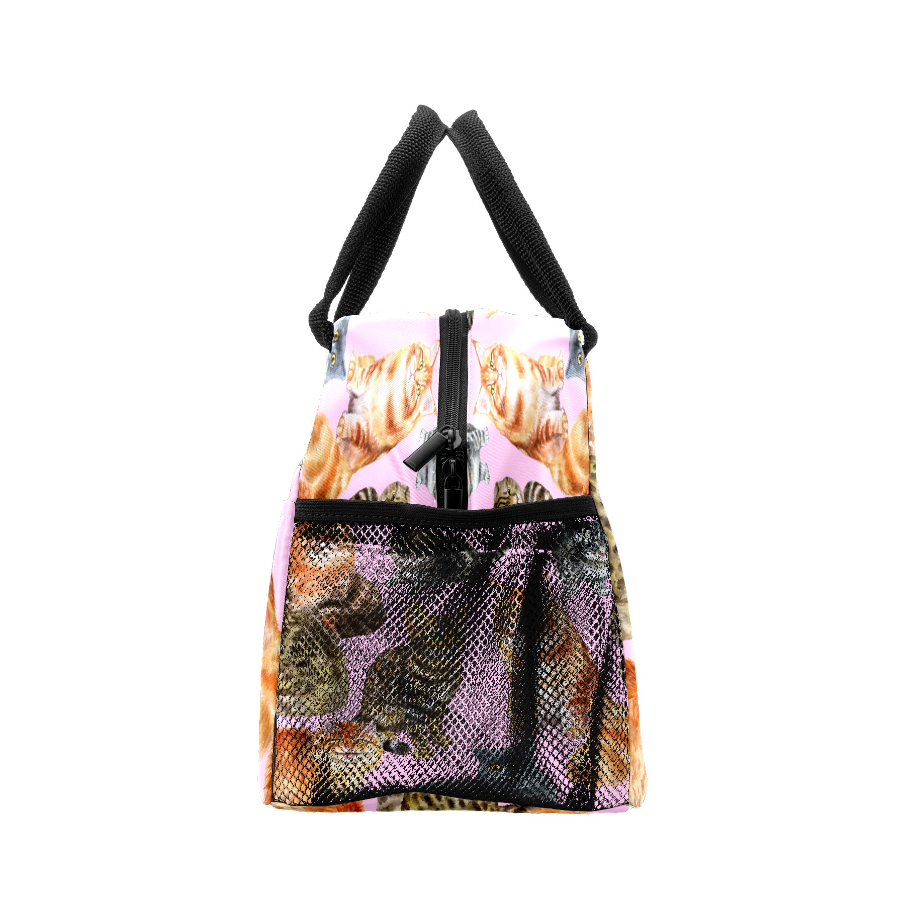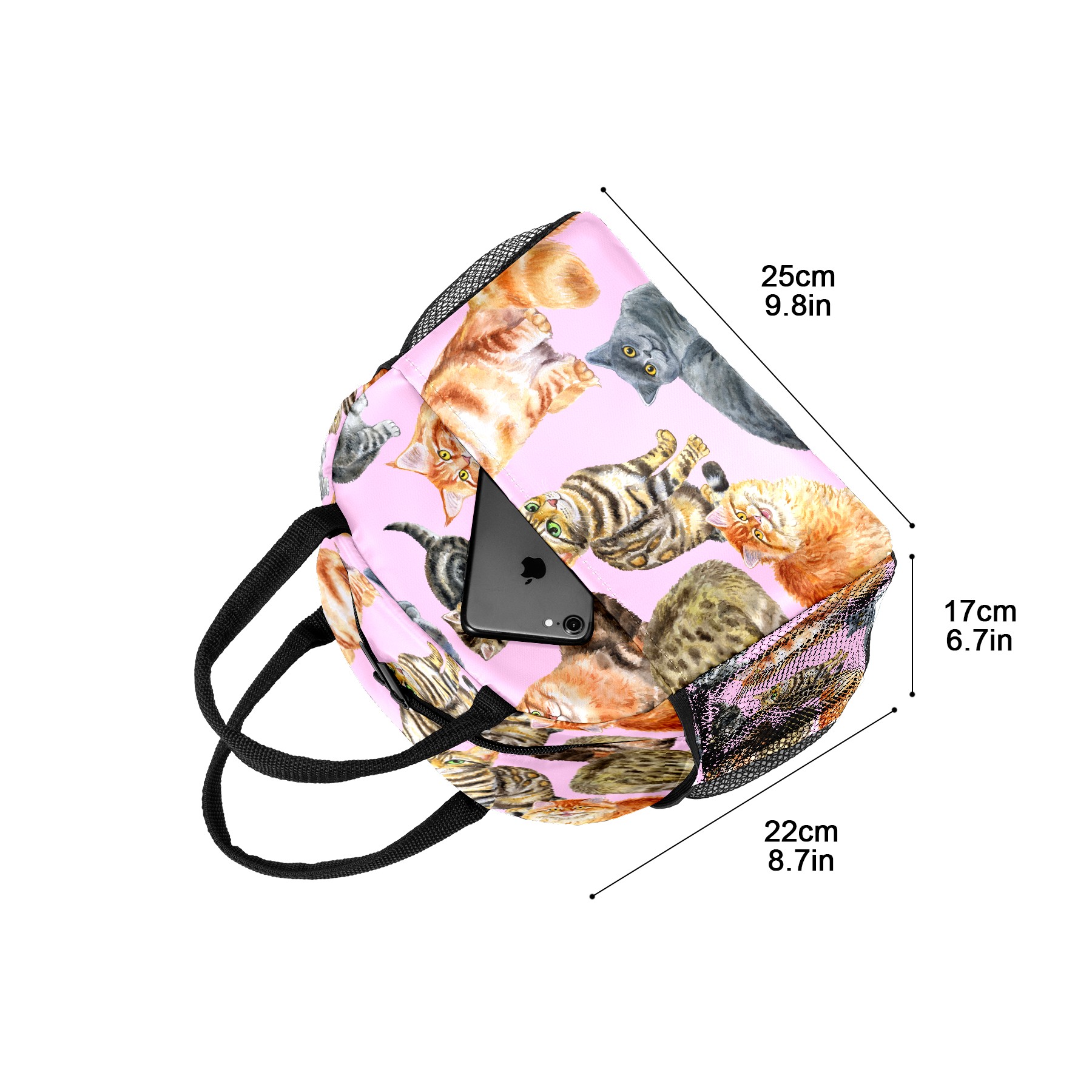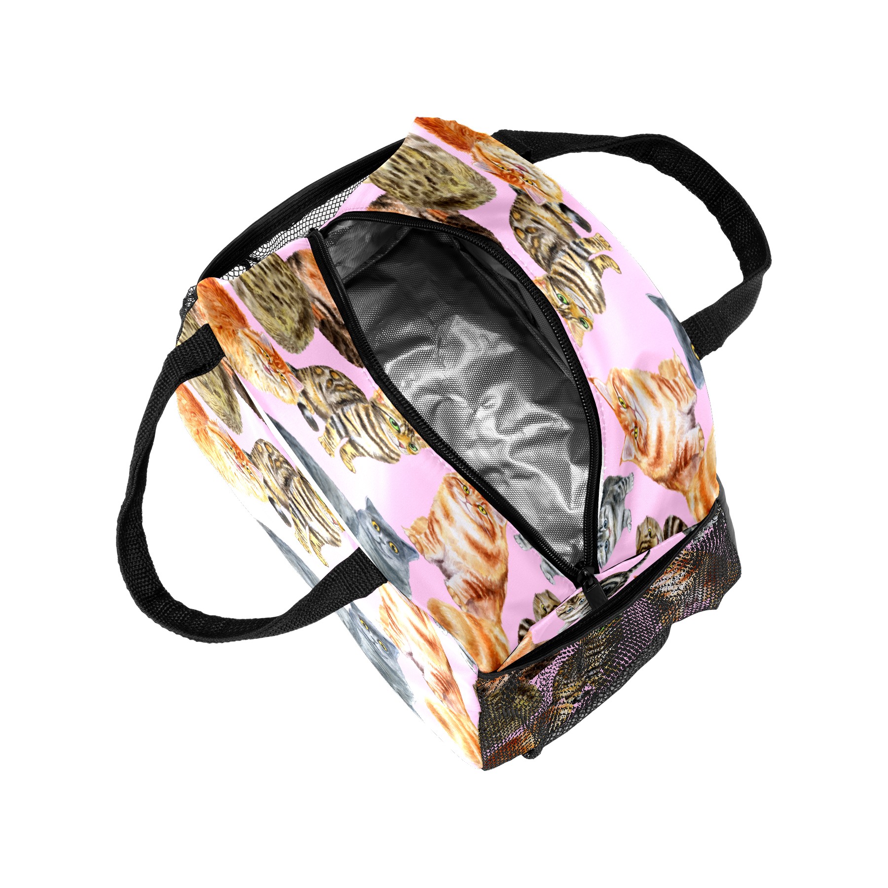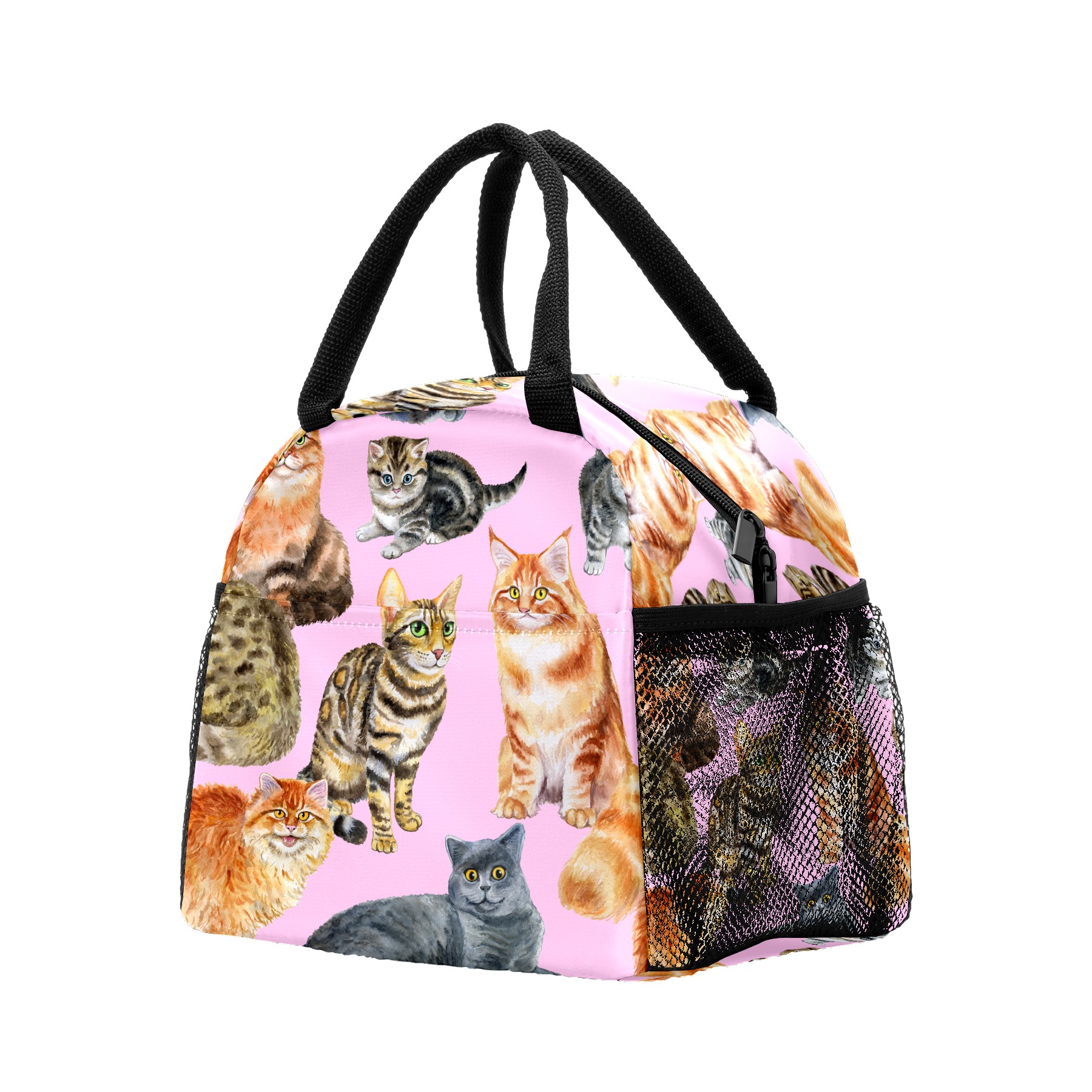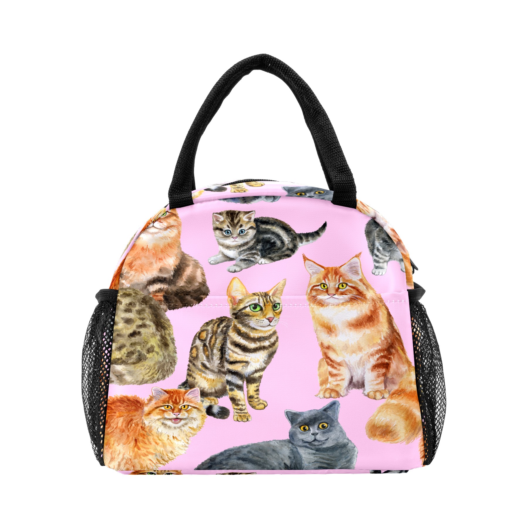 Lunch Bag for Women Men, Funny Cat Hand Draw Black Brown Insulated Reusable Lunch Box Thermal Cooler Tote Bag for Work Picnic Hiking Travel Beach