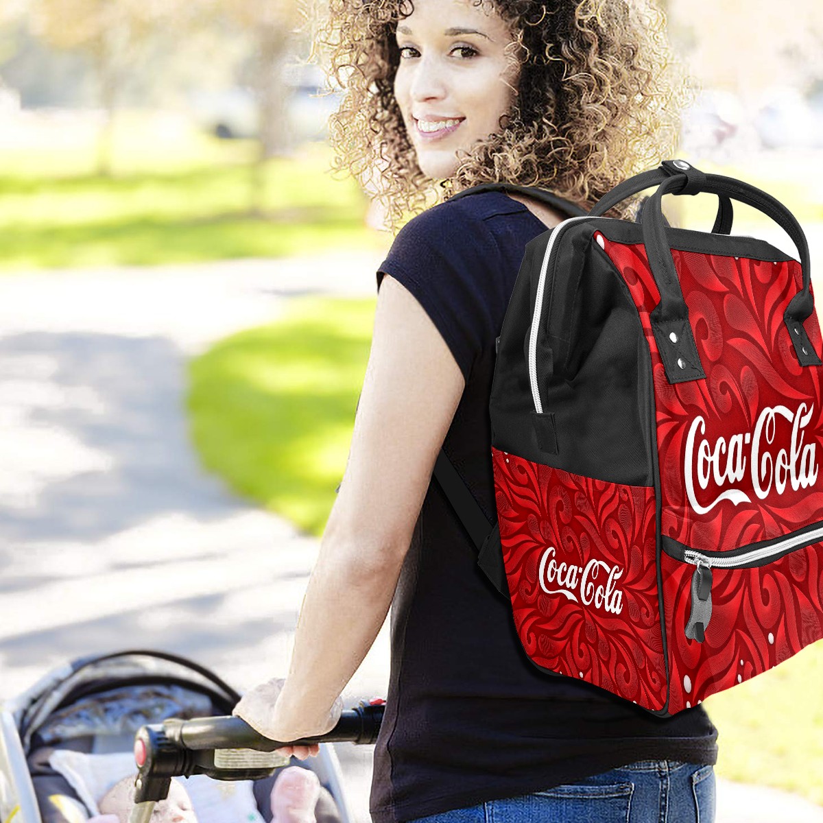 Backpack Diaper Bag Red Coca Cola Pattern Waterproof Baby Bag Mom and Dad's Diaper Backpack Lightweight Large Capacity Diaper Bag Travel Daypack