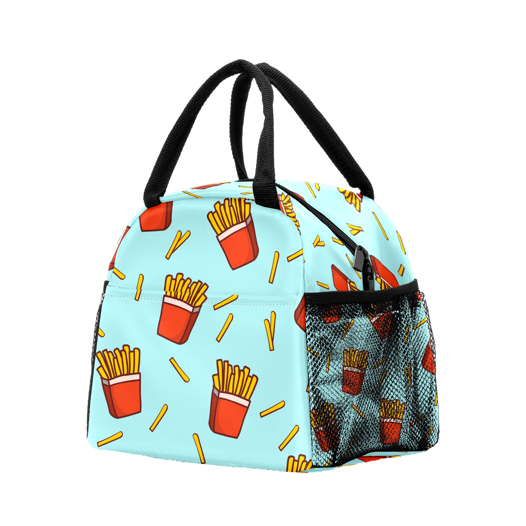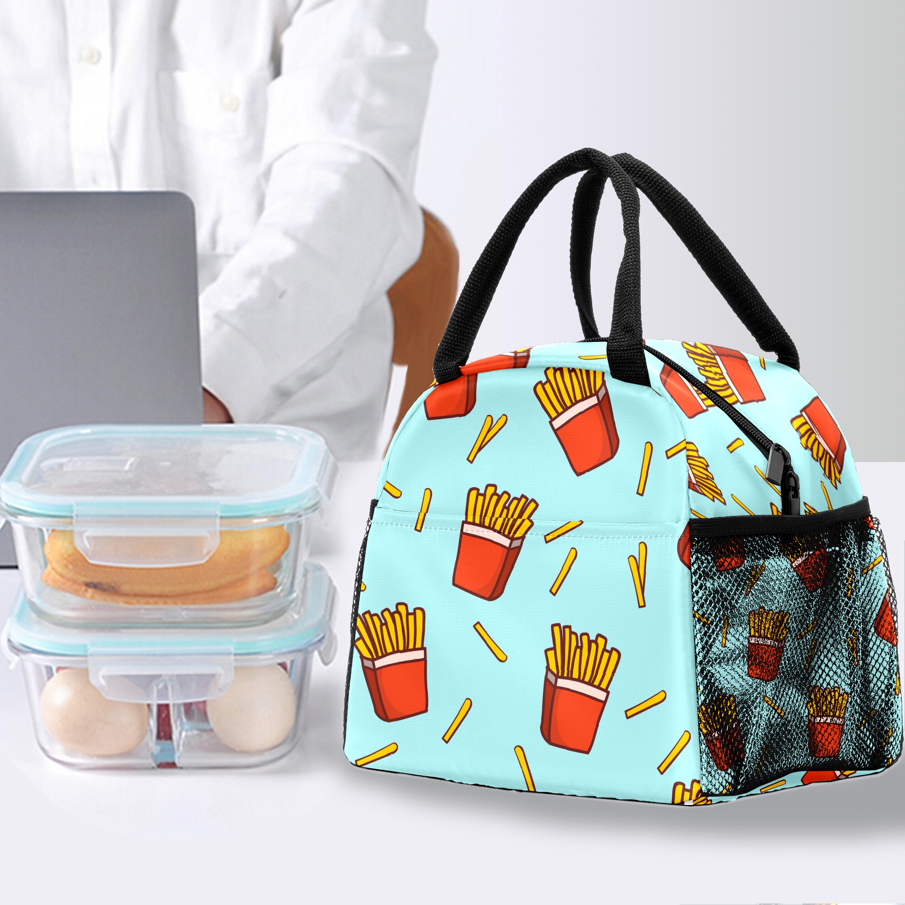 Lunch Bag for Women Men, Funny French Fries Pattern Insulated Reusable Lunch Box Thermal Cooler Tote Bag for Work Picnic Hiking Travel Beach