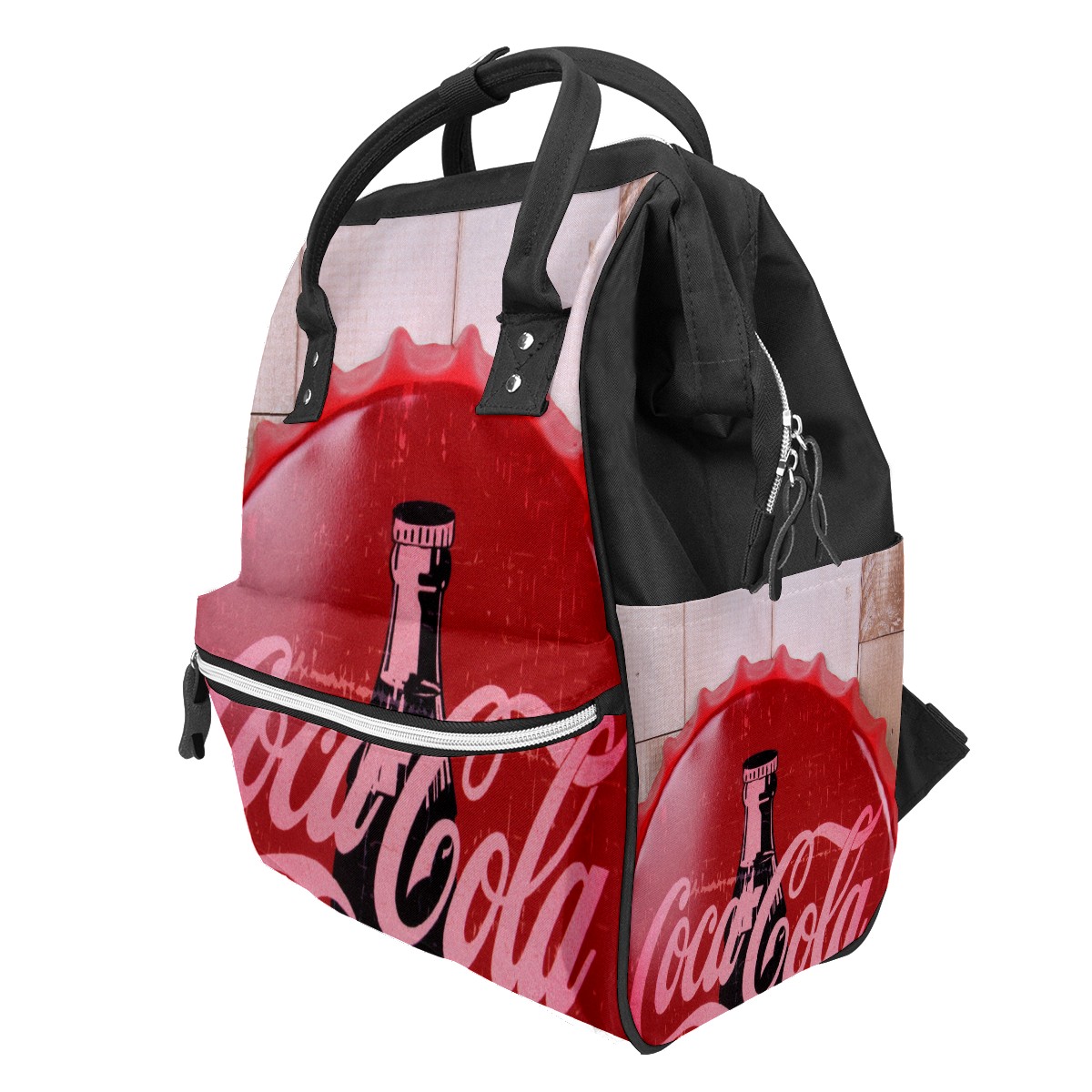 Backpack Diaper Bag Coca-Cola Bottle Cap On Wooden Waterproof Baby Bag Mom and Dad's Diaper Backpack Lightweight Large Capacity Diaper Bag Travel Daypack