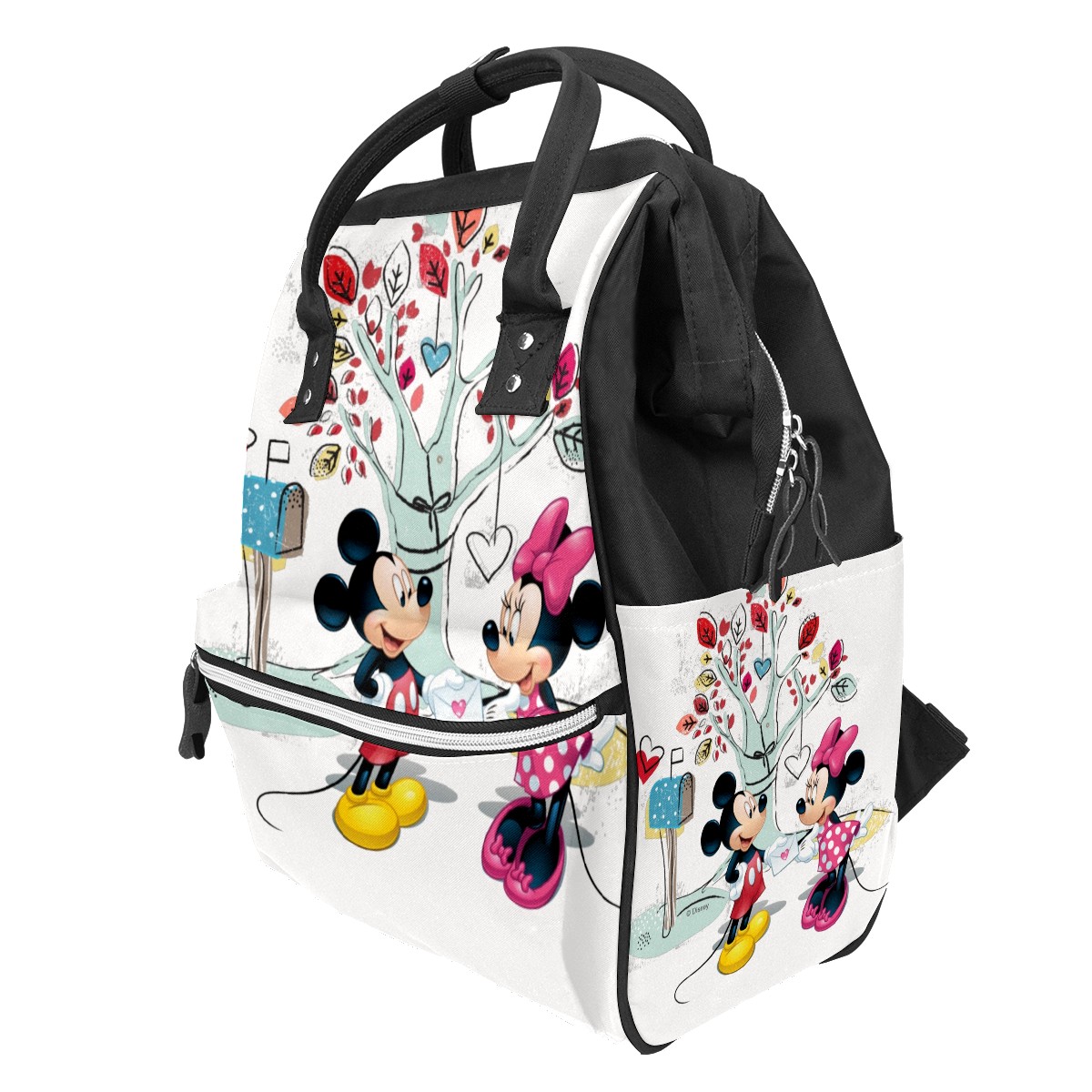 Backpack Diaper Bag Mickey Mouse Minnie Valentine's Day Waterproof Baby Bag Mom and Dad's Diaper Backpack Lightweight Large Capacity Diaper Bag Travel Daypack
