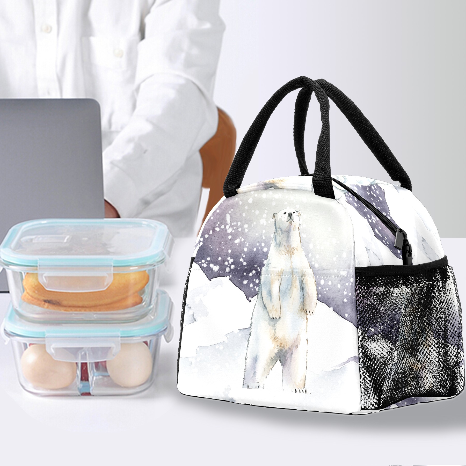 Lunch Bag for Women Men, Winter Snow Animal Polar Bear Insulated Reusable Lunch Box Thermal Cooler Tote Bag for Work Picnic Hiking Travel Beach