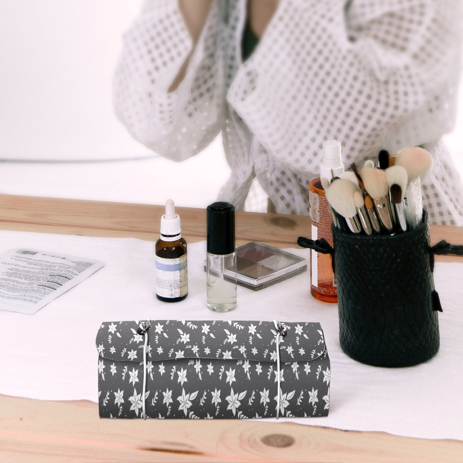 Makeup Bag Organizer Toiletry Bags for Traveling Travel Makeup Organizer Make Up Case Roll Up Toiletry Bag Makeup Bag Winter Flower-01 Travel Cosmetic Bag