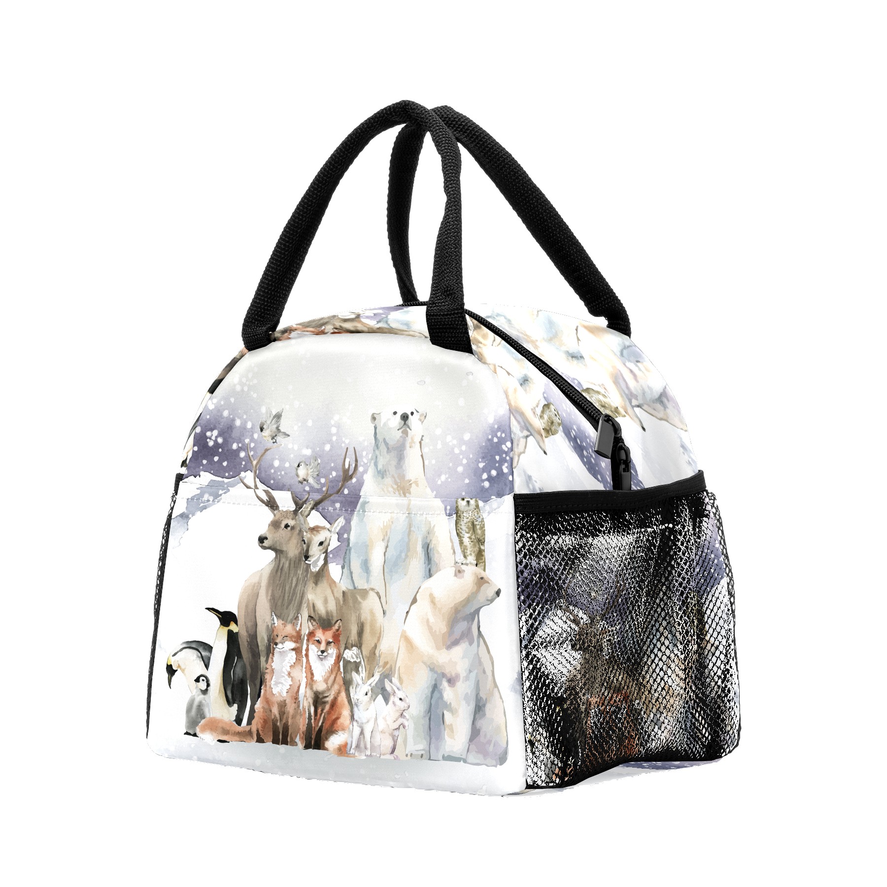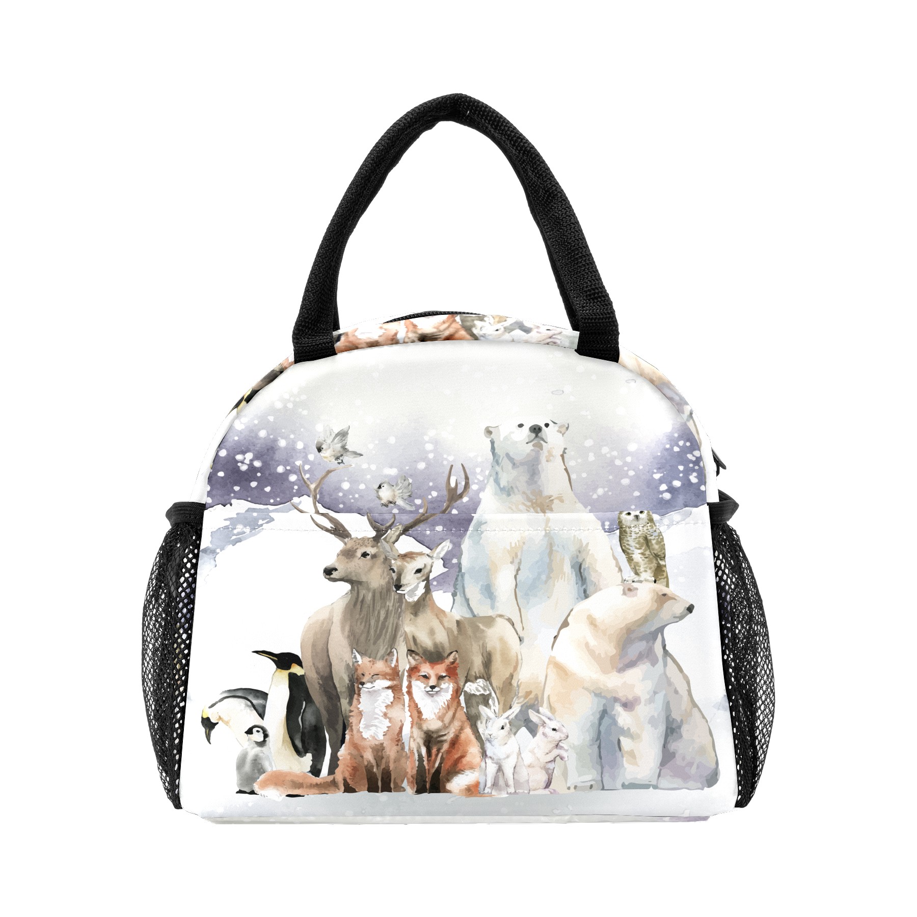 Lunch Bag for Women Men, Winter Forest Animal Bear Fox Penguin Insulated Reusable Lunch Box Thermal Cooler Tote Bag for Work Picnic Hiking Travel Beach