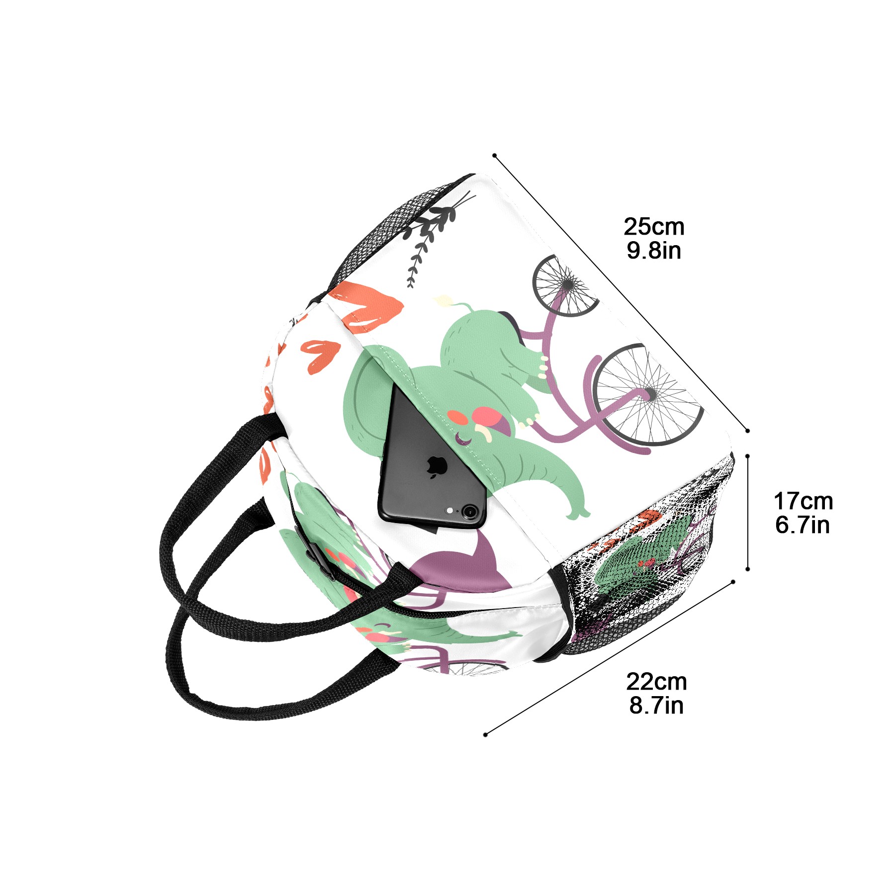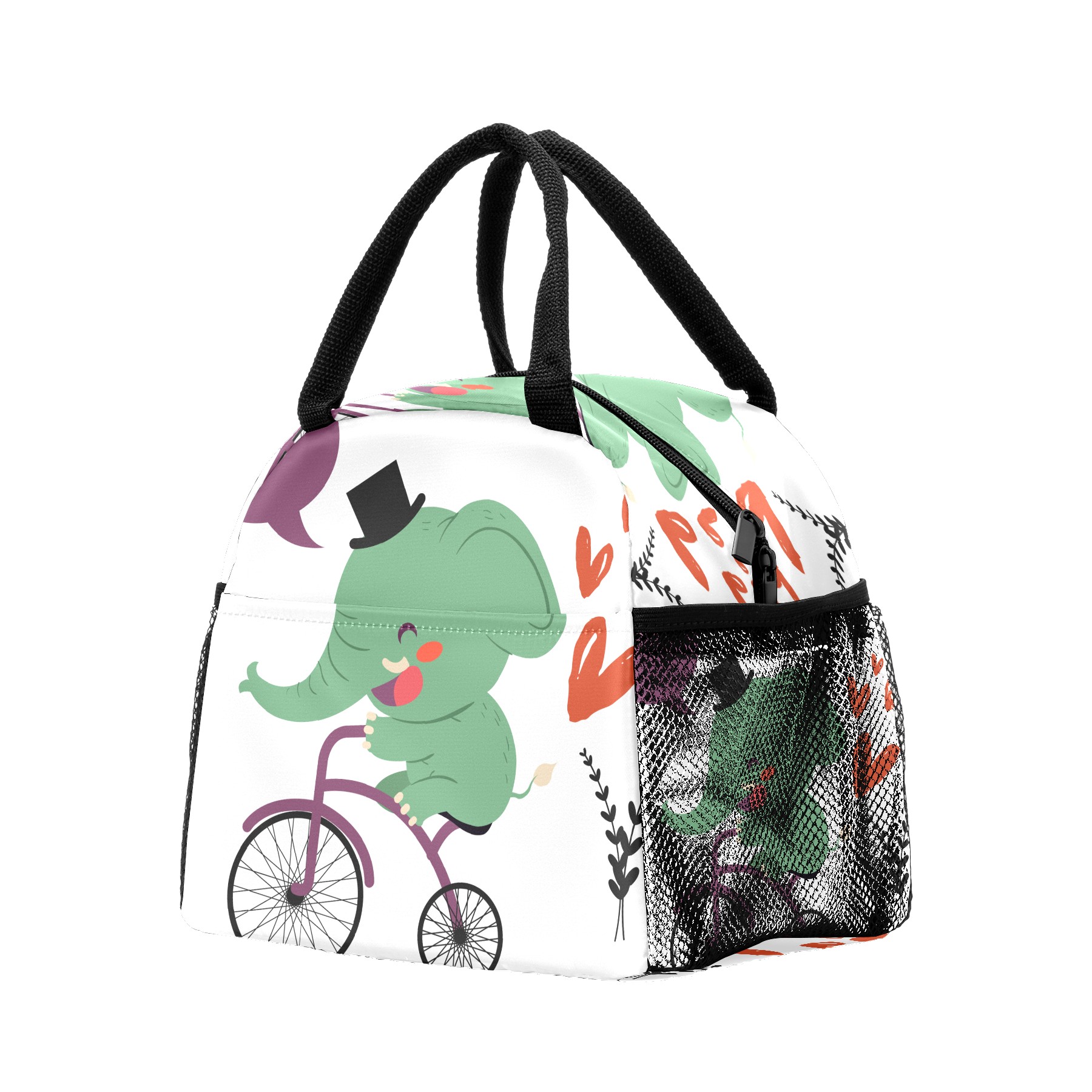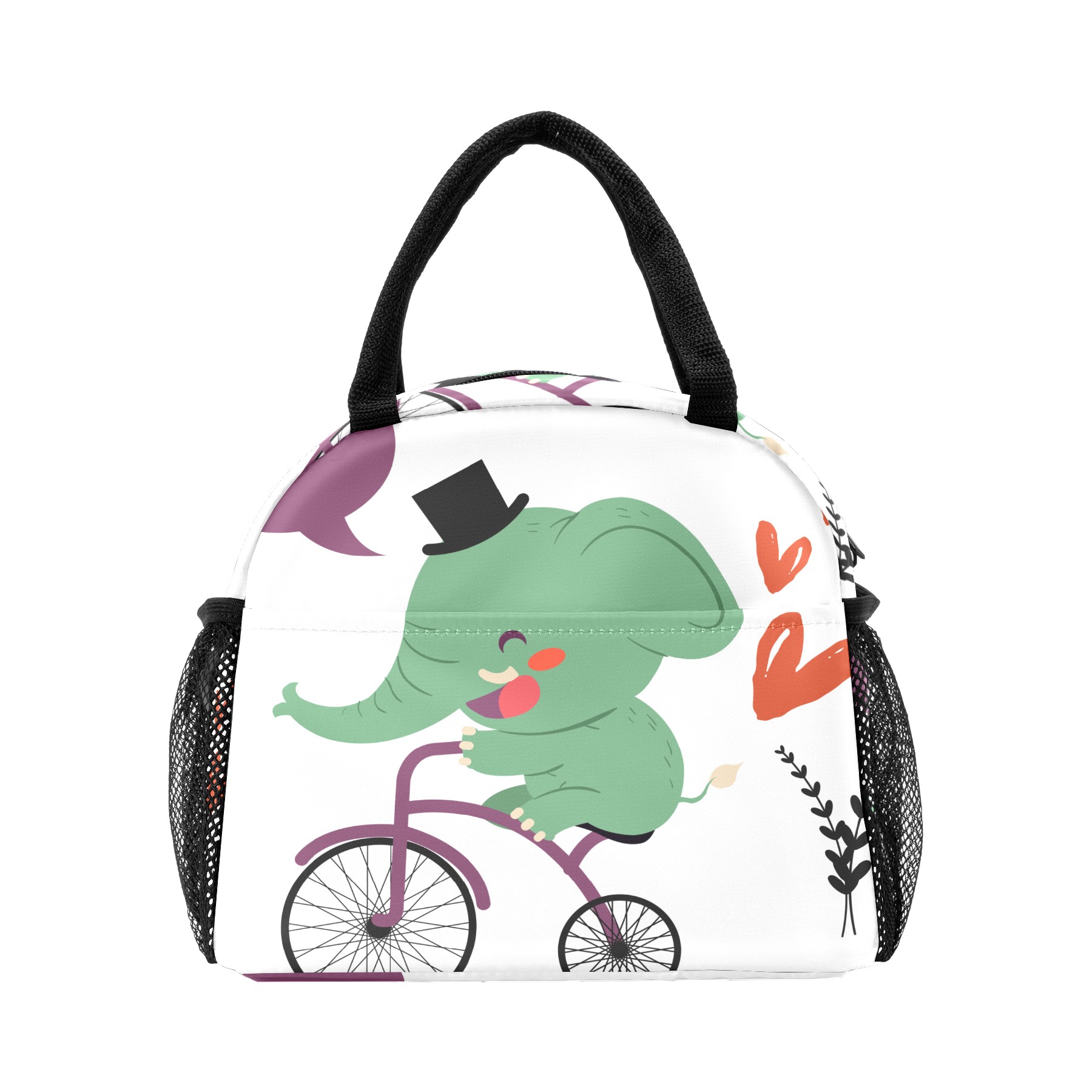 Lunch Bag for Women Men, Funny Elephant Ride A Bicycle Insulated Reusable Lunch Box Thermal Cooler Tote Bag for Work Picnic Hiking Travel Beach
