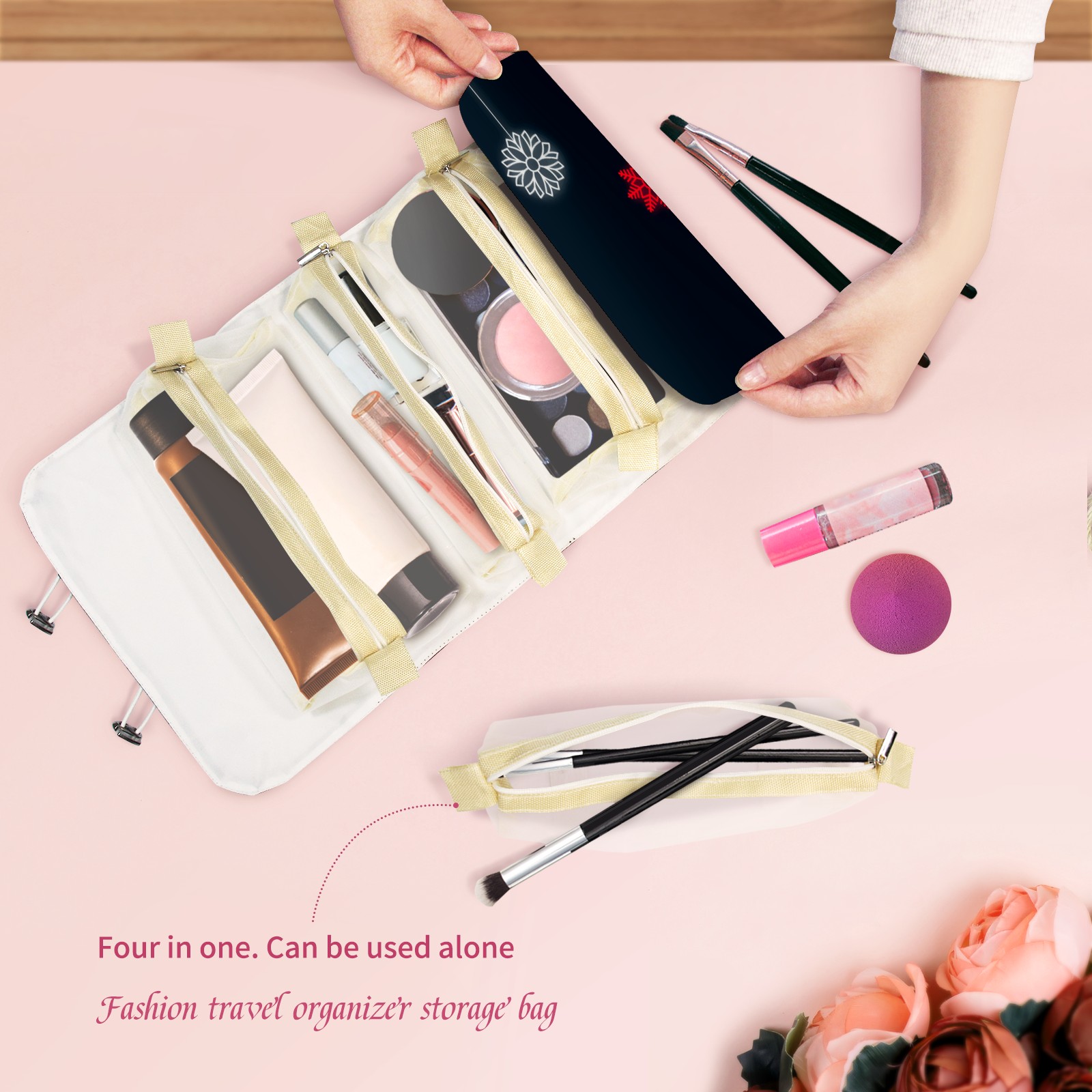 Makeup Bag Organizer Toiletry Bags for Traveling Travel Makeup Organizer Make Up Case Roll Up Toiletry Bag Makeup Bag Snowflake Ornament Merry Christmas-01 Travel Cosmetic Bag