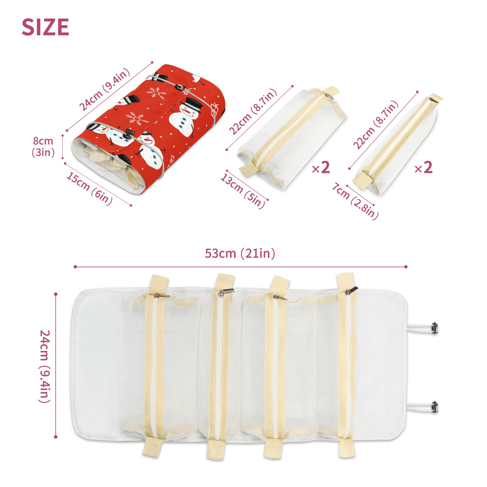 • <p> This is a nice and compact travel/ organizer bag. All the pouches are removable. This makes it very easy to use or pull out what you need in the moment, and not get stuck rummaging through a bag and not being able to find your items. It folds up nicely, and has 2 bungee straps that you can sinch tight to hold. It works great for traveling. </p> <p> </p> <p><b> Notes:&nbsp; </b></p> <p> 1.Due to the difference between different monitors,the picture may not reflect the actual color of the item. We guarantee the style is the same as shown in the pictures.&nbsp; </p> <p> 2.Due to the manual measurement and different measurement methods, please allow 1-3cm deviation.Thanks! </p>