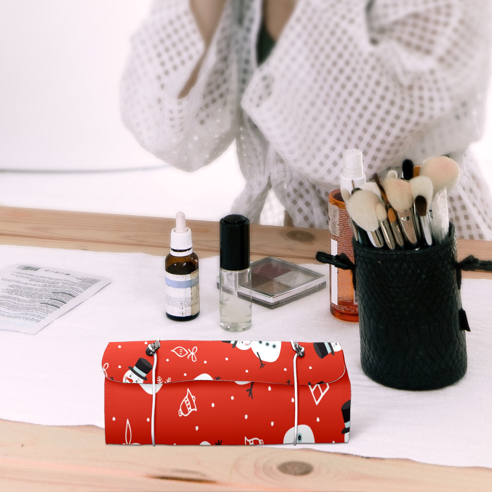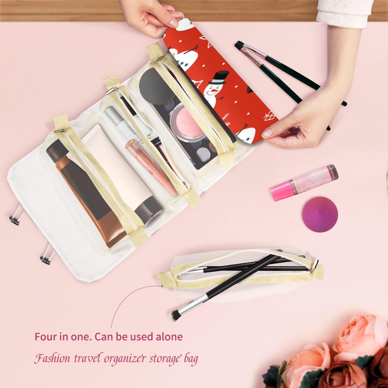 Makeup Bag Organizer Toiletry Bags for Traveling Travel Makeup Organizer Make Up Case Roll Up Toiletry Bag Makeup Bag Snowman With Black Hat Travel Cosmetic Bag