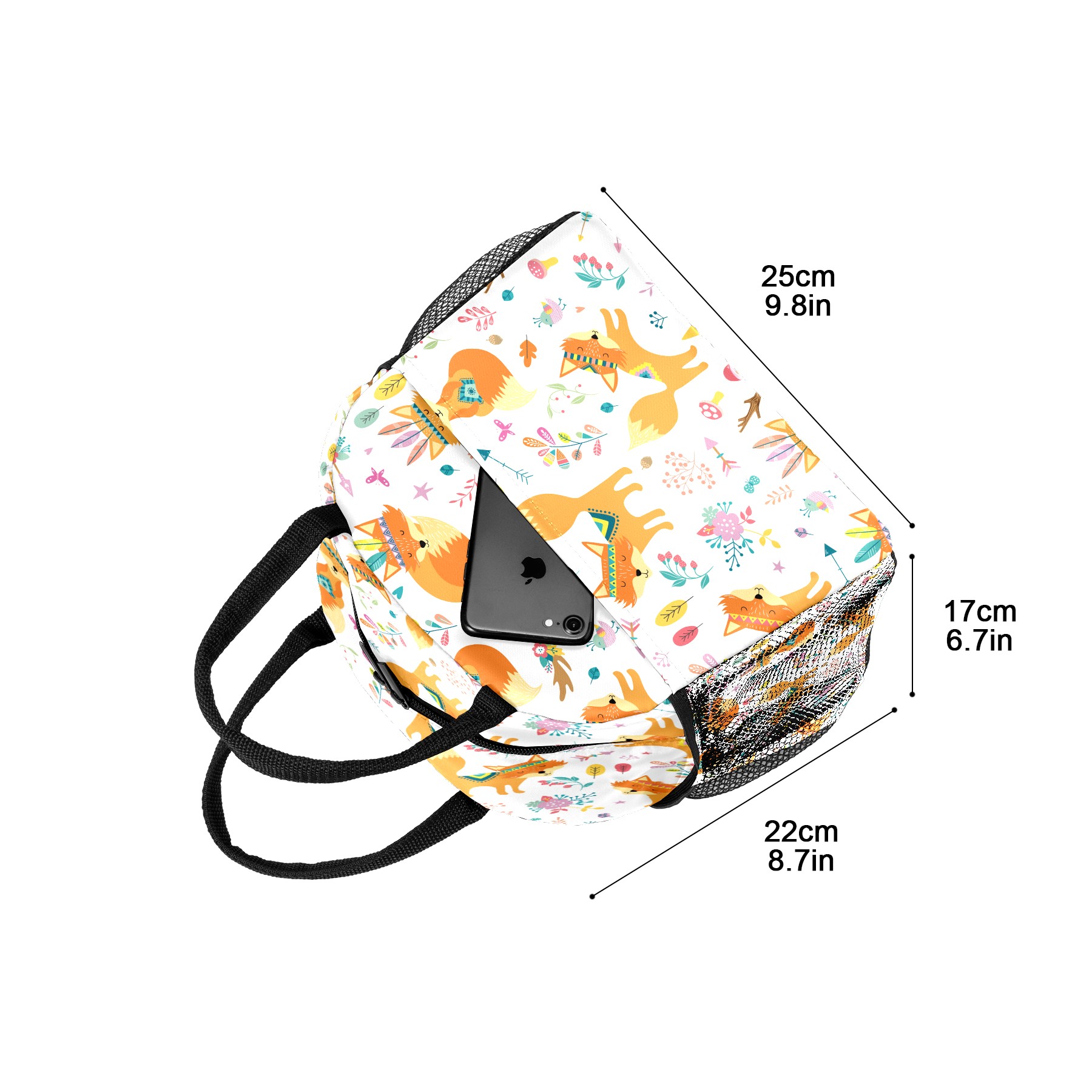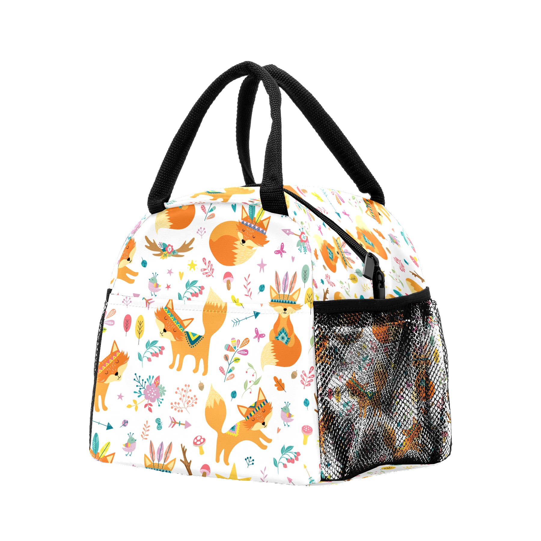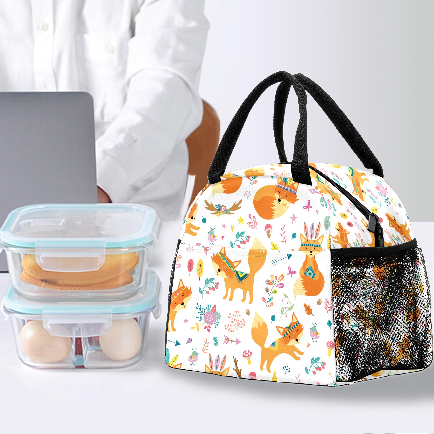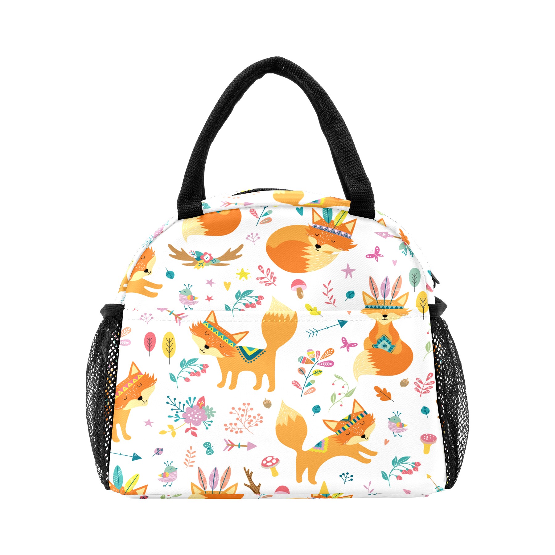 Lunch Bag for Women Men, Fox Ethnic Feather Arrow Pattern Insulated Reusable Lunch Box Thermal Cooler Tote Bag for Work Picnic Hiking Travel Beach