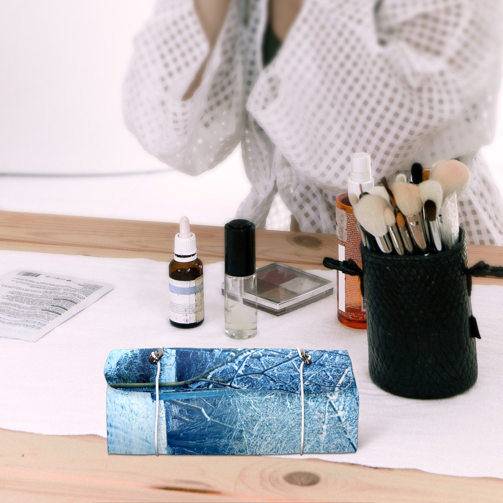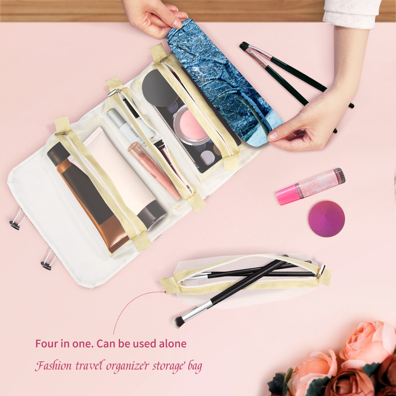 Makeup Bag Organizer Toiletry Bags for Traveling Travel Makeup Organizer Make Up Case Roll Up Toiletry Bag Makeup Bag Snow Covered Tree Travel Cosmetic Bag