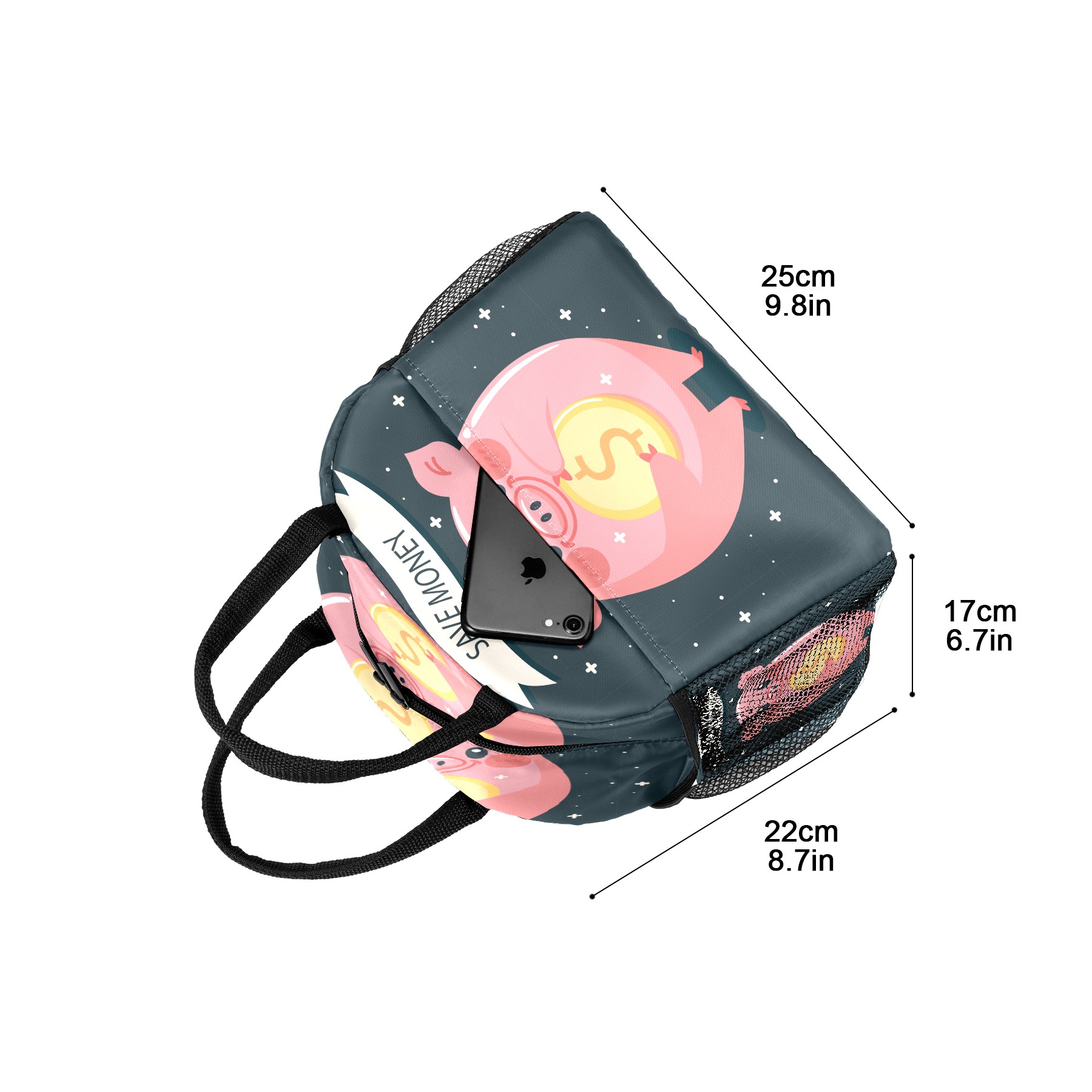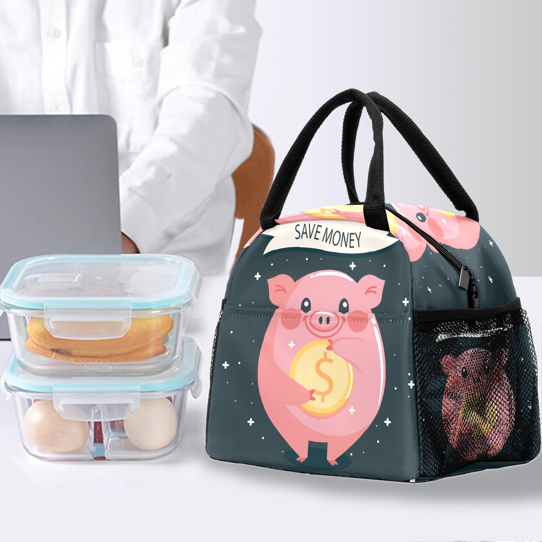 Lunch Bag for Women Men, Funny Animal Pig Money Insulated Reusable Lunch Box Thermal Cooler Tote Bag for Work Picnic Hiking Travel Beach