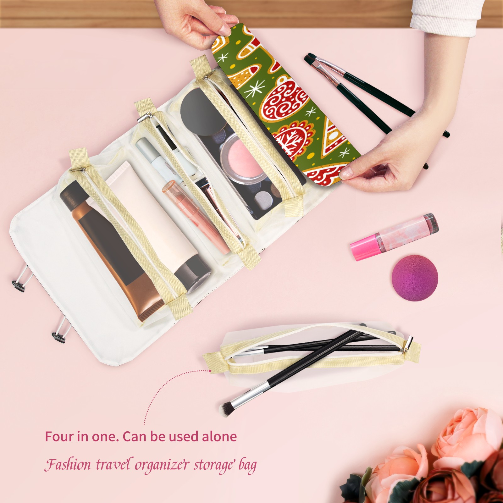 Makeup Bag Organizer Toiletry Bags for Traveling Travel Makeup Organizer Make Up Case Roll Up Toiletry Bag Makeup Bag Shining Christmas Travel Cosmetic Bag