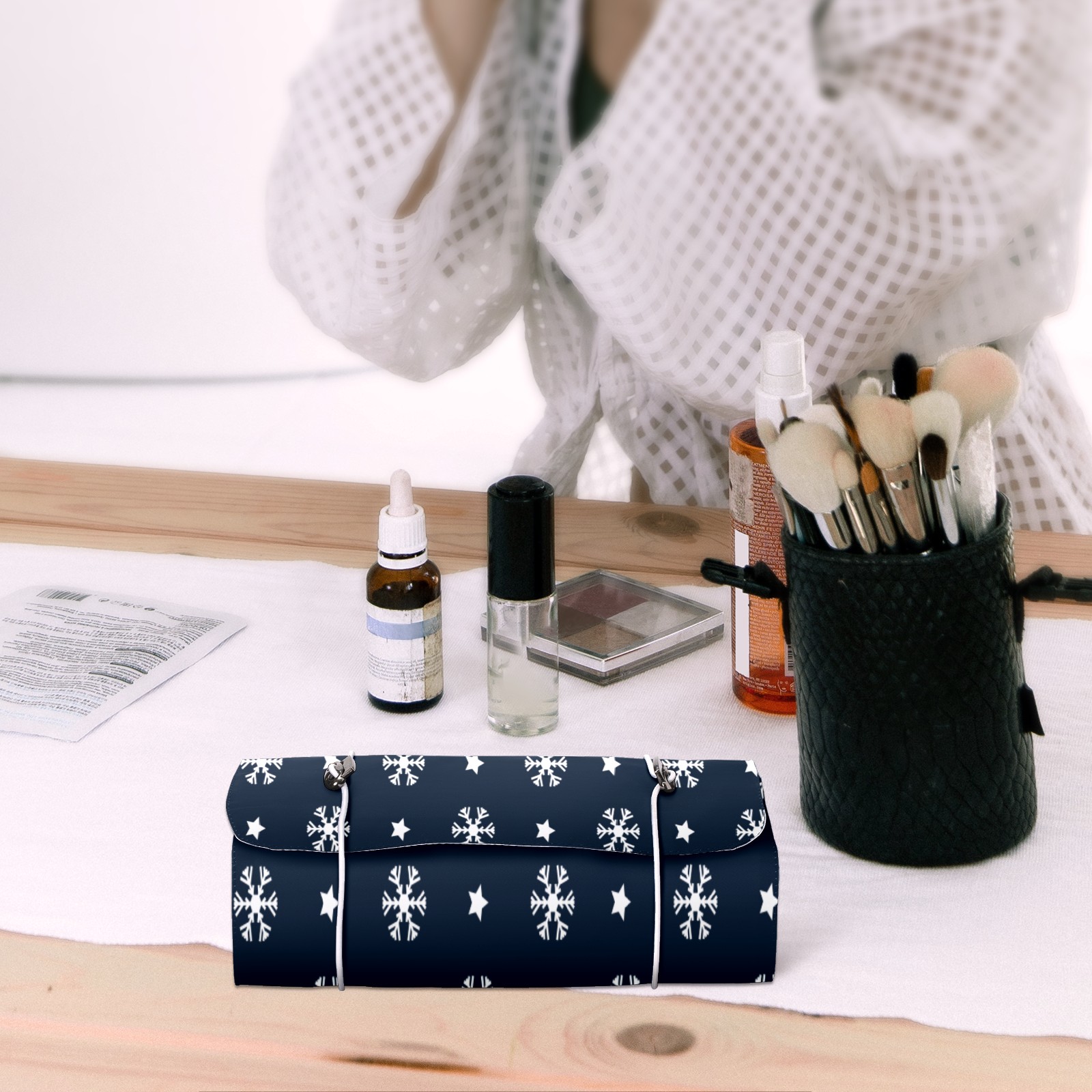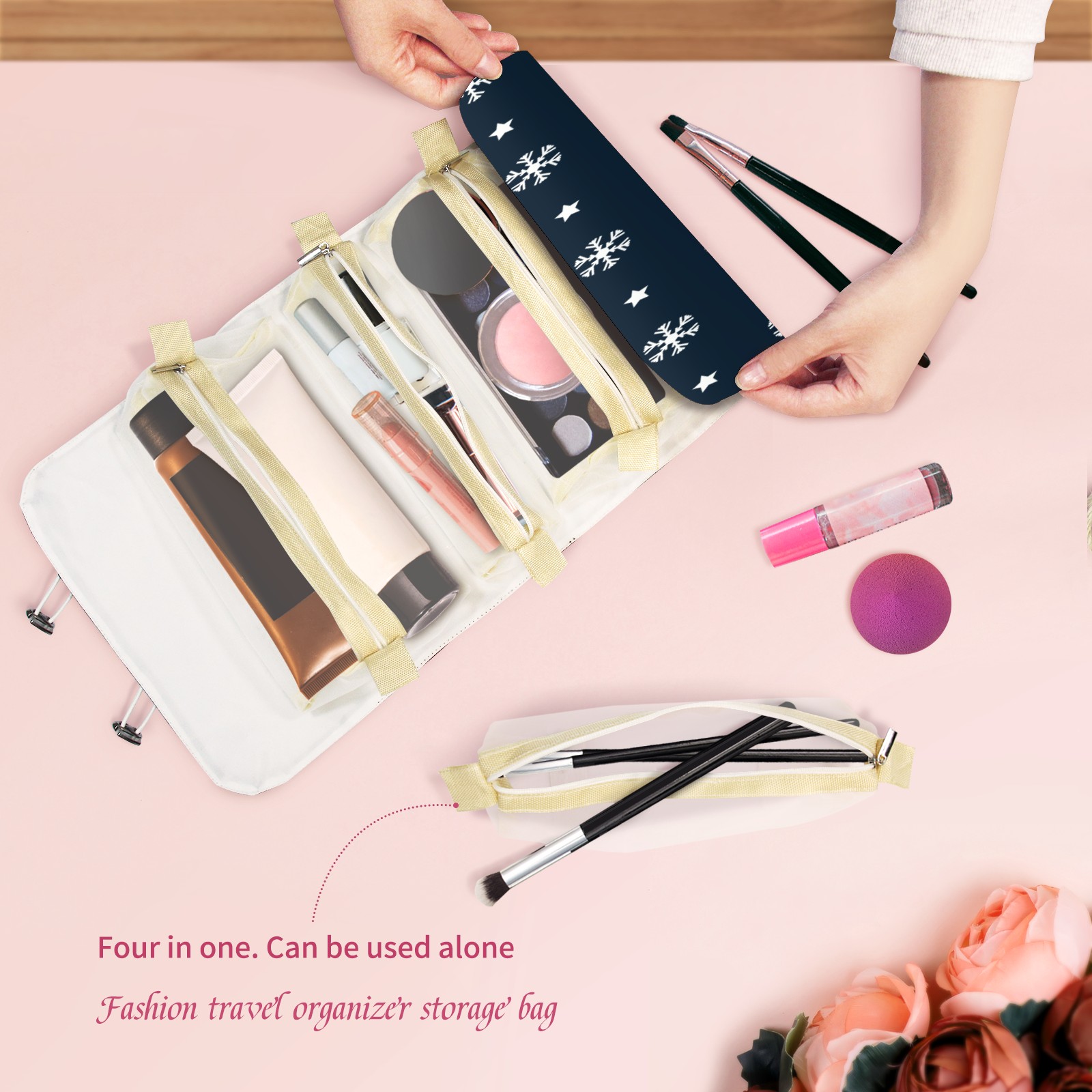 Makeup Bag Organizer Toiletry Bags for Traveling Travel Makeup Organizer Make Up Case Roll Up Toiletry Bag Makeup Bag Snow Flake On Blue-01 Travel Cosmetic Bag