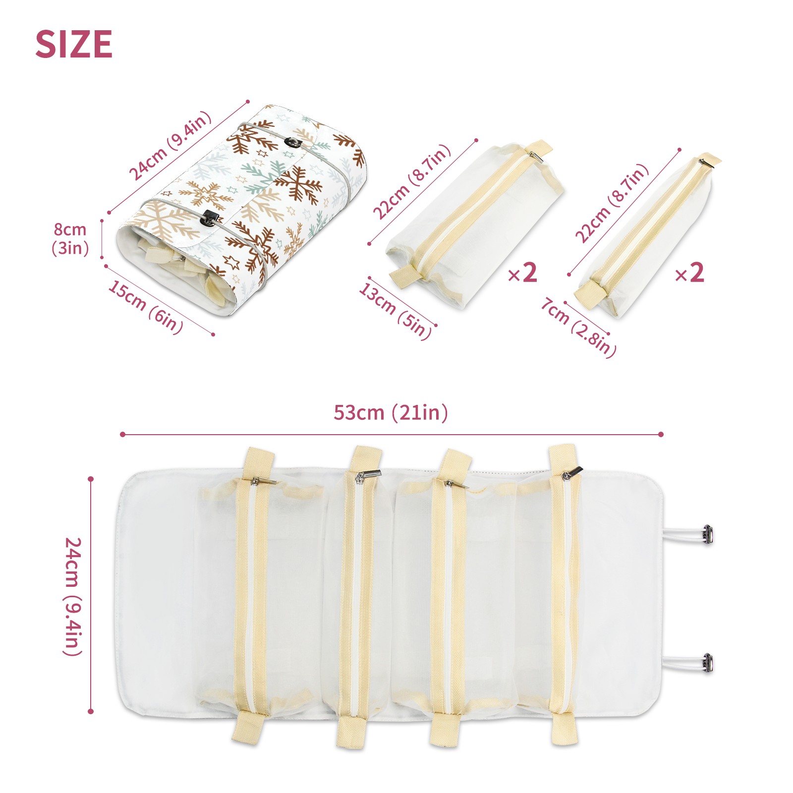 Makeup Bag Organizer Toiletry Bags for Traveling Travel Makeup Organizer Make Up Case Roll Up Toiletry Bag Makeup Bag Snow Flake Pattern-01 Travel Cosmetic Bag