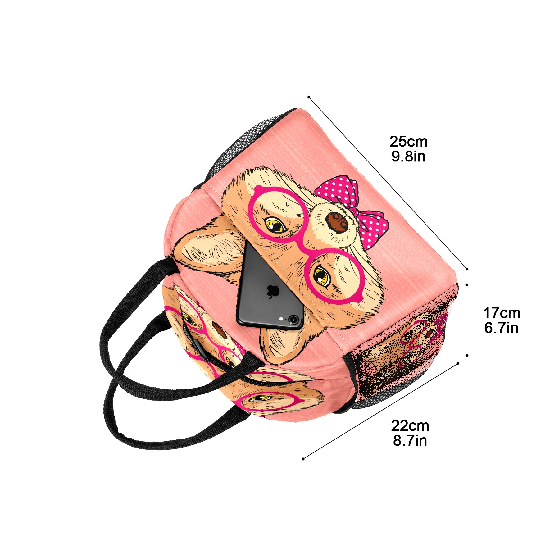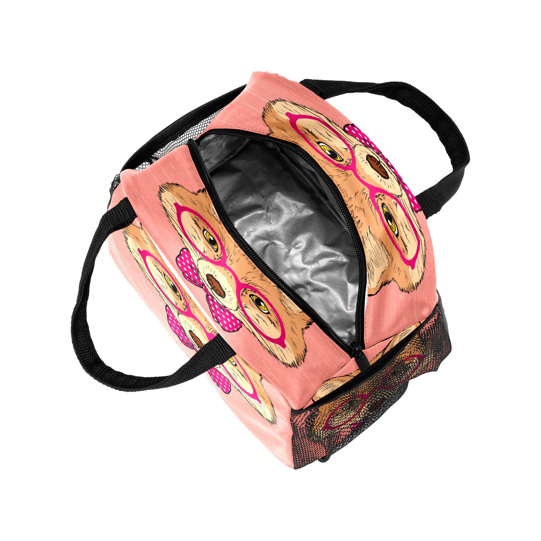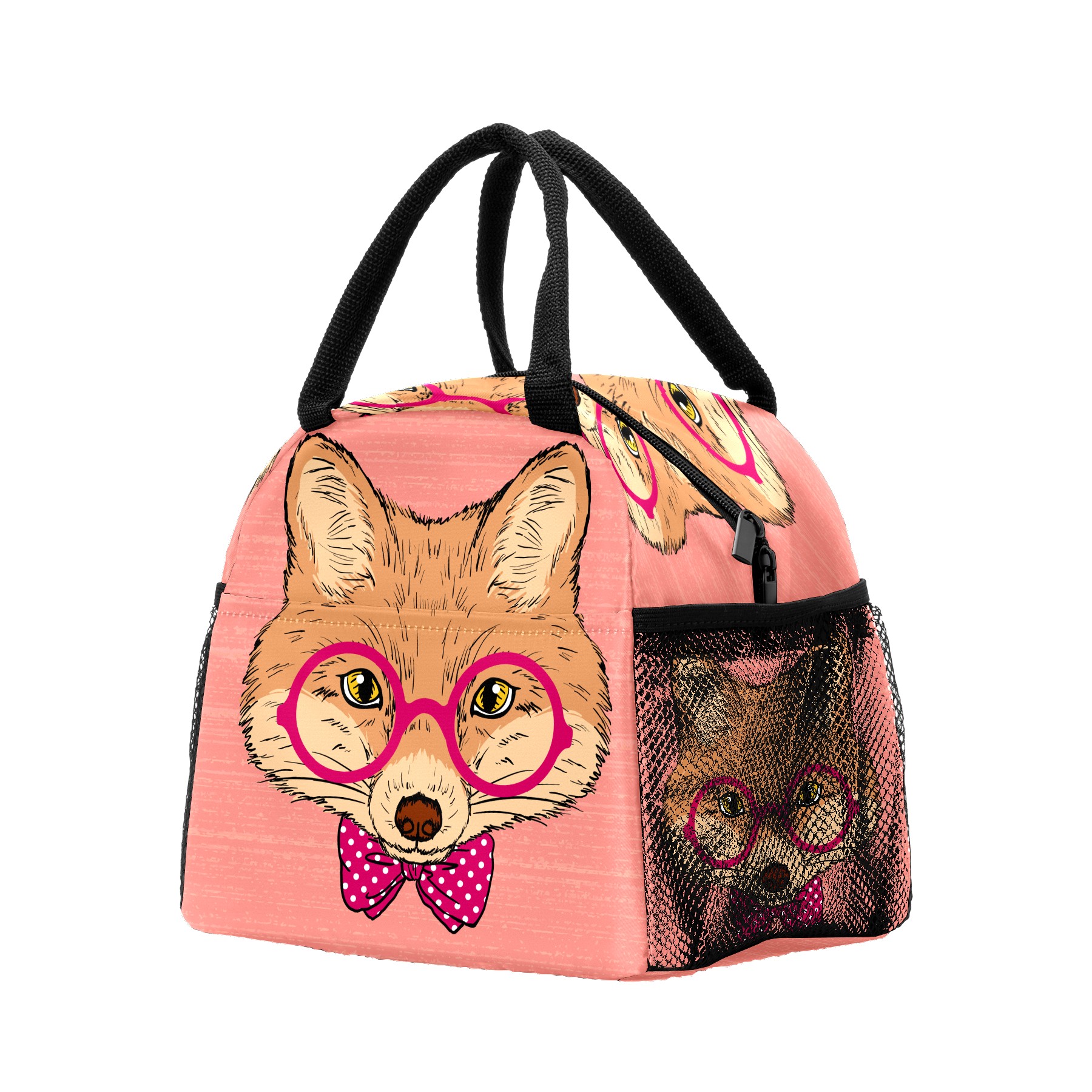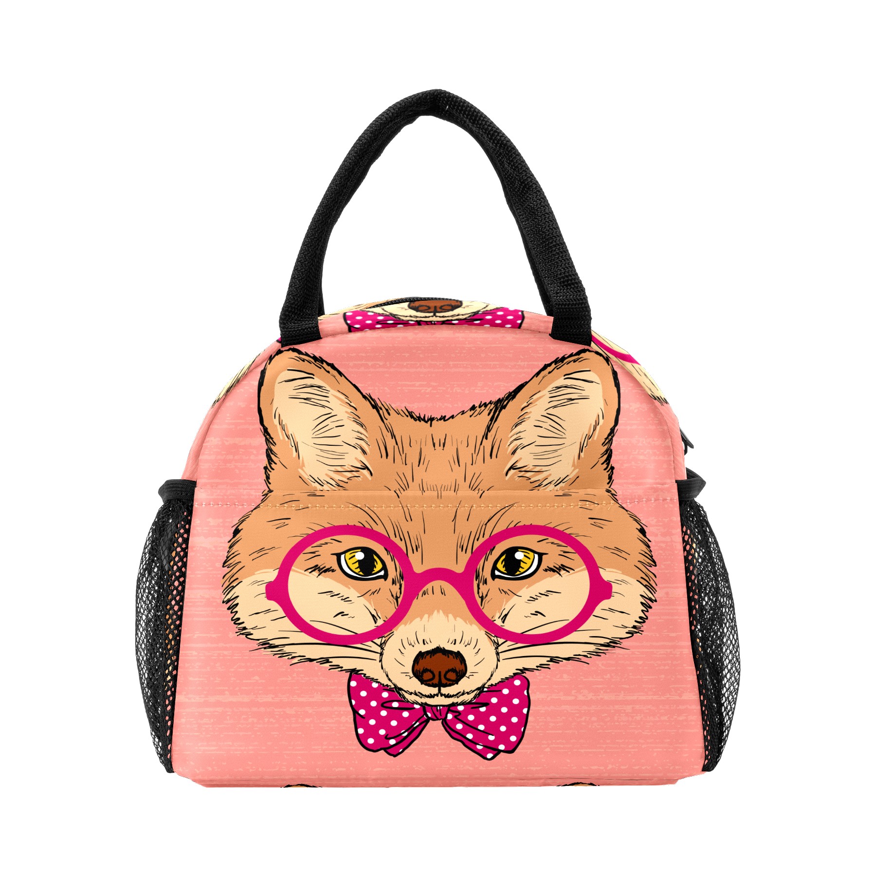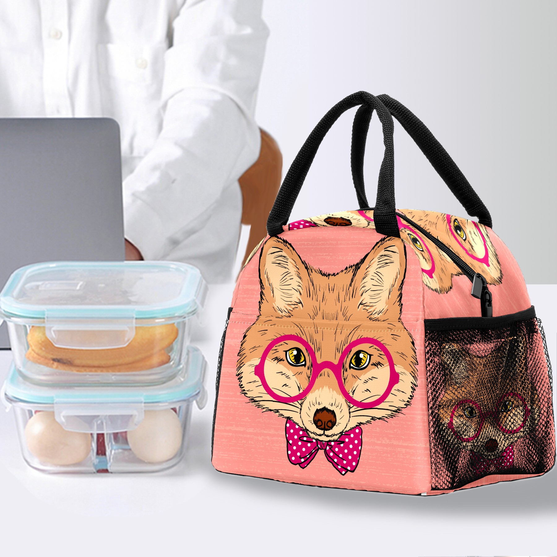 Lunch Bag for Women Men, Cute Hipster Fox With Glasses Bow Insulated Reusable Lunch Box Thermal Cooler Tote Bag for Work Picnic Hiking Travel Beach