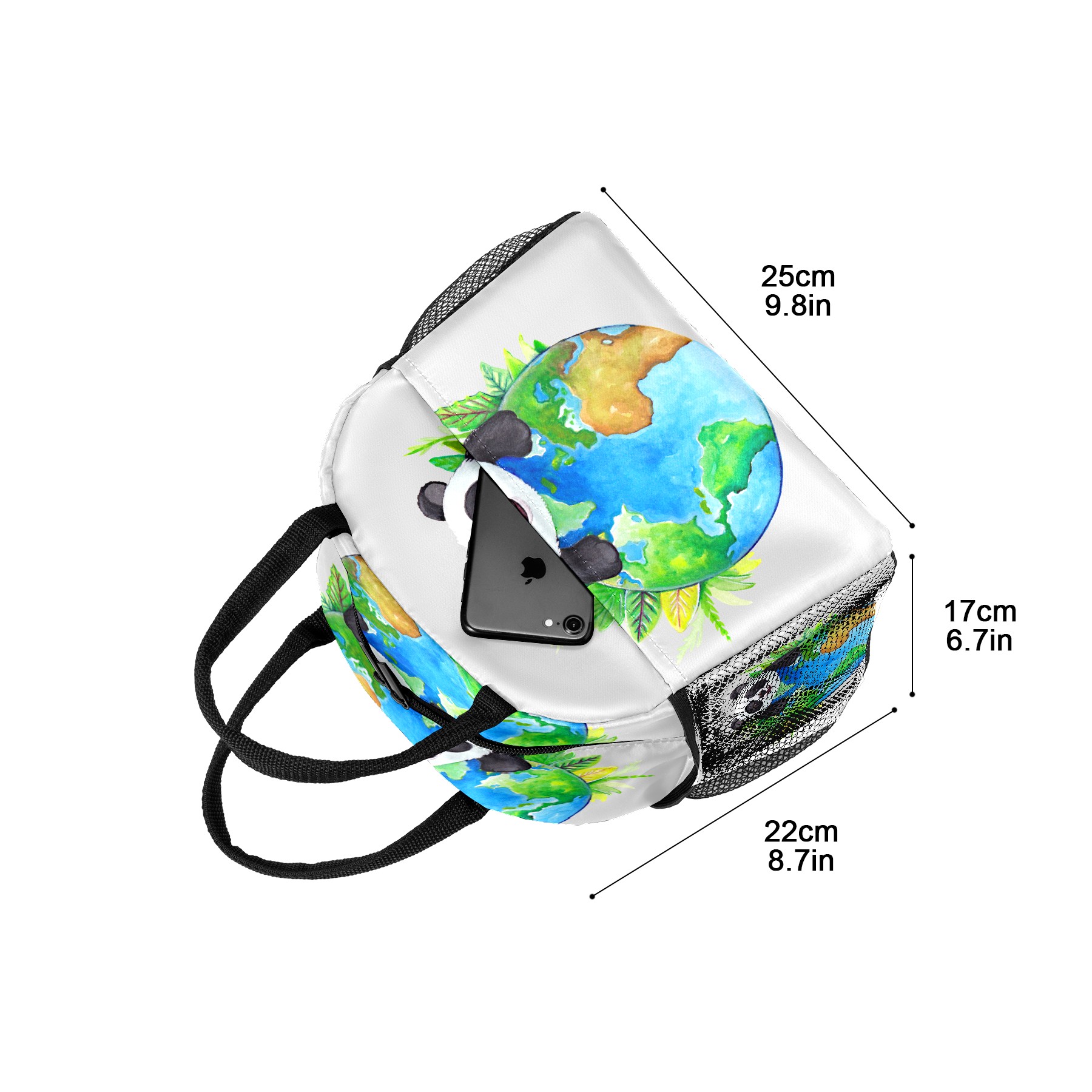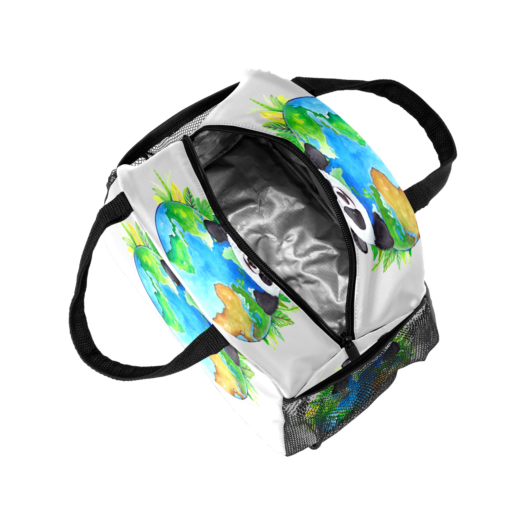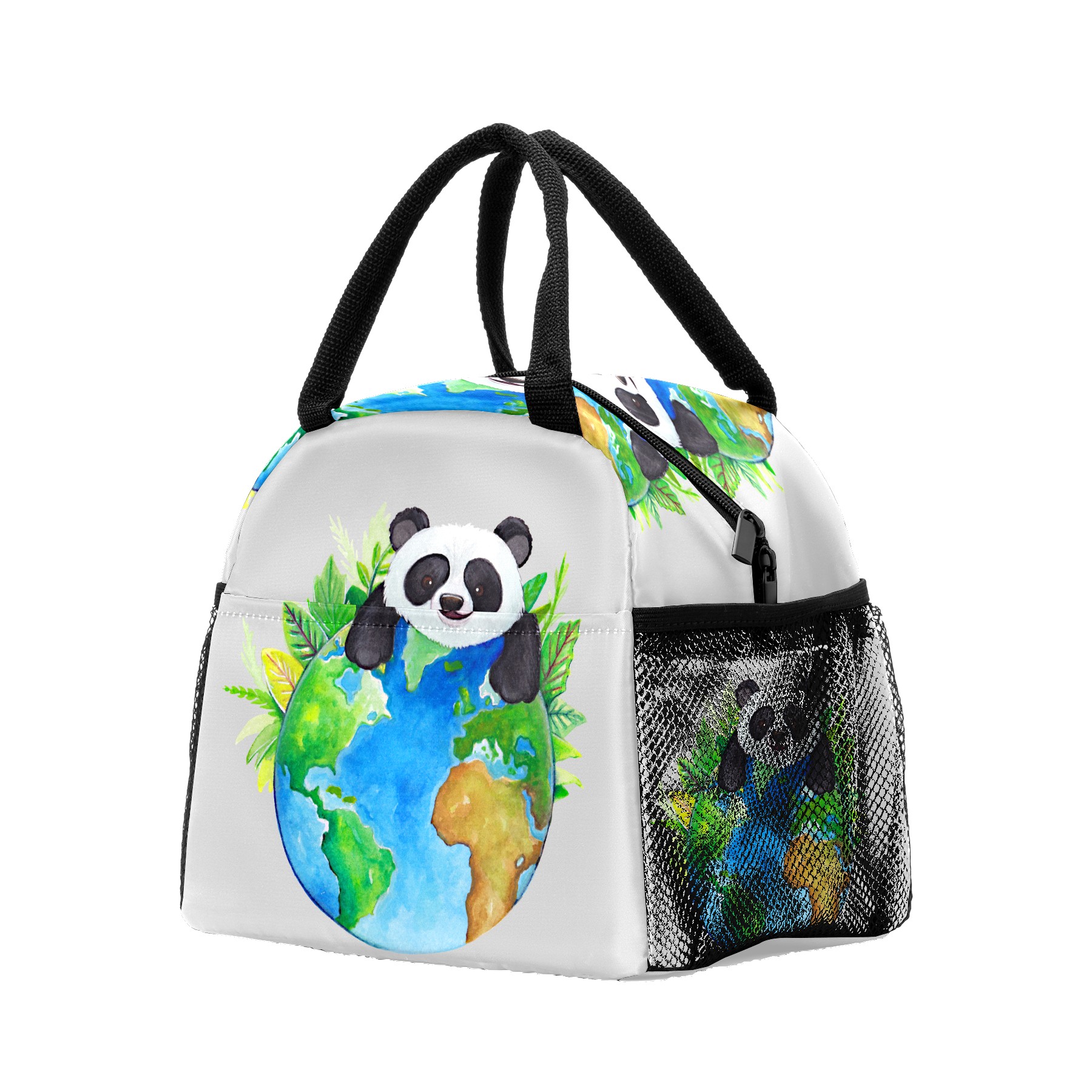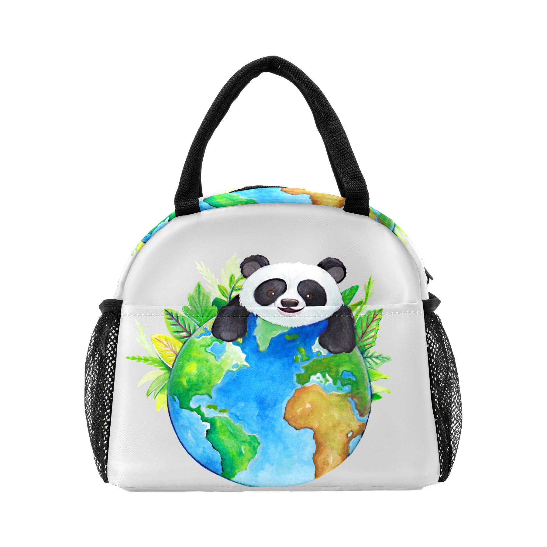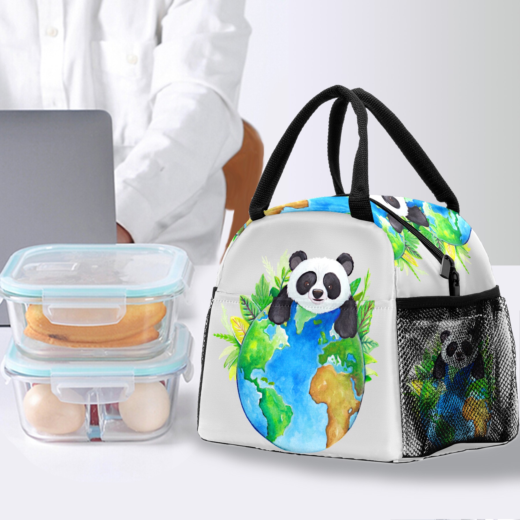 Lunch Bag for Women Men, Cute Panda With Earth Insulated Reusable Lunch Box Thermal Cooler Tote Bag for Work Picnic Hiking Travel Beach
