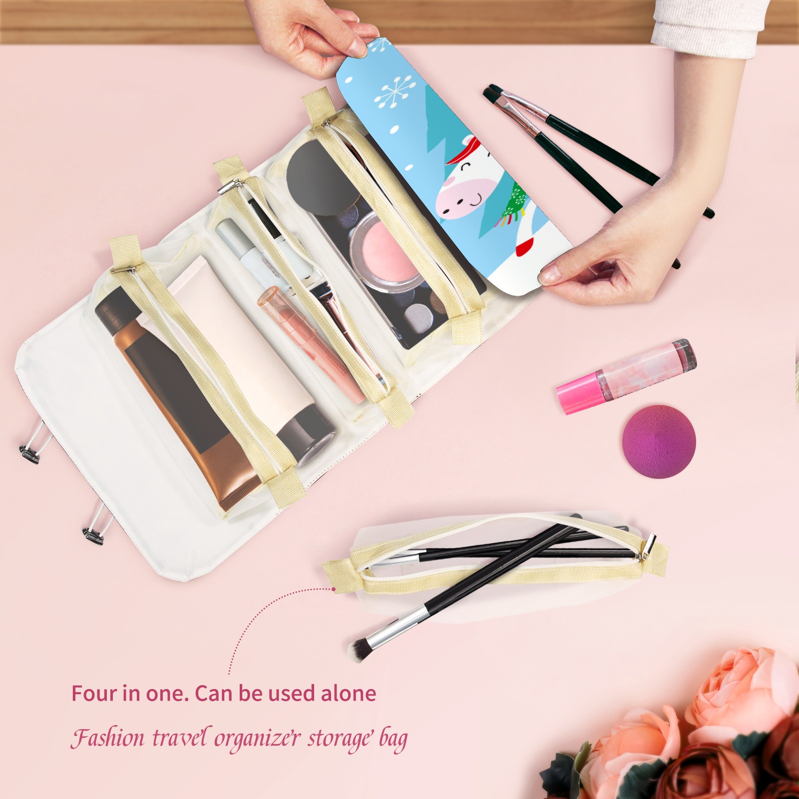 Makeup Bag Organizer Toiletry Bags for Traveling Travel Makeup Organizer Make Up Case Roll Up Toiletry Bag Makeup Bag Santa Is Here Travel Cosmetic Bag
