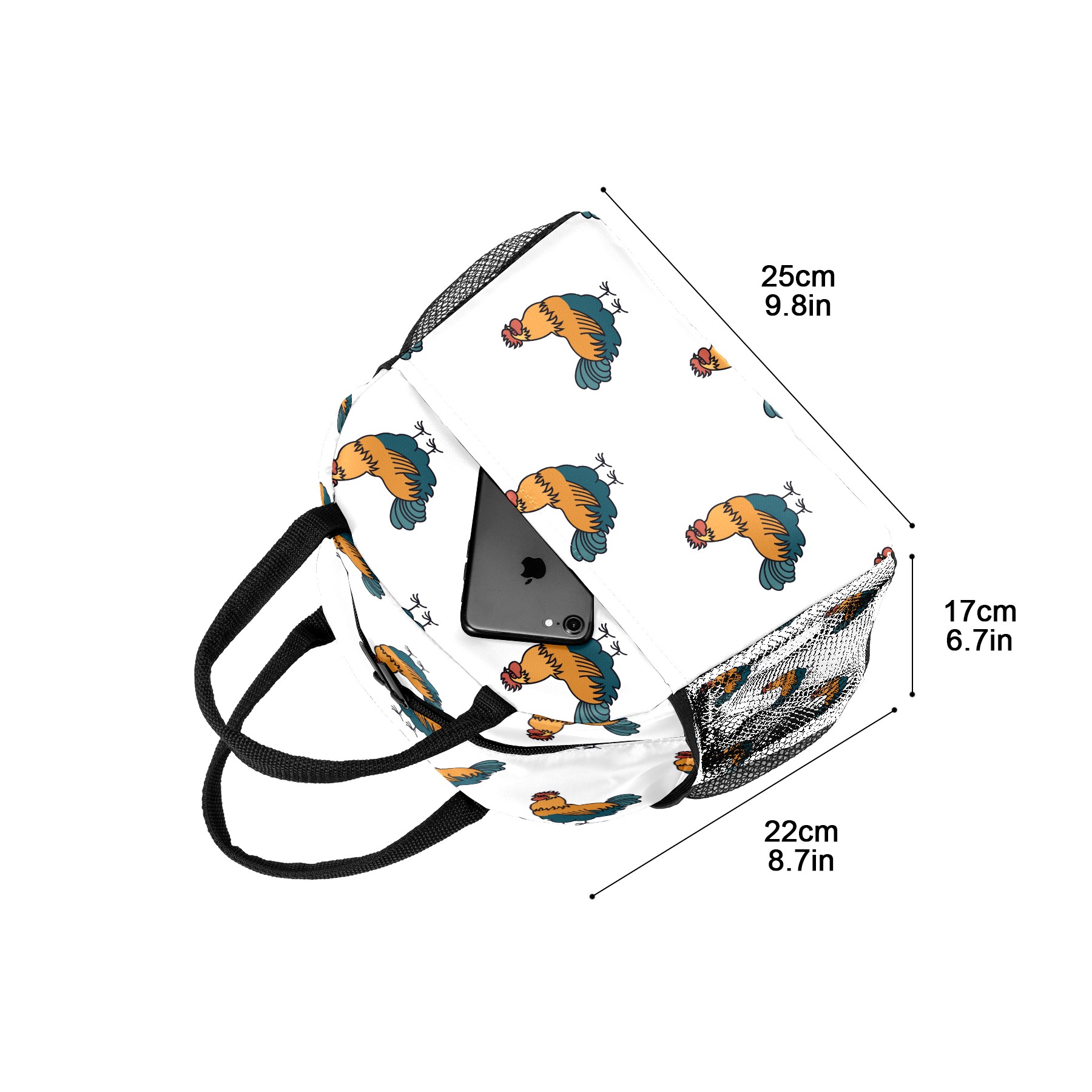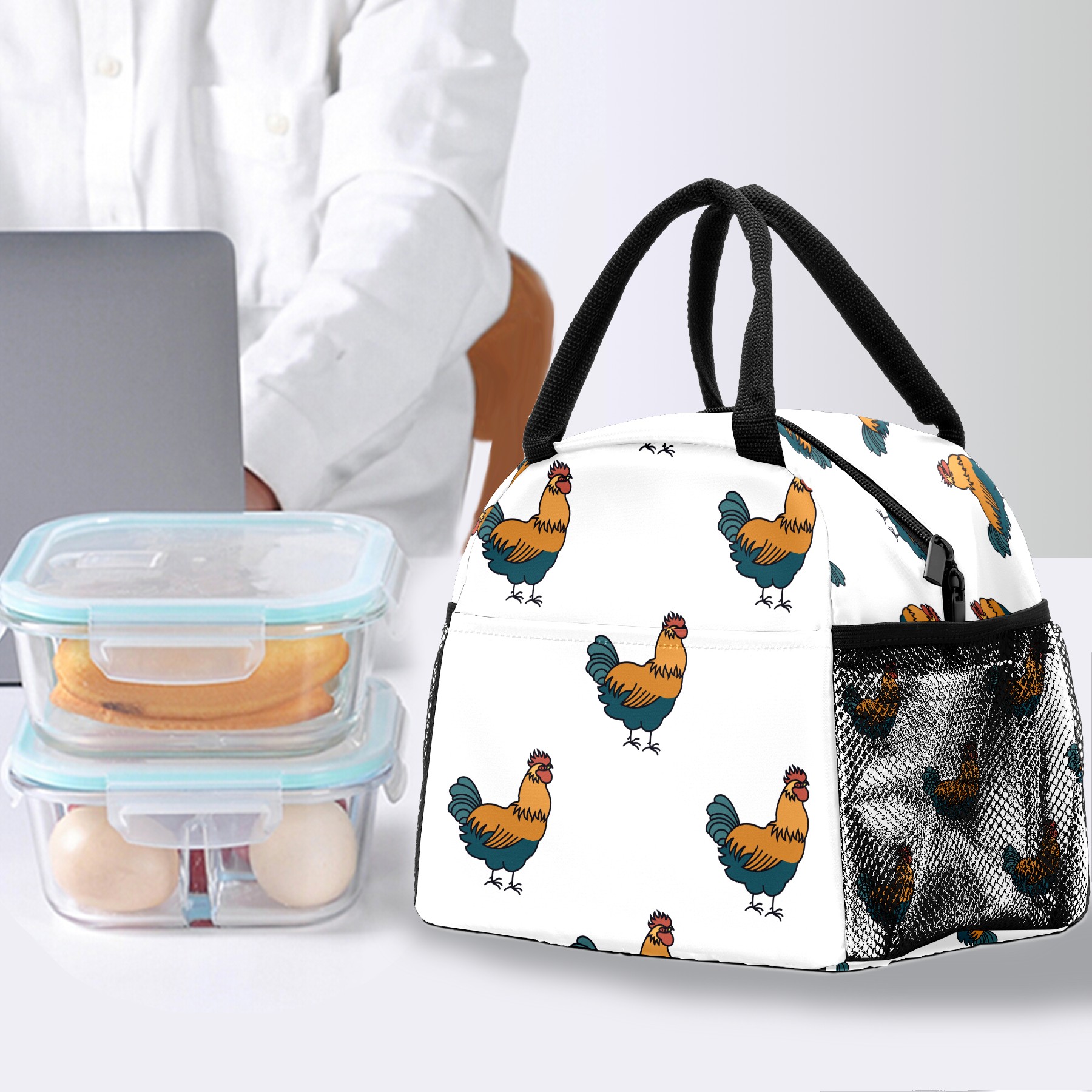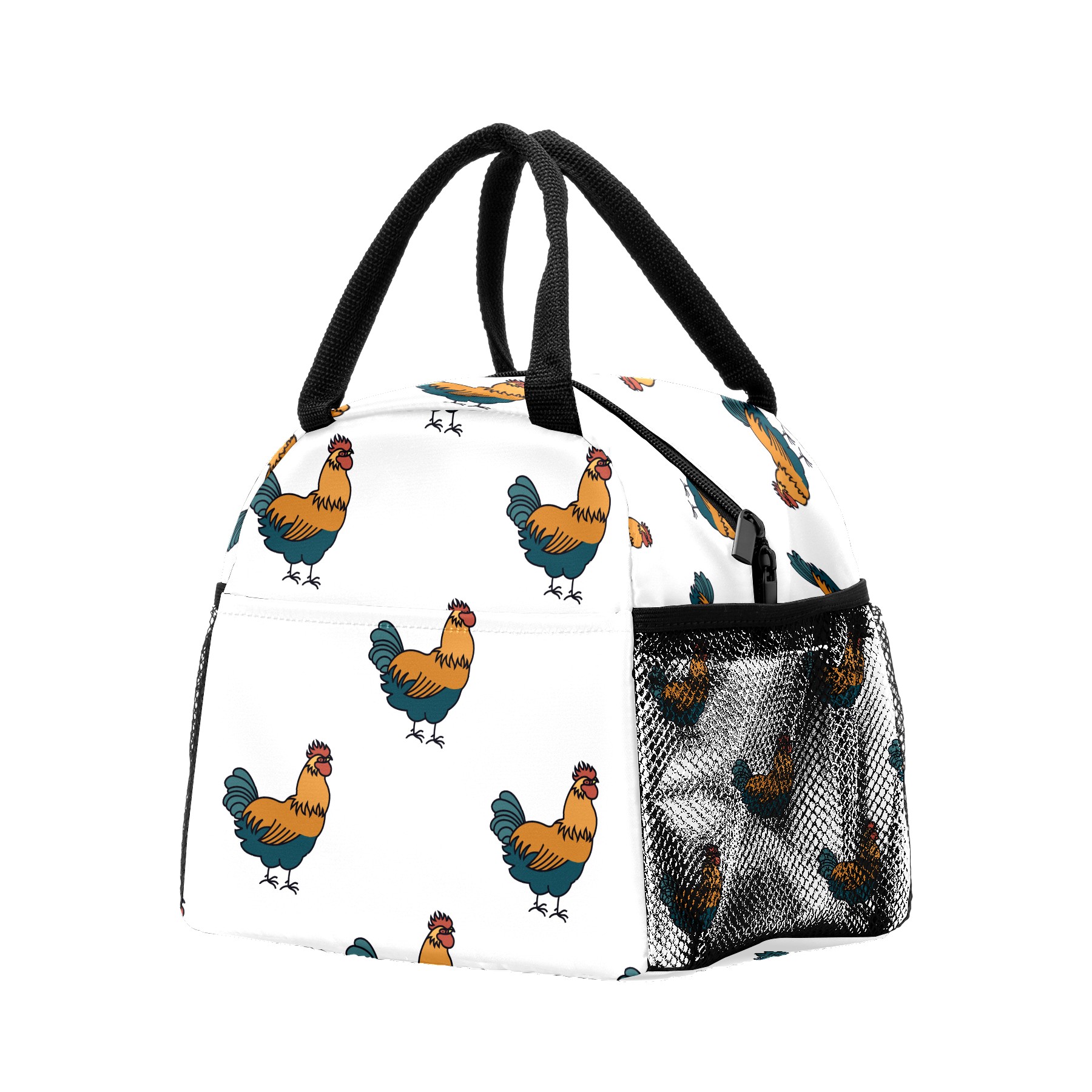 Lunch Bag for Women Men, Cute Rooster Pattern Insulated Reusable Lunch Box Thermal Cooler Tote Bag for Work Picnic Hiking Travel Beach