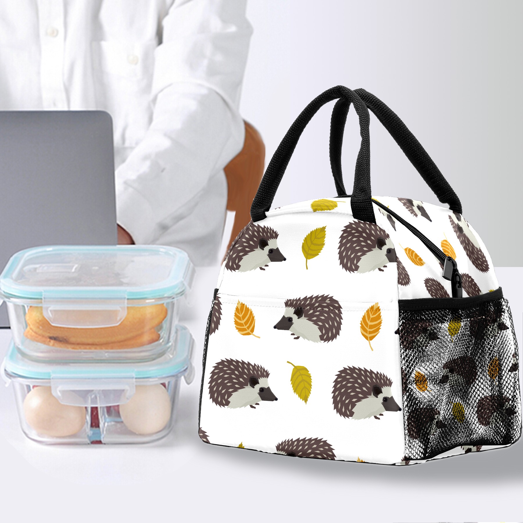Lunch Bag for Women Men, Cute Hedgehog Pattern Insulated Reusable Lunch Box Thermal Cooler Tote Bag for Work Picnic Hiking Travel Beach