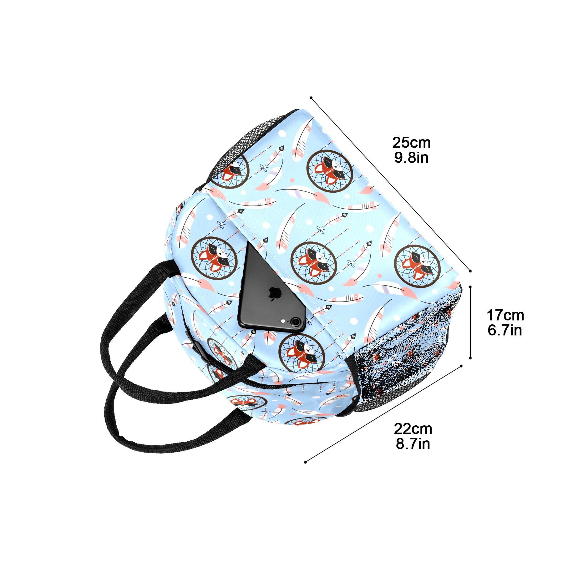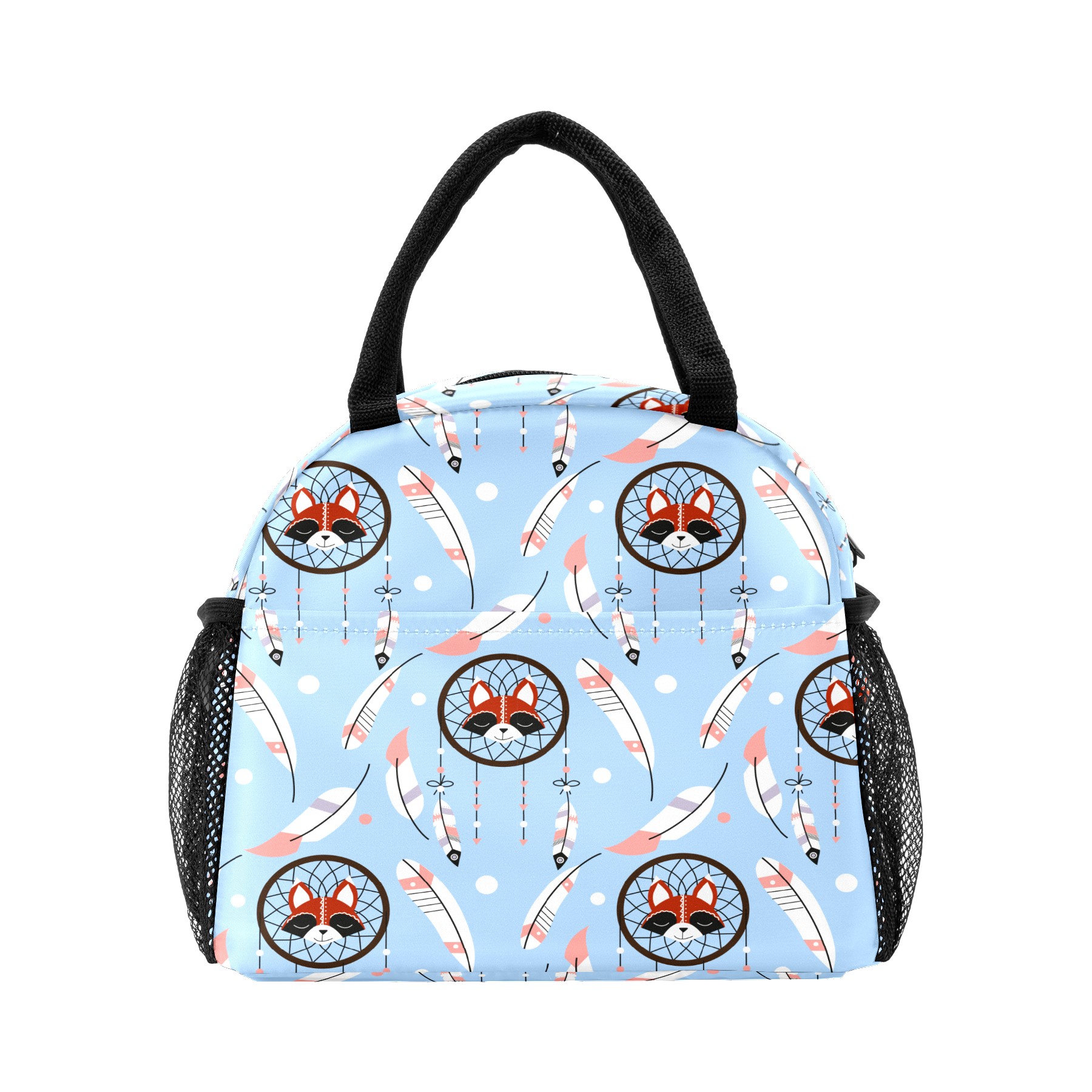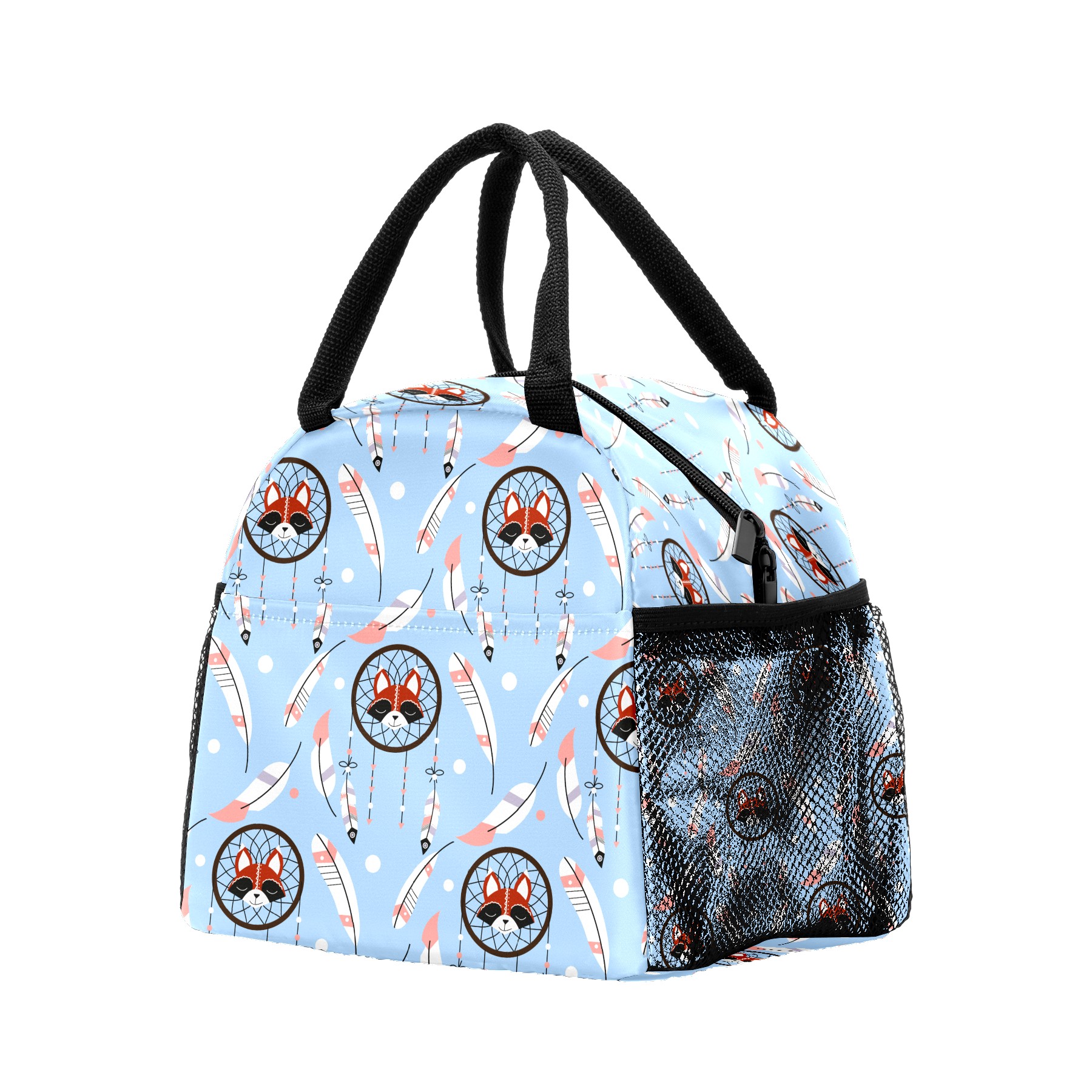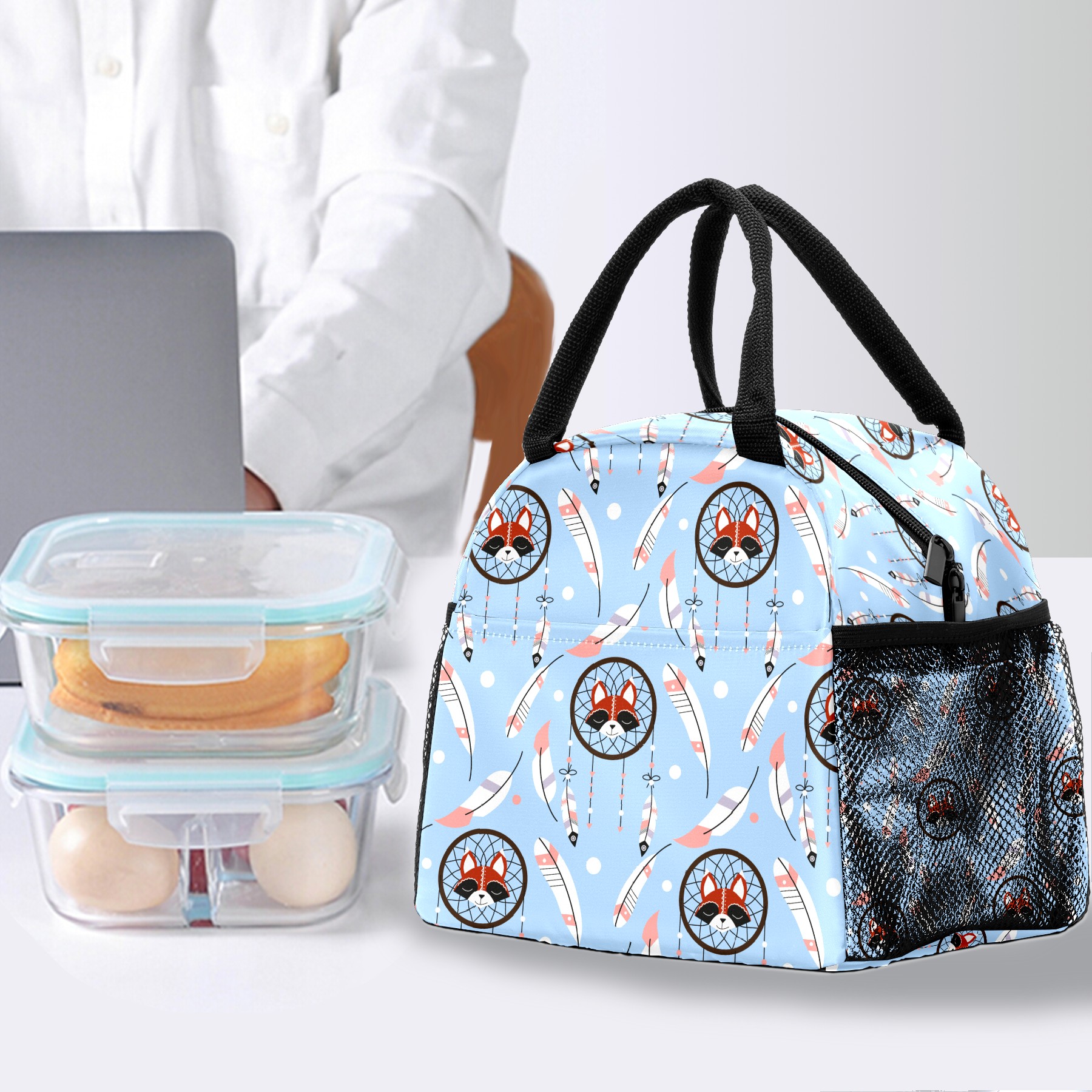 Lunch Bag for Women Men, Cute Fox With Dreamcather Feather Insulated Reusable Lunch Box Thermal Cooler Tote Bag for Work Picnic Hiking Travel Beach