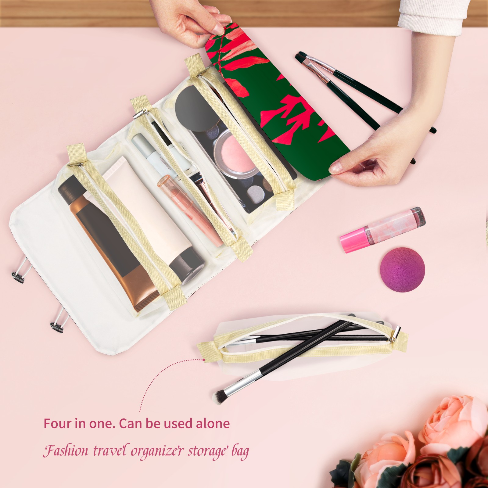 Makeup Bag Organizer Toiletry Bags for Traveling Travel Makeup Organizer Make Up Case Roll Up Toiletry Bag Makeup Bag Red Snowflake Christmas Travel Cosmetic Bag