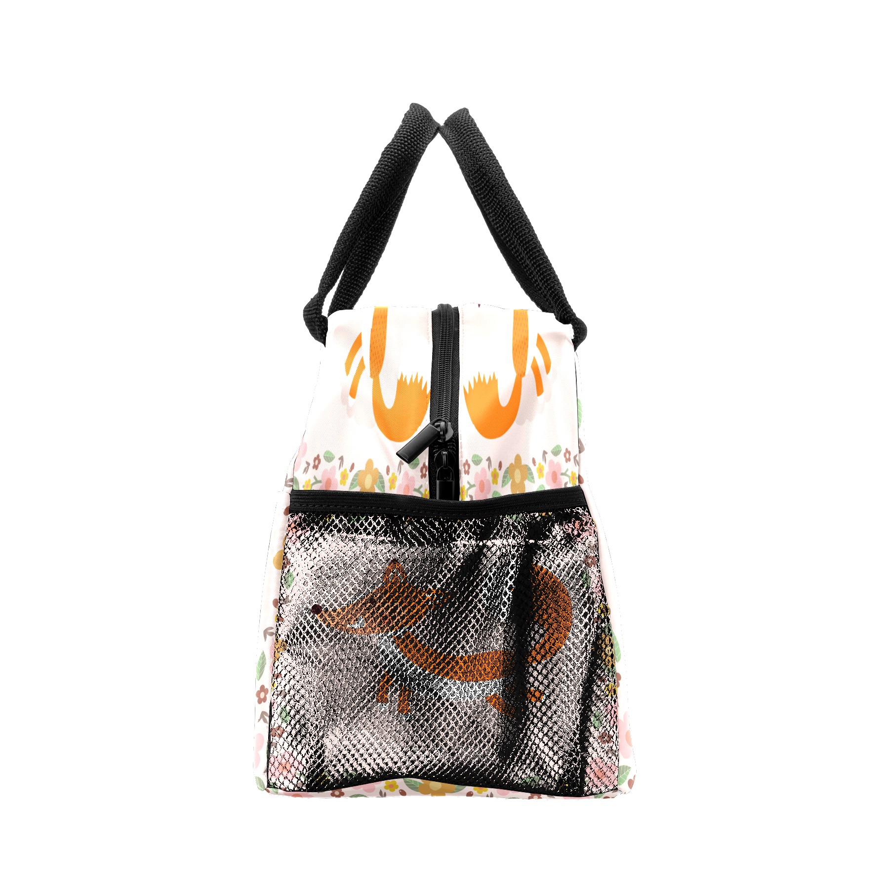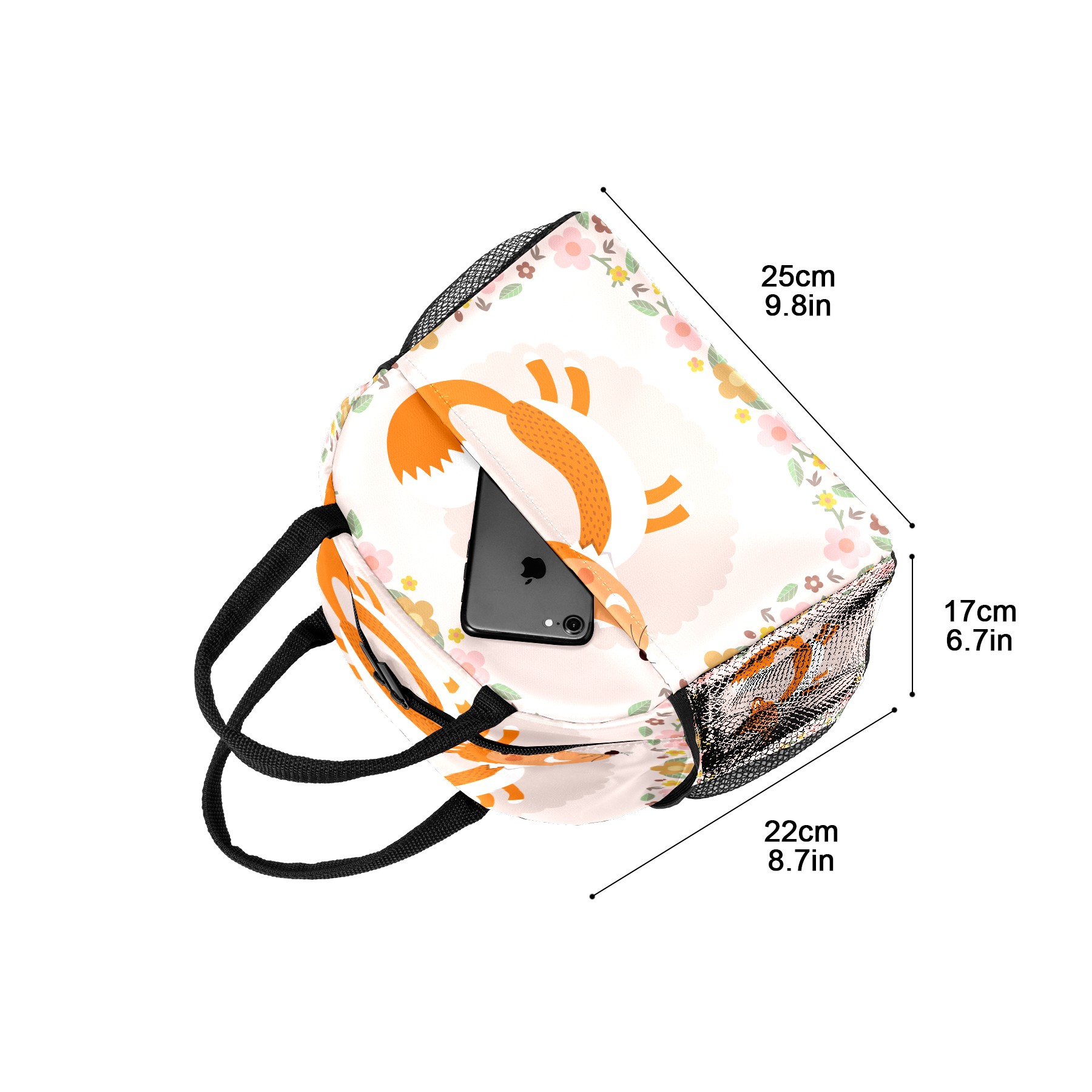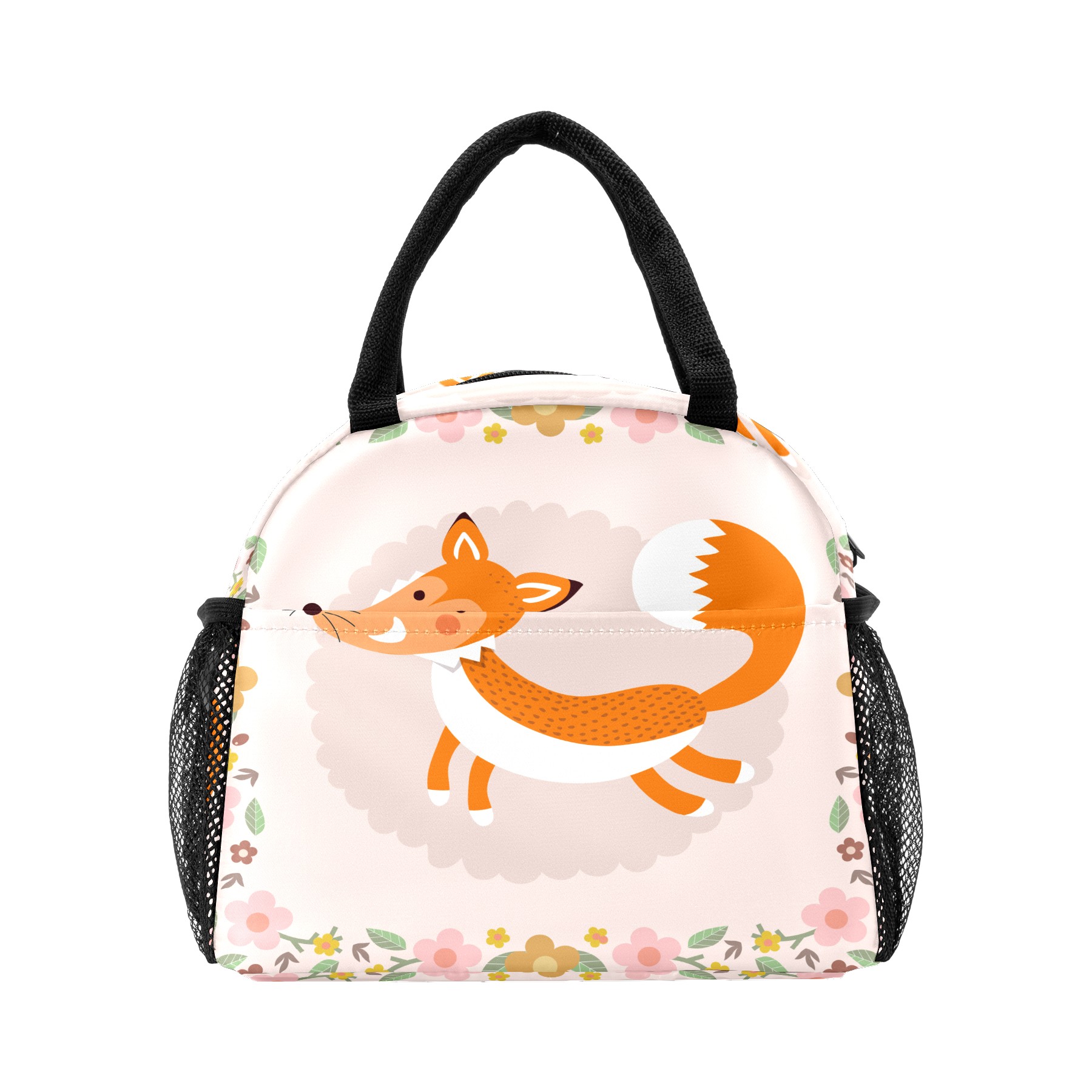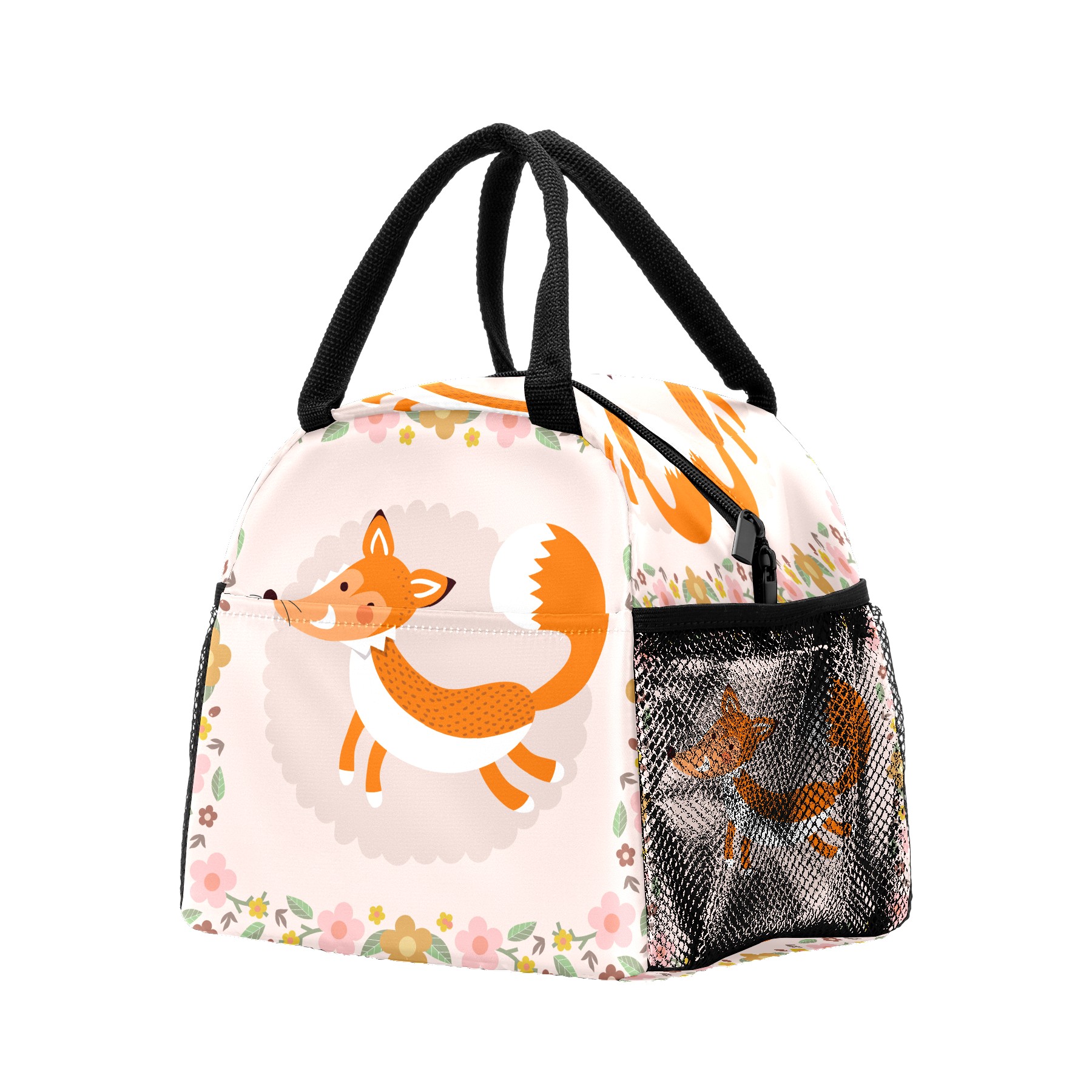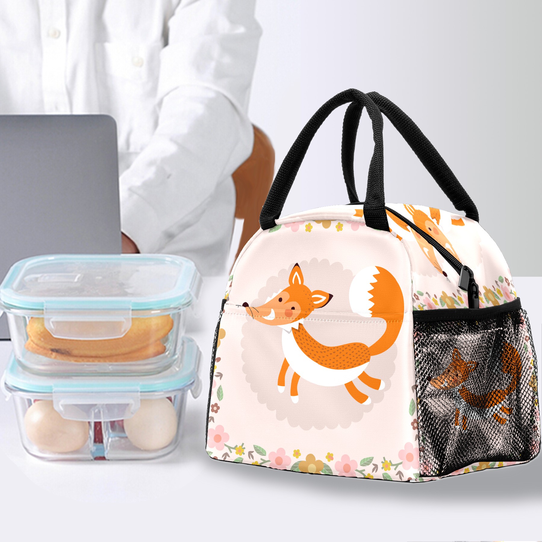 Lunch Bag for Women Men, Cute Fox With Floral Insulated Reusable Lunch Box Thermal Cooler Tote Bag for Work Picnic Hiking Travel Beach