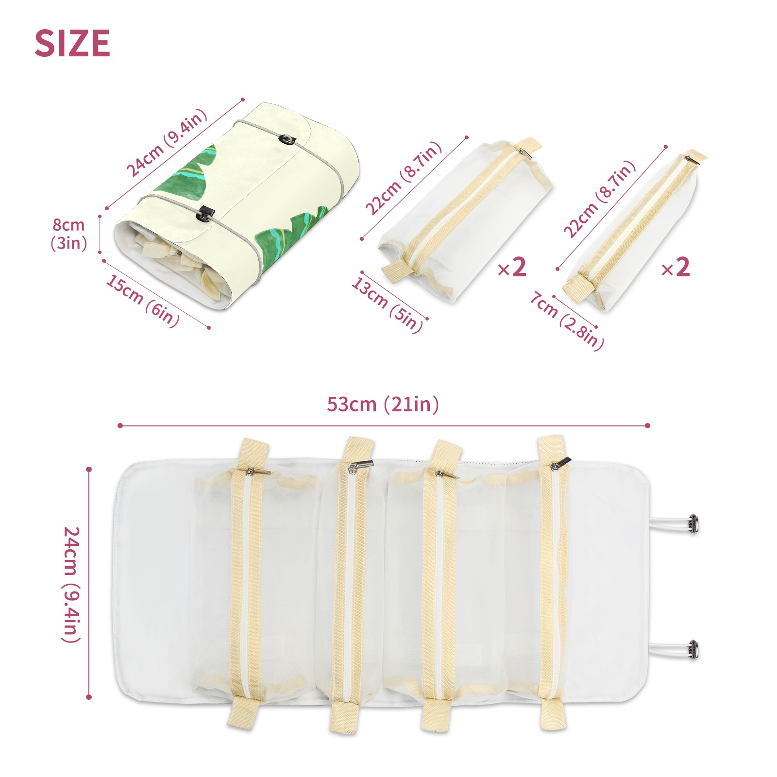 • <p> This is a nice and compact travel/ organizer bag. All the pouches are removable. This makes it very easy to use or pull out what you need in the moment, and not get stuck rummaging through a bag and not being able to find your items. It folds up nicely, and has 2 bungee straps that you can sinch tight to hold. It works great for traveling. </p> <p> </p> <p><b> Notes:&nbsp; </b></p> <p> 1.Due to the difference between different monitors,the picture may not reflect the actual color of the item. We guarantee the style is the same as shown in the pictures.&nbsp; </p> <p> 2.Due to the manual measurement and different measurement methods, please allow 1-3cm deviation.Thanks! </p>
