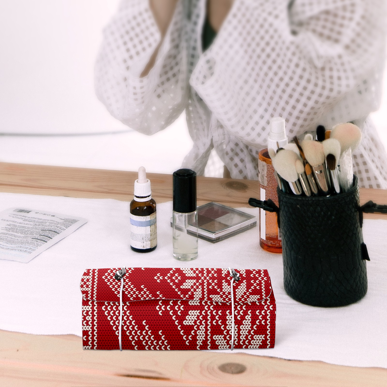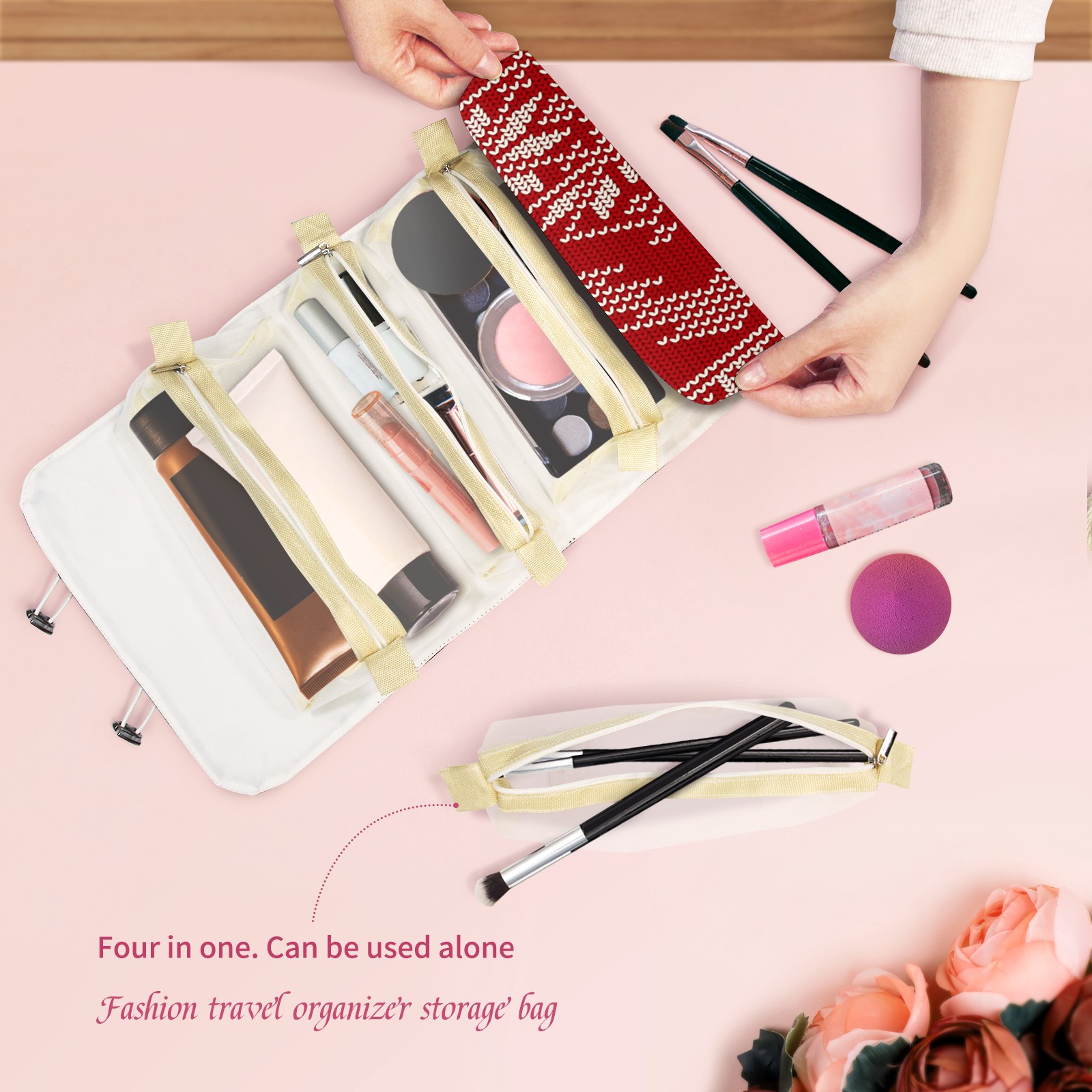 Makeup Bag Organizer Toiletry Bags for Traveling Travel Makeup Organizer Make Up Case Roll Up Toiletry Bag Makeup Bag Red Knitting Christmas Travel Cosmetic Bag