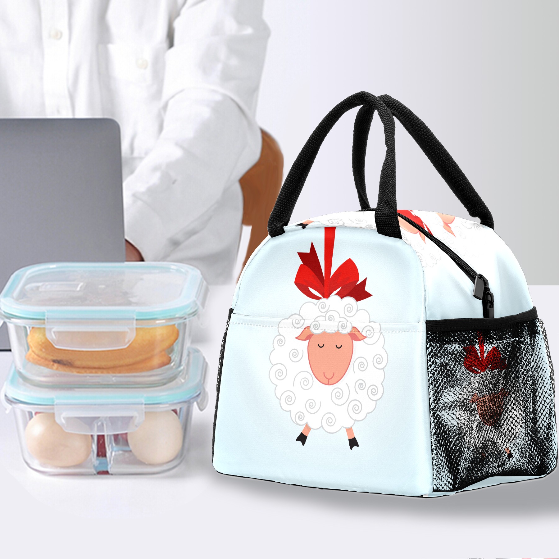 Lunch Bag for Women Men, Cute Animal Sheep Insulated Reusable Lunch Box Thermal Cooler Tote Bag for Work Picnic Hiking Travel Beach