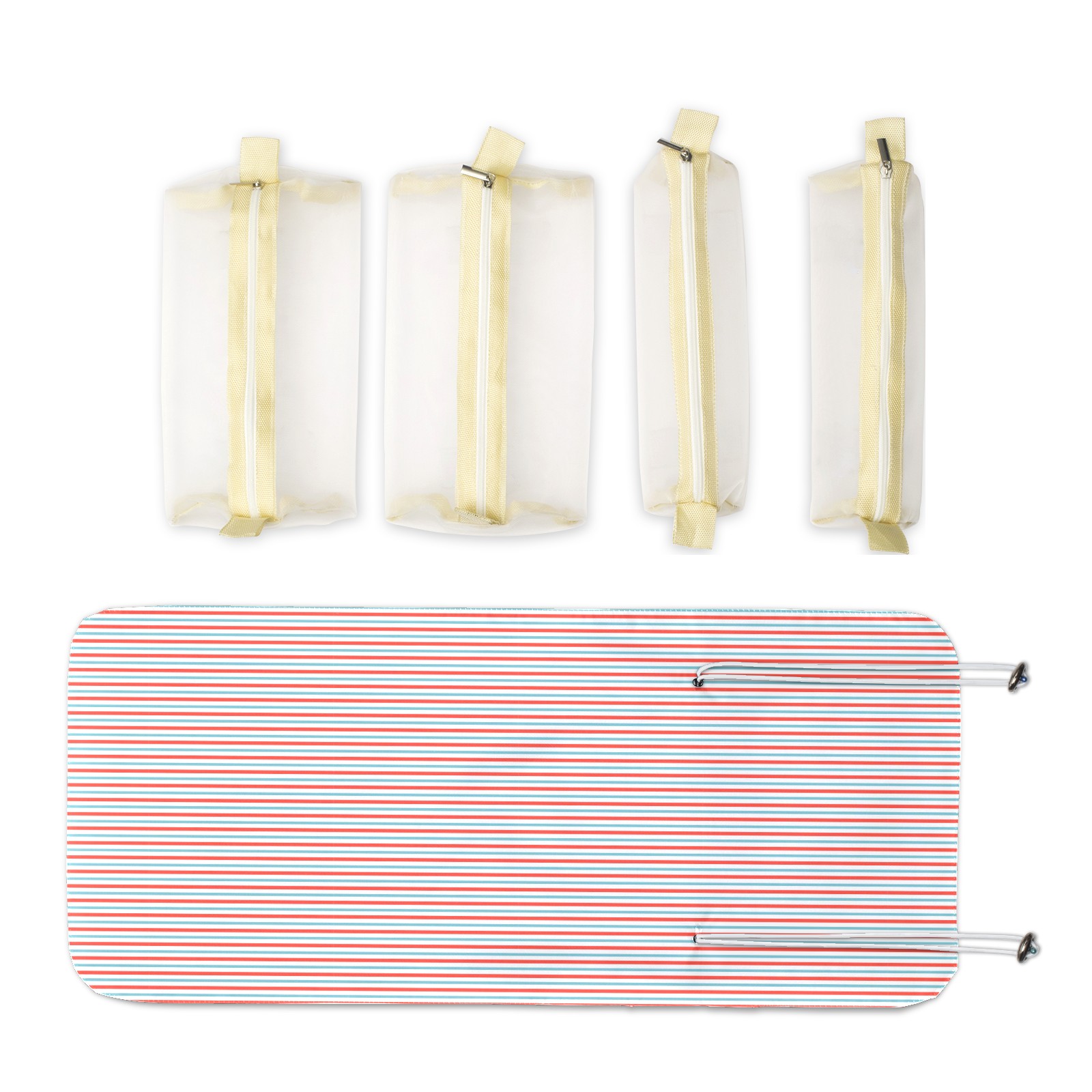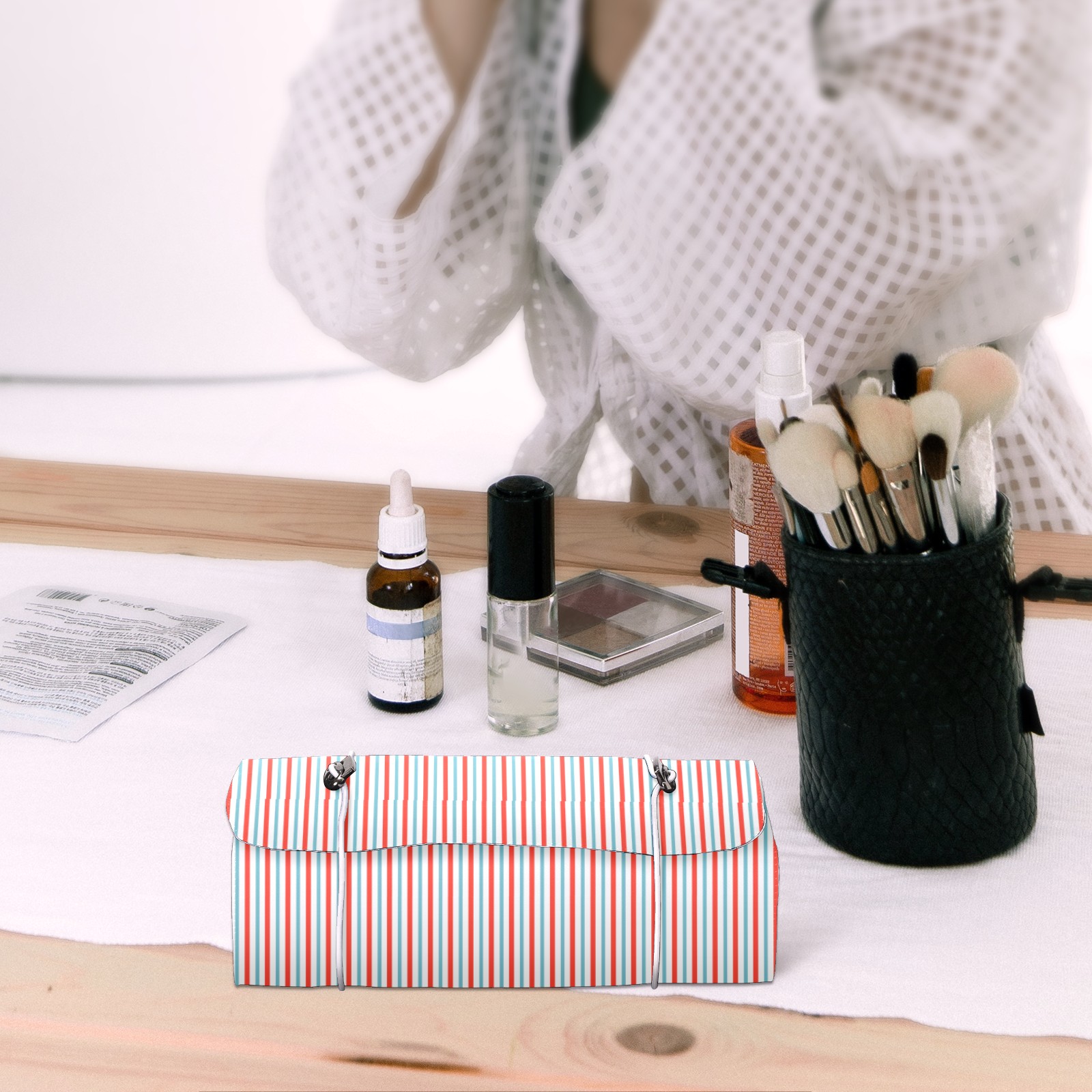 Makeup Bag Organizer Toiletry Bags for Traveling Travel Makeup Organizer Make Up Case Roll Up Toiletry Bag Makeup Bag Red Gray Stripe-01 Travel Cosmetic Bag
