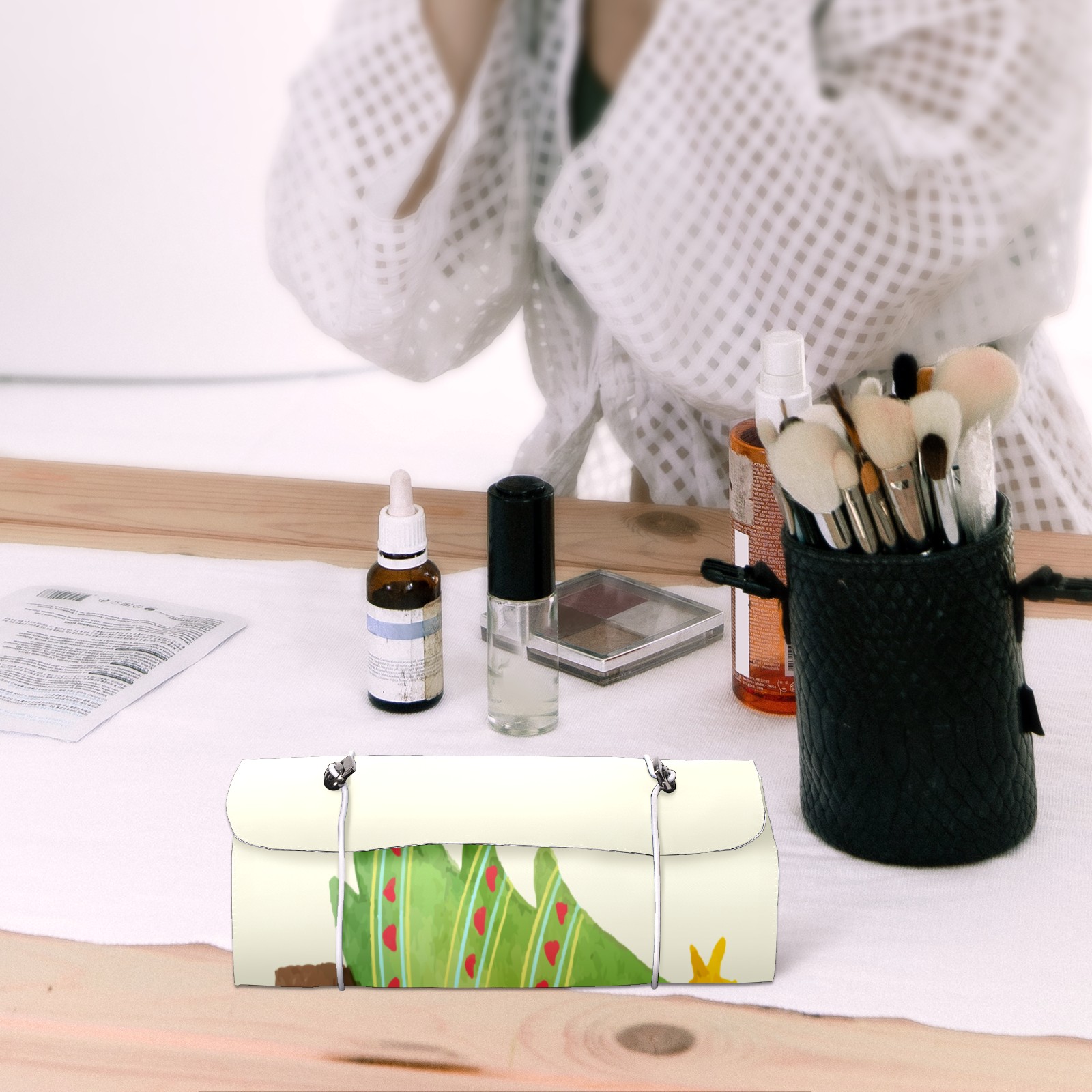 Makeup Bag Organizer Toiletry Bags for Traveling Travel Makeup Organizer Make Up Case Roll Up Toiletry Bag Makeup Bag Red Heart Christmas Tree-01 Travel Cosmetic Bag