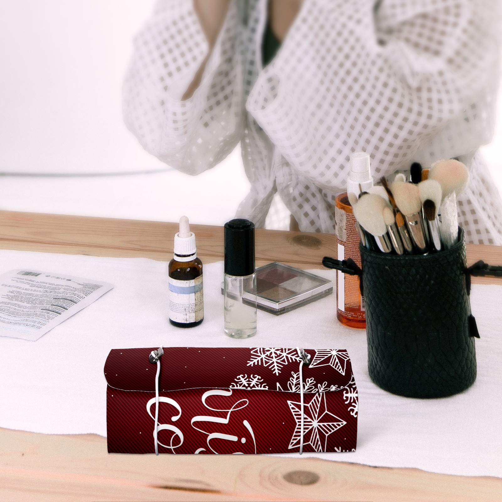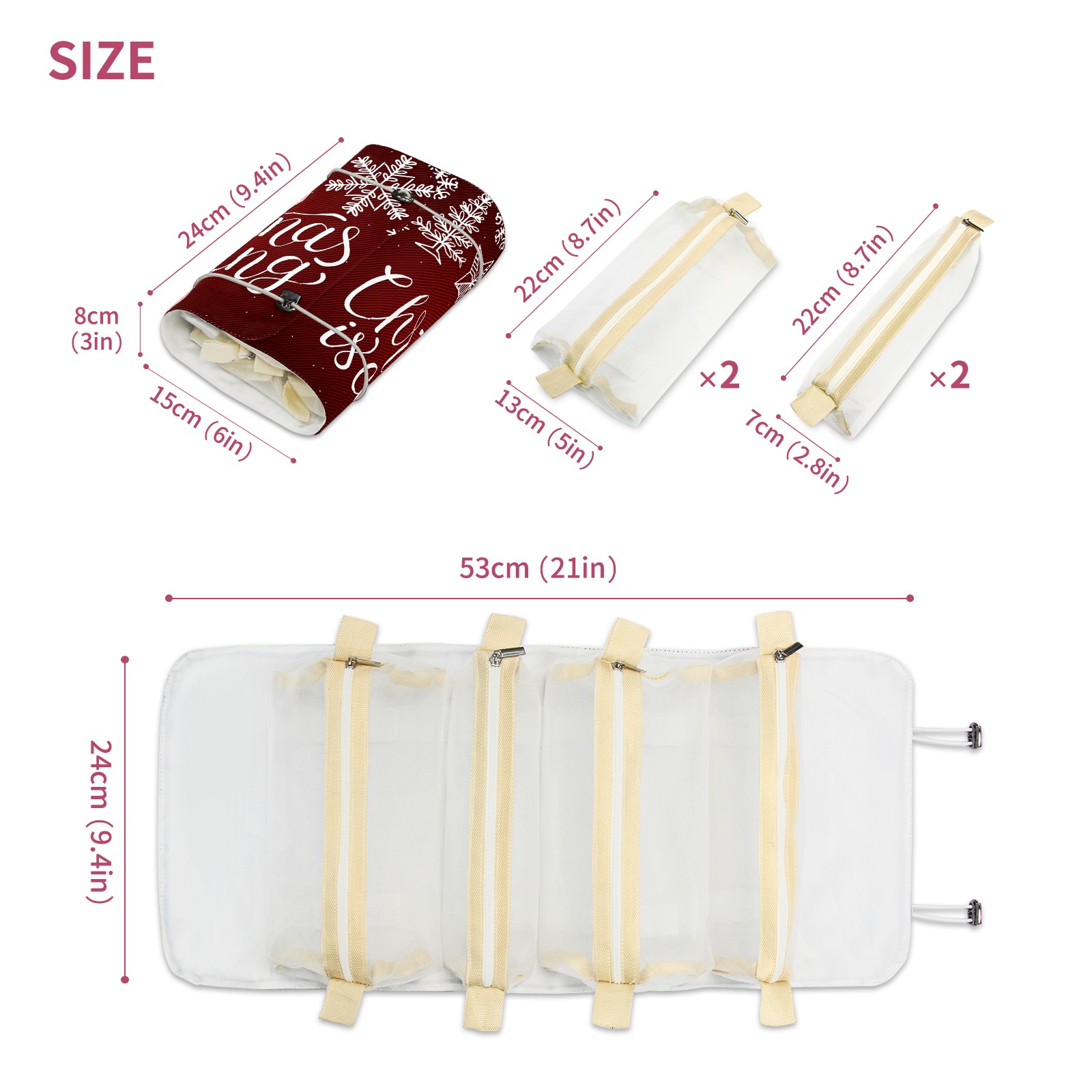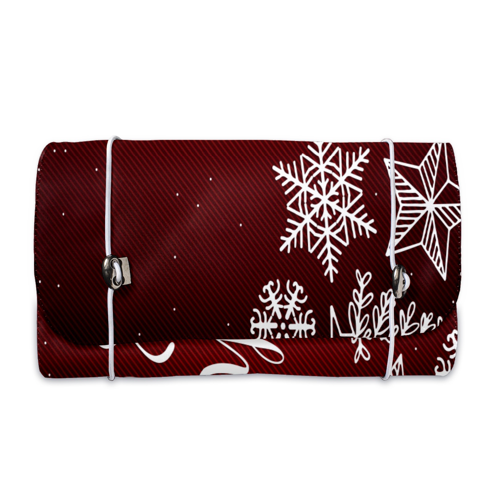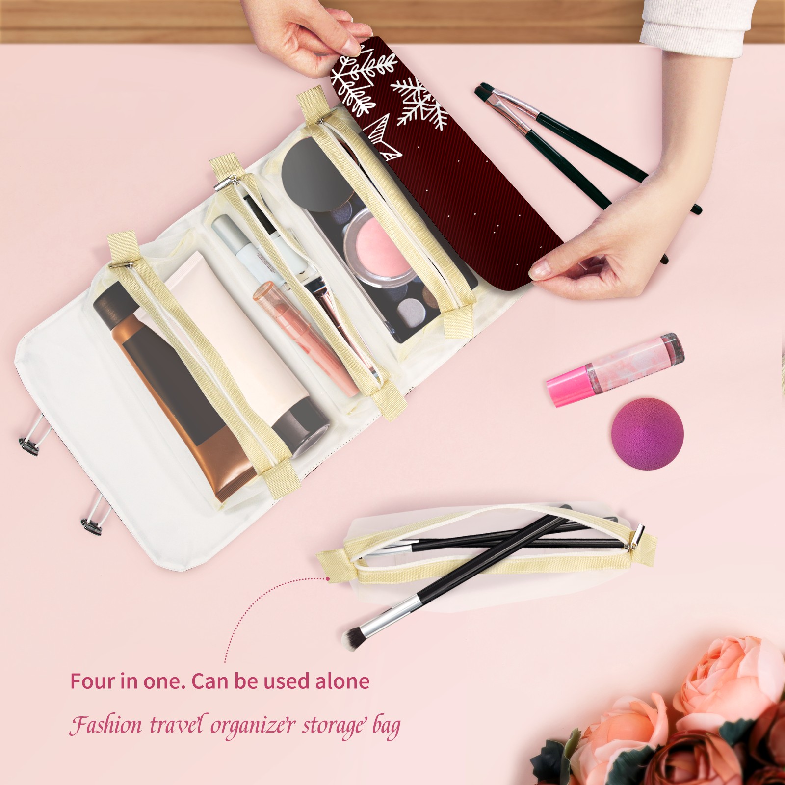 Makeup Bag Organizer Toiletry Bags for Traveling Travel Makeup Organizer Make Up Case Roll Up Toiletry Bag Makeup Bag Red Christmas With White Snowflake-01 Travel Cosmetic Bag