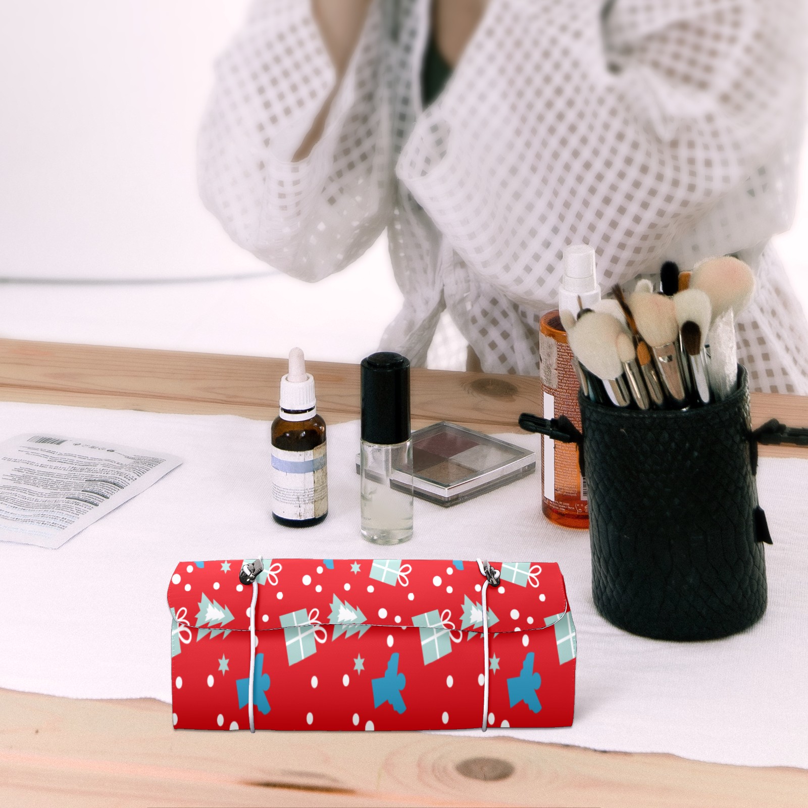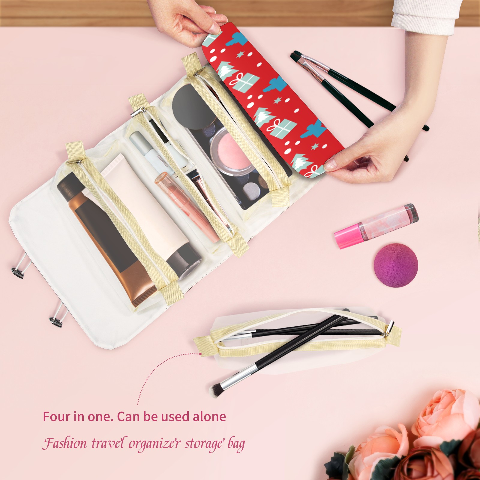 Makeup Bag Organizer Toiletry Bags for Traveling Travel Makeup Organizer Make Up Case Roll Up Toiletry Bag Makeup Bag Red Gift Xmas Tree-01 Travel Cosmetic Bag