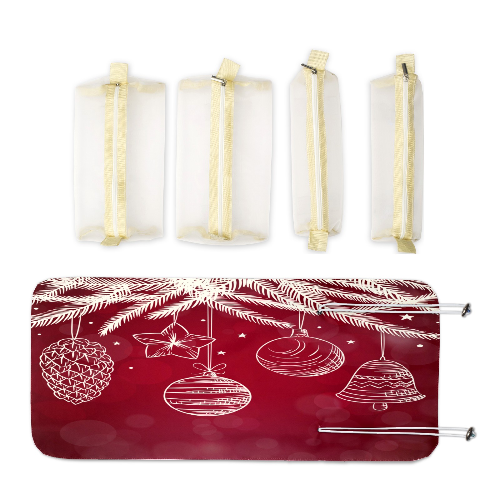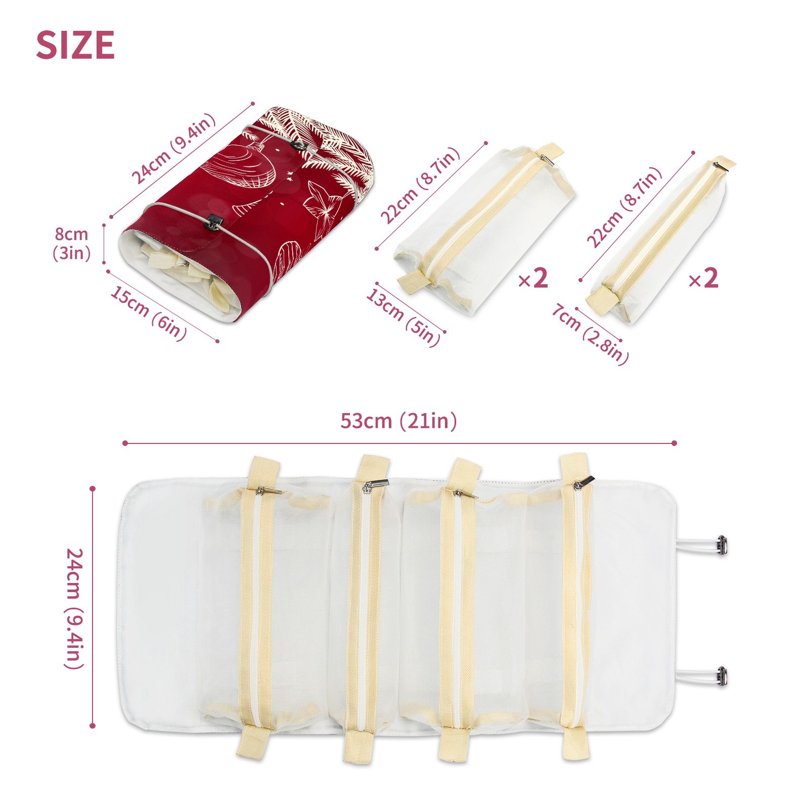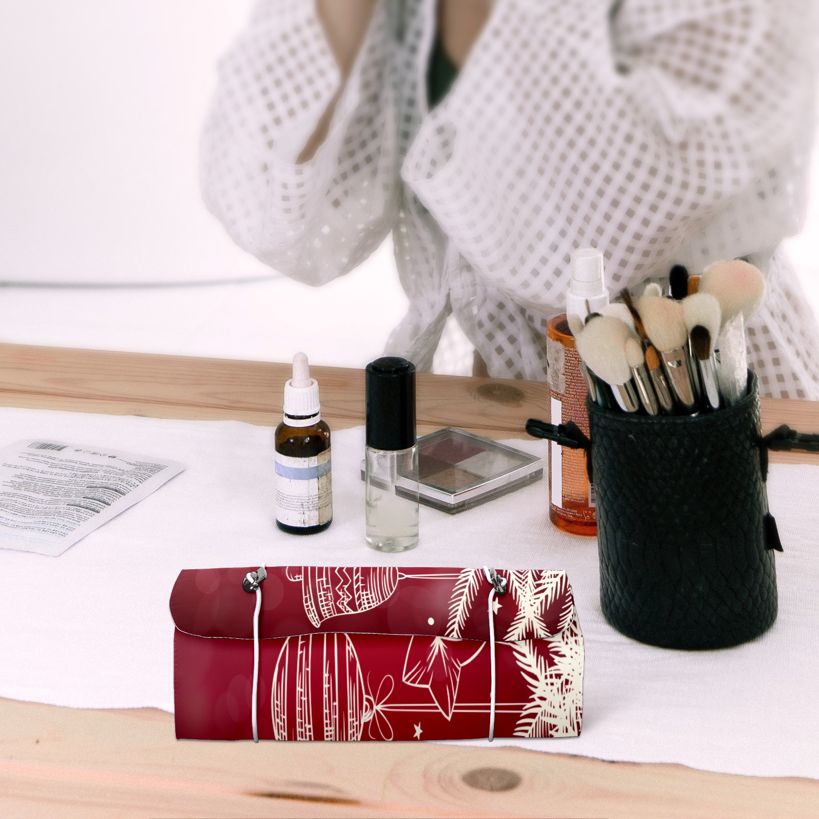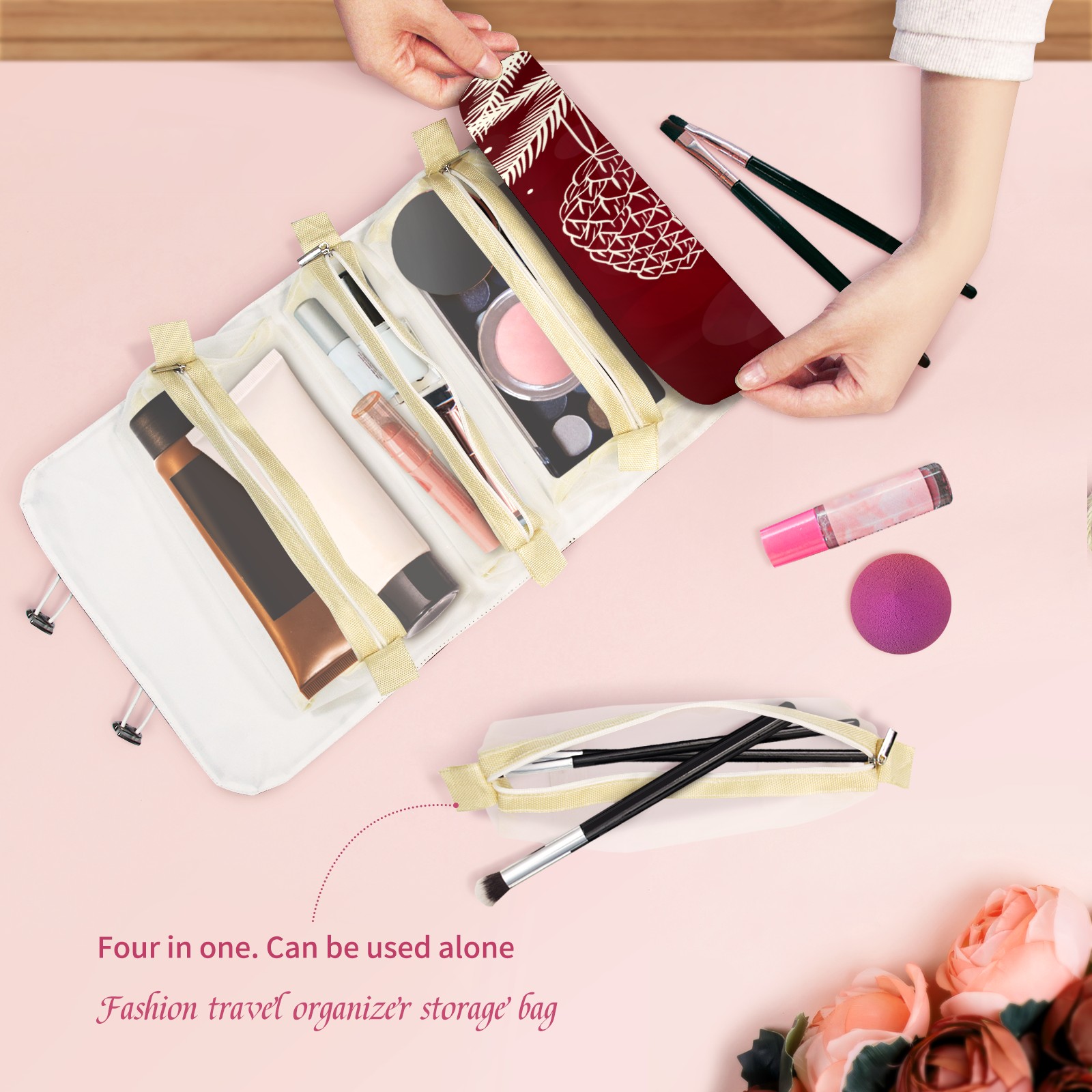 Makeup Bag Organizer Toiletry Bags for Traveling Travel Makeup Organizer Make Up Case Roll Up Toiletry Bag Makeup Bag Red Christmas White Decotation-01 Travel Cosmetic Bag