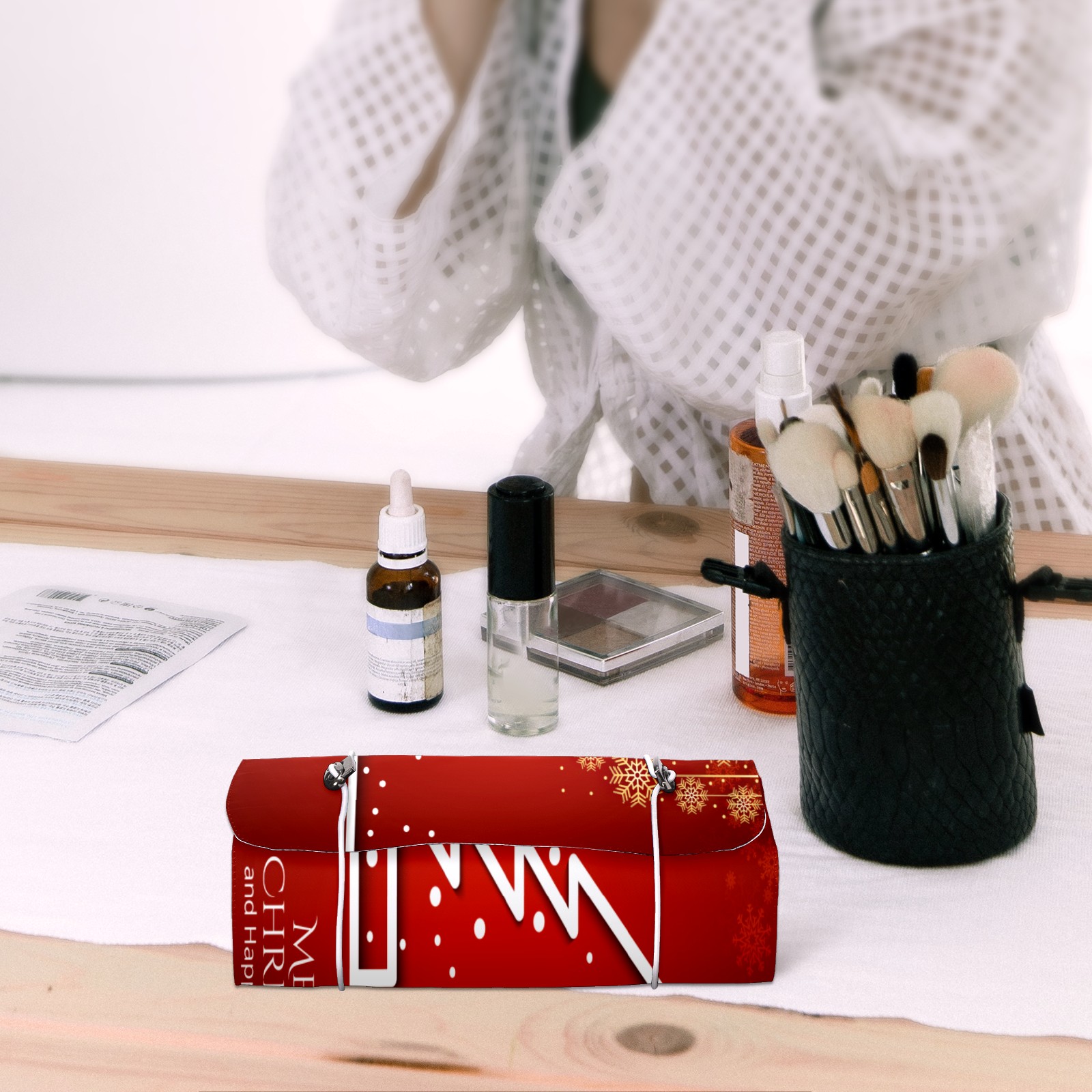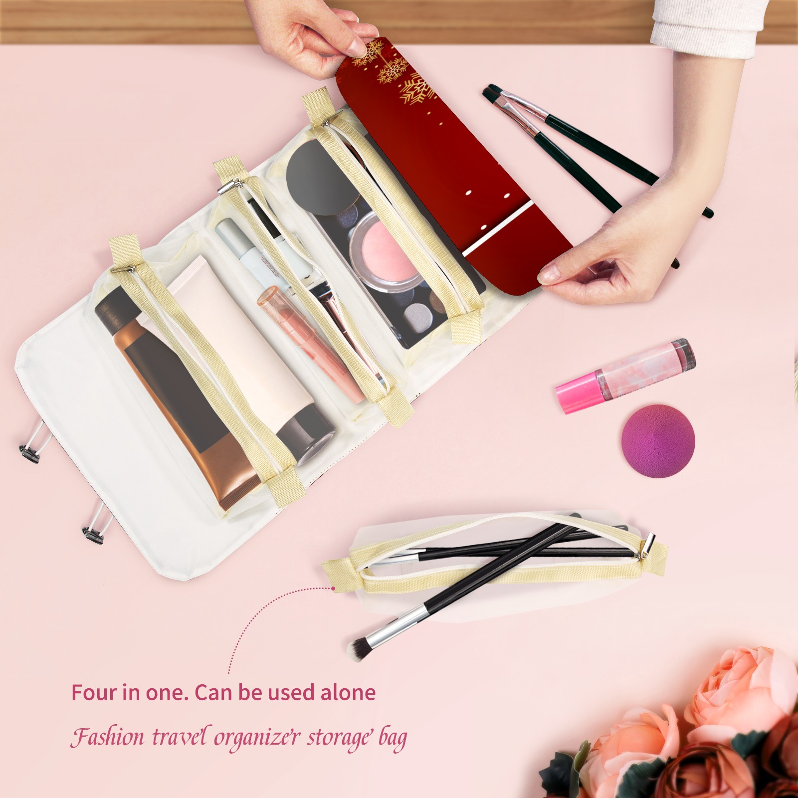 Makeup Bag Organizer Toiletry Bags for Traveling Travel Makeup Organizer Make Up Case Roll Up Toiletry Bag Makeup Bag Red Christmas Tree-01 Travel Cosmetic Bag