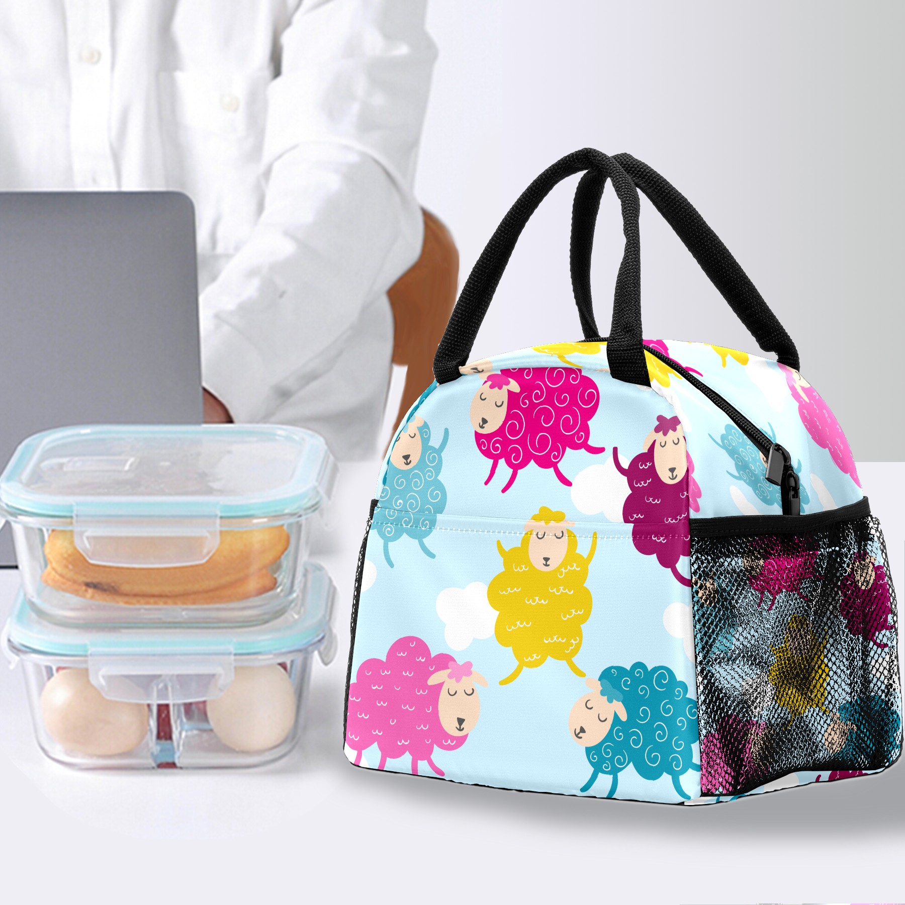 Lunch Bag for Women Men, Colorful Cute Animal Sheep Insulated Reusable Lunch Box Thermal Cooler Tote Bag for Work Picnic Hiking Travel Beach