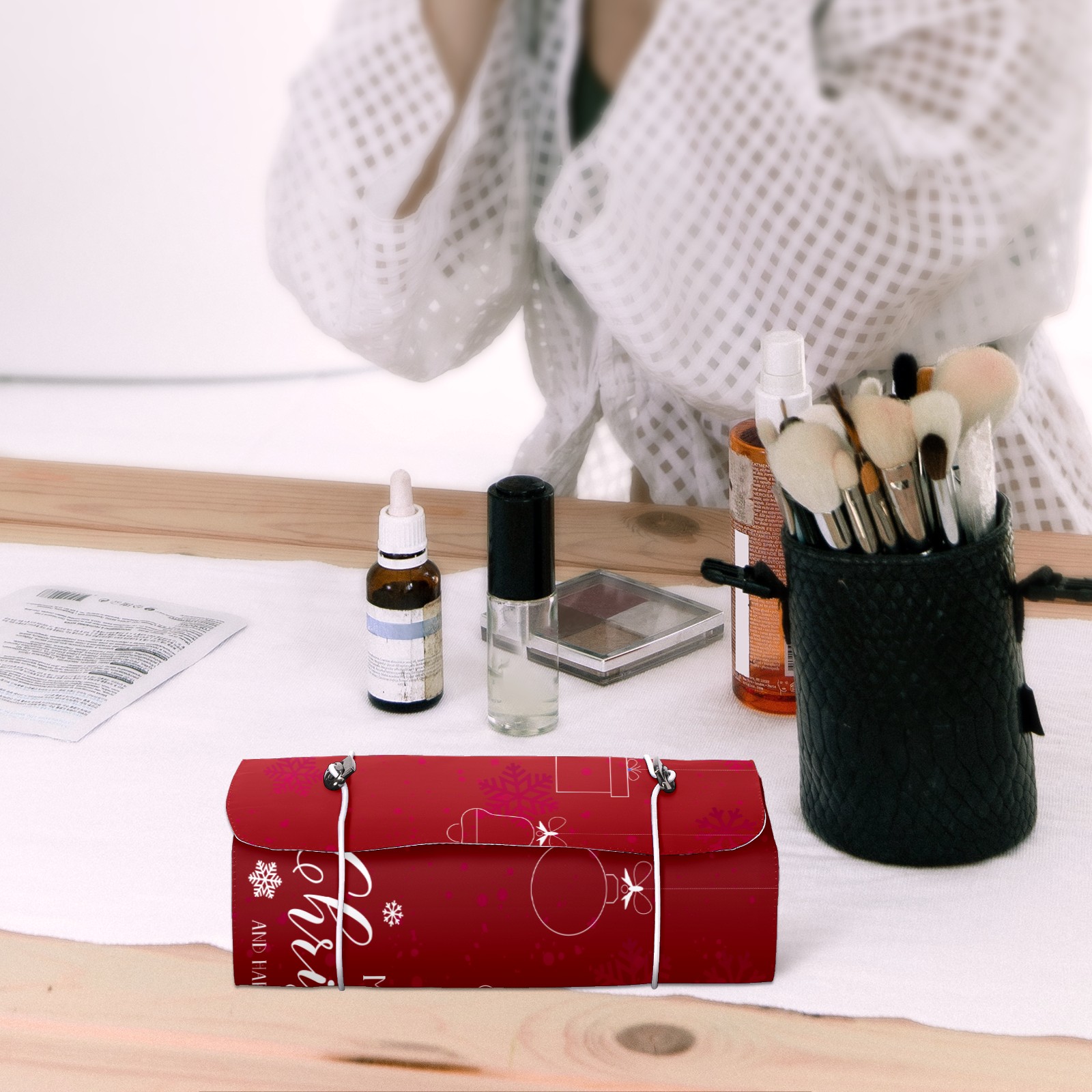 Makeup Bag Organizer Toiletry Bags for Traveling Travel Makeup Organizer Make Up Case Roll Up Toiletry Bag Makeup Bag Red Christmas Ornament Pattern_Mesa De Trabajo 1 Travel Cosmetic Bag