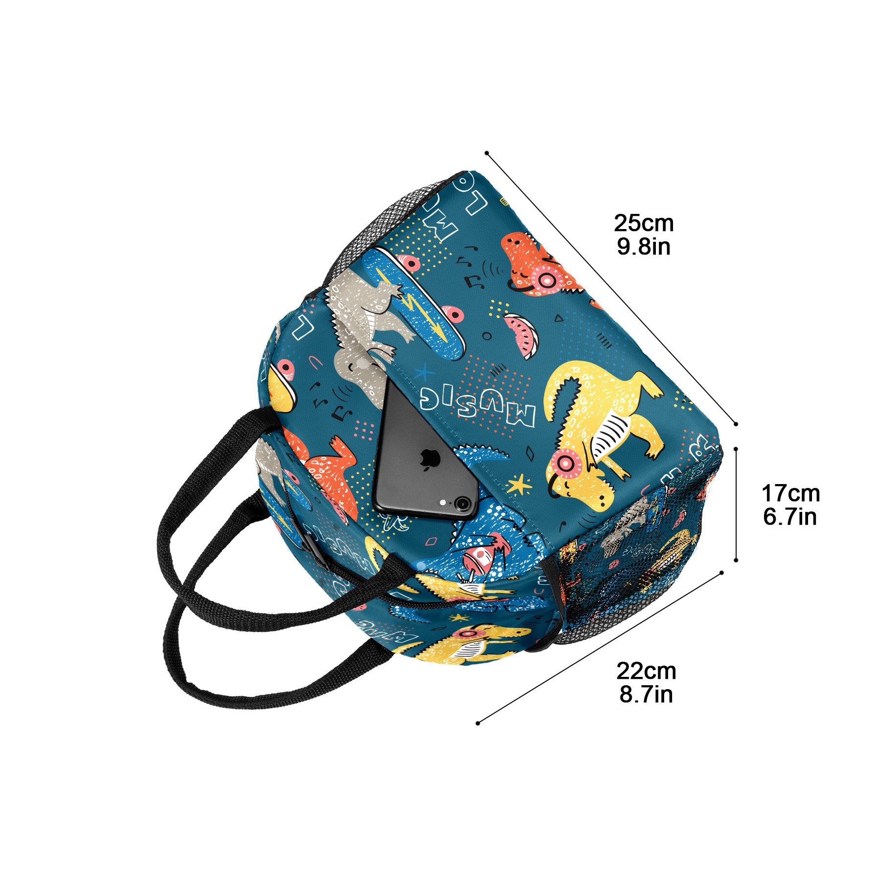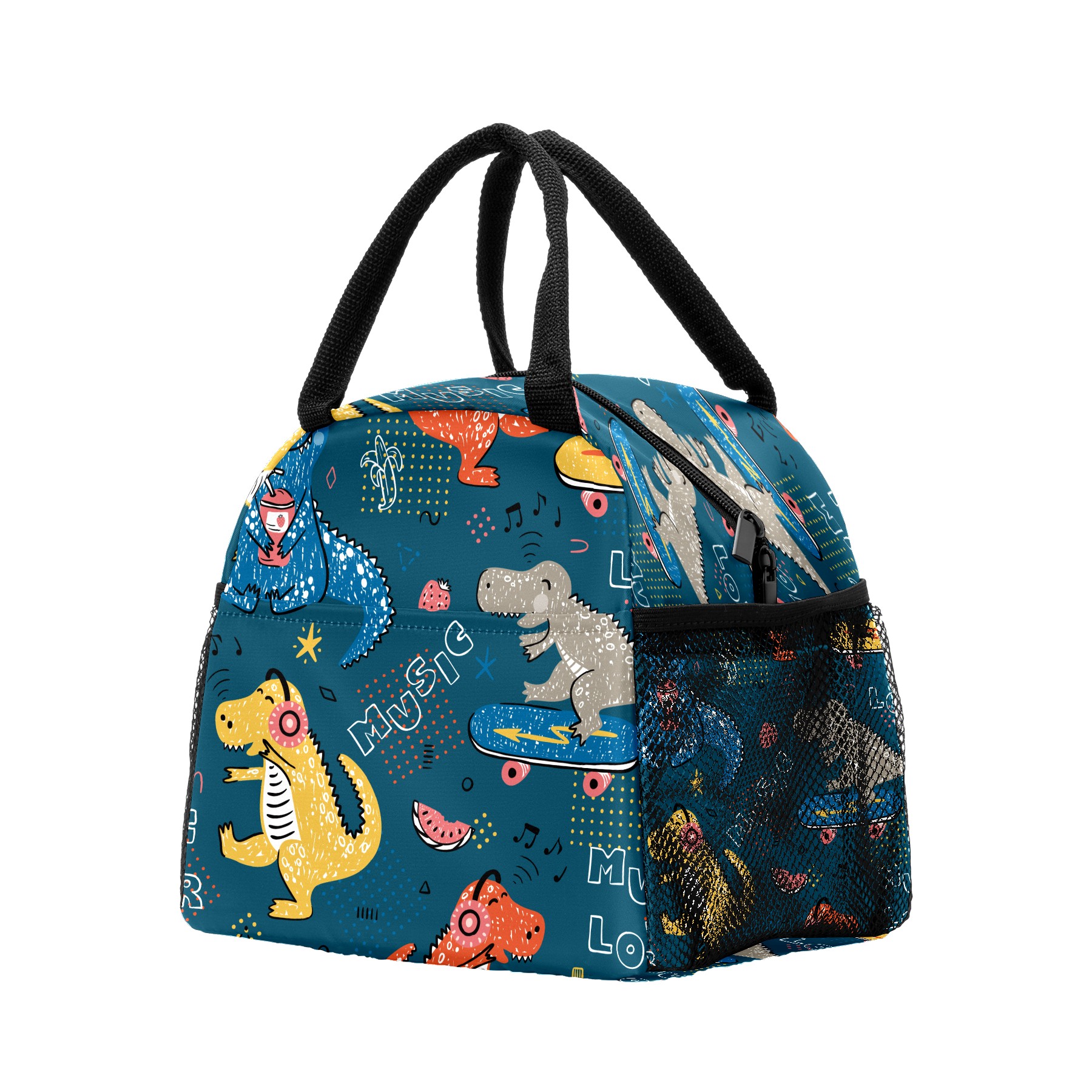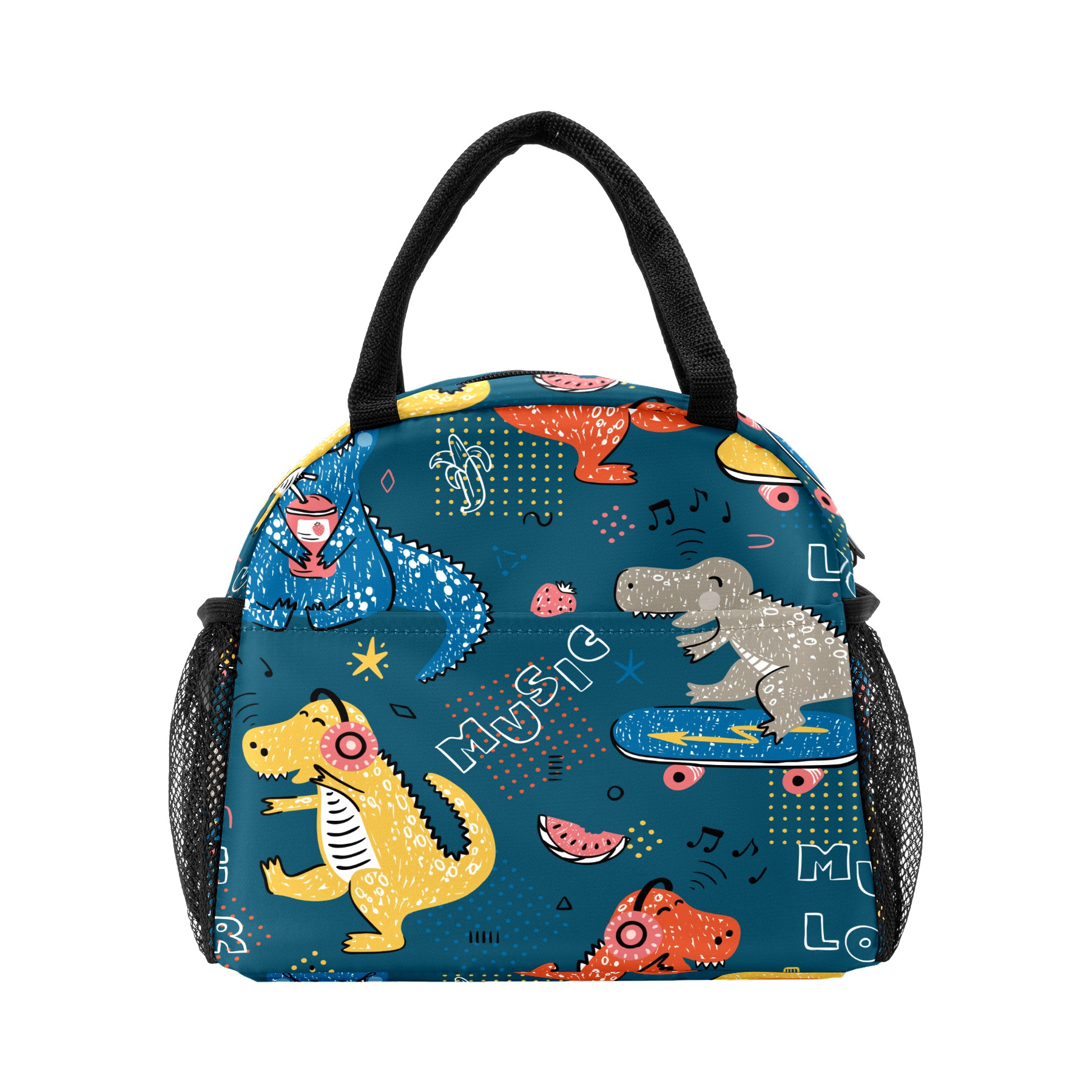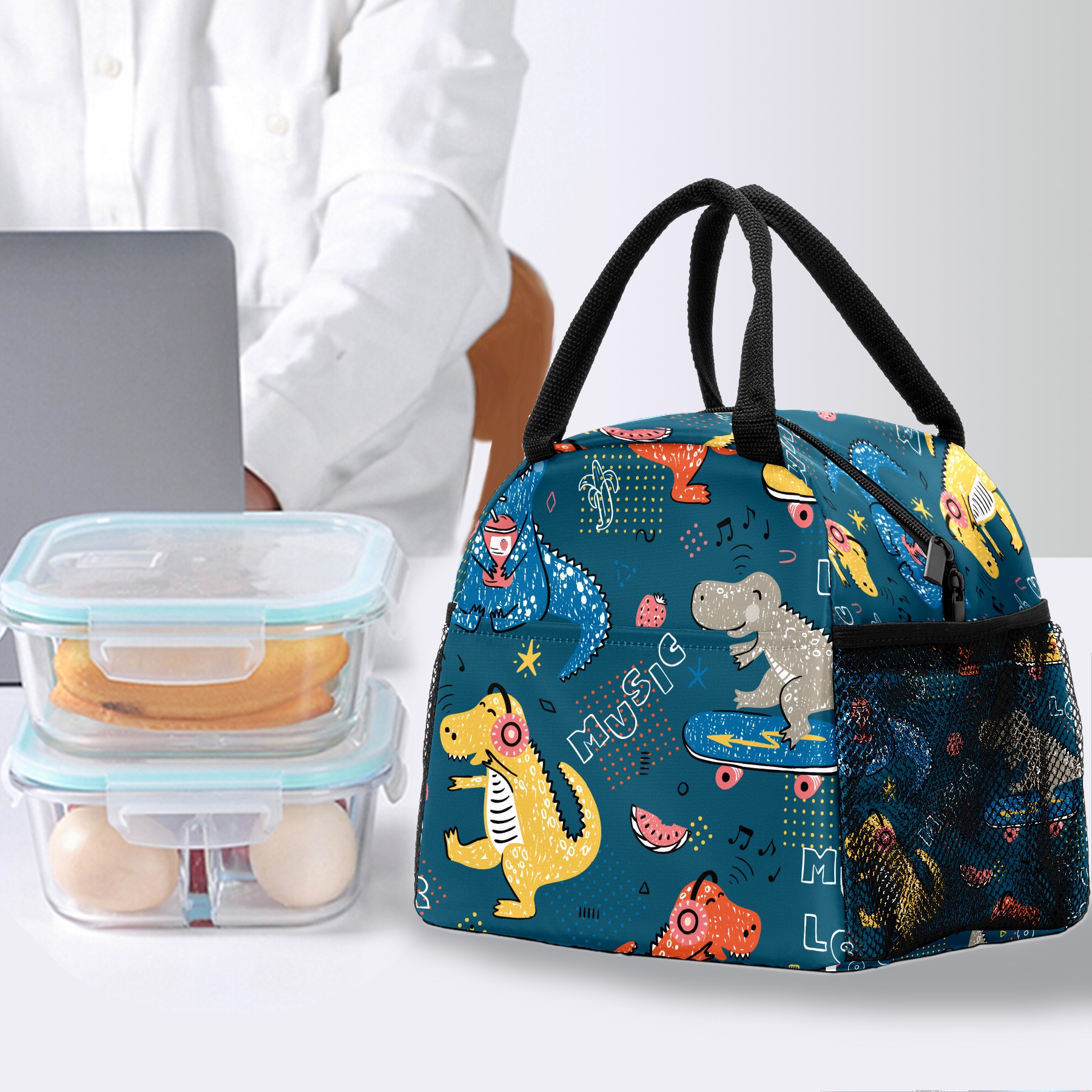 Lunch Bag for Women Men, Cartoon Dinosaur Love Music Notes Insulated Reusable Lunch Box Thermal Cooler Tote Bag for Work Picnic Hiking Travel Beach