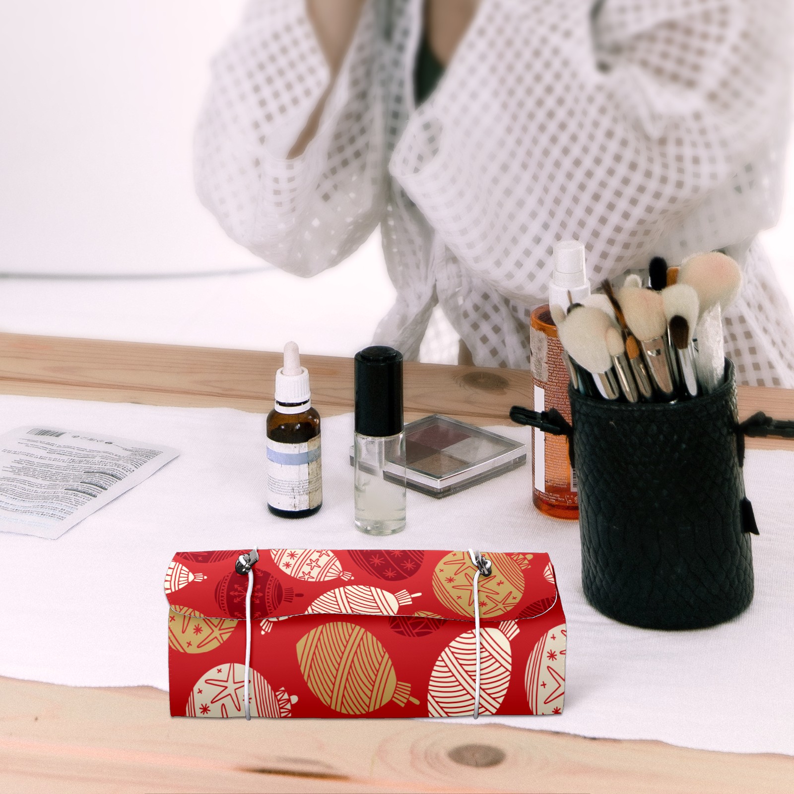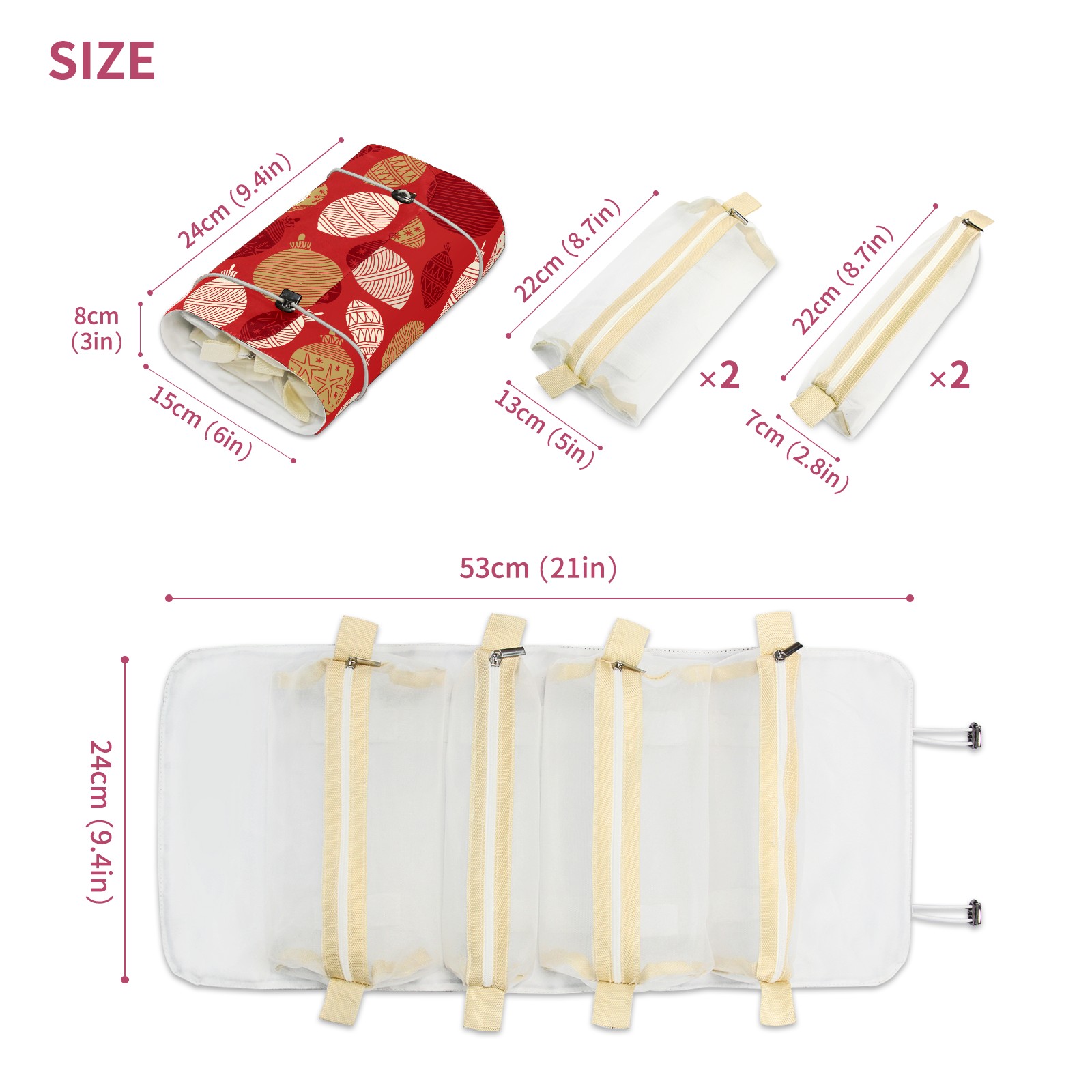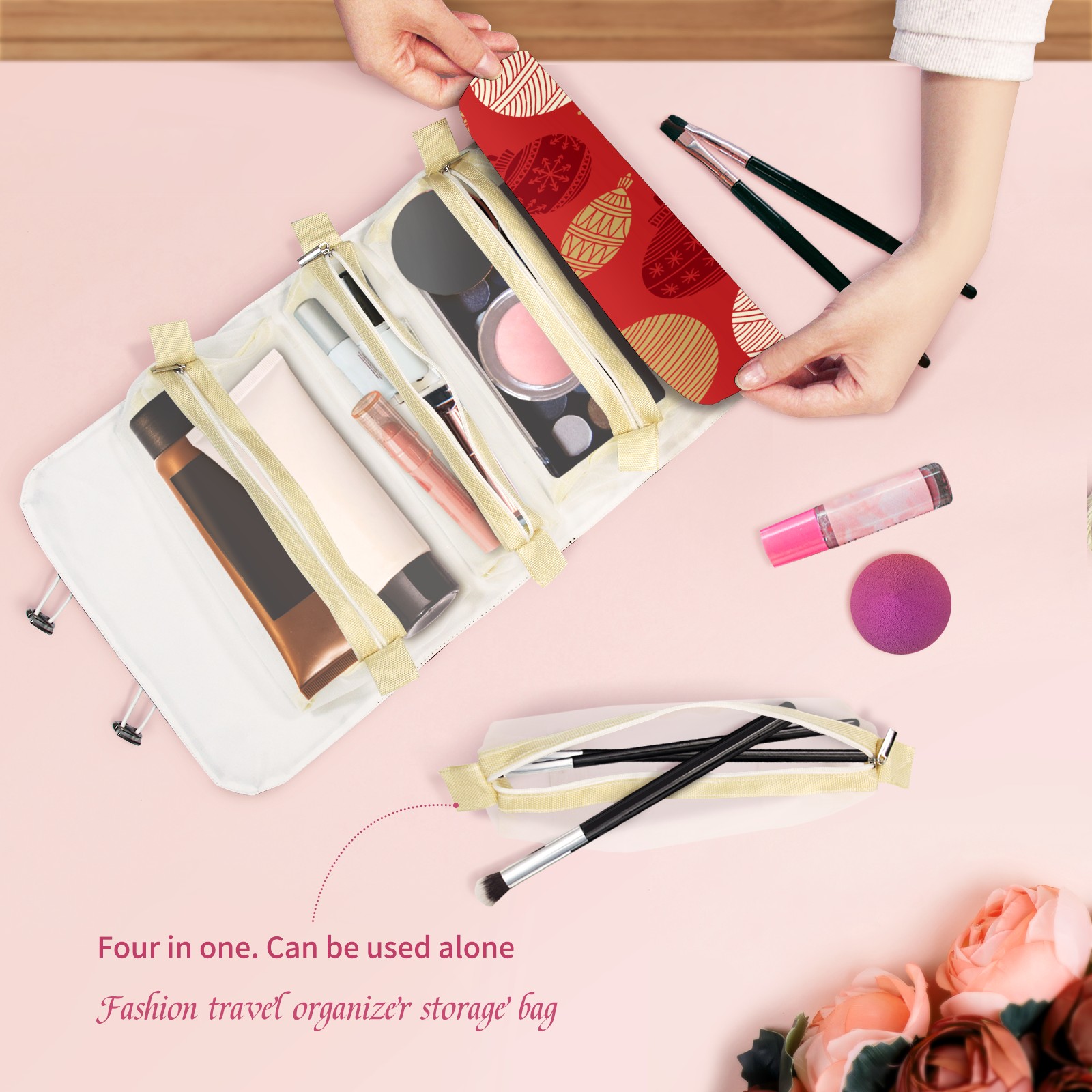 Makeup Bag Organizer Toiletry Bags for Traveling Travel Makeup Organizer Make Up Case Roll Up Toiletry Bag Makeup Bag Red Christmas Decoration Balls-01 Travel Cosmetic Bag